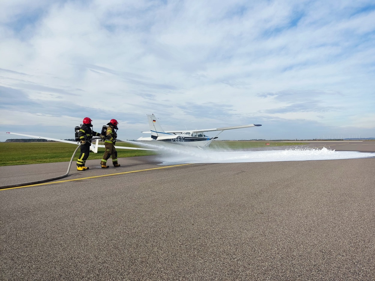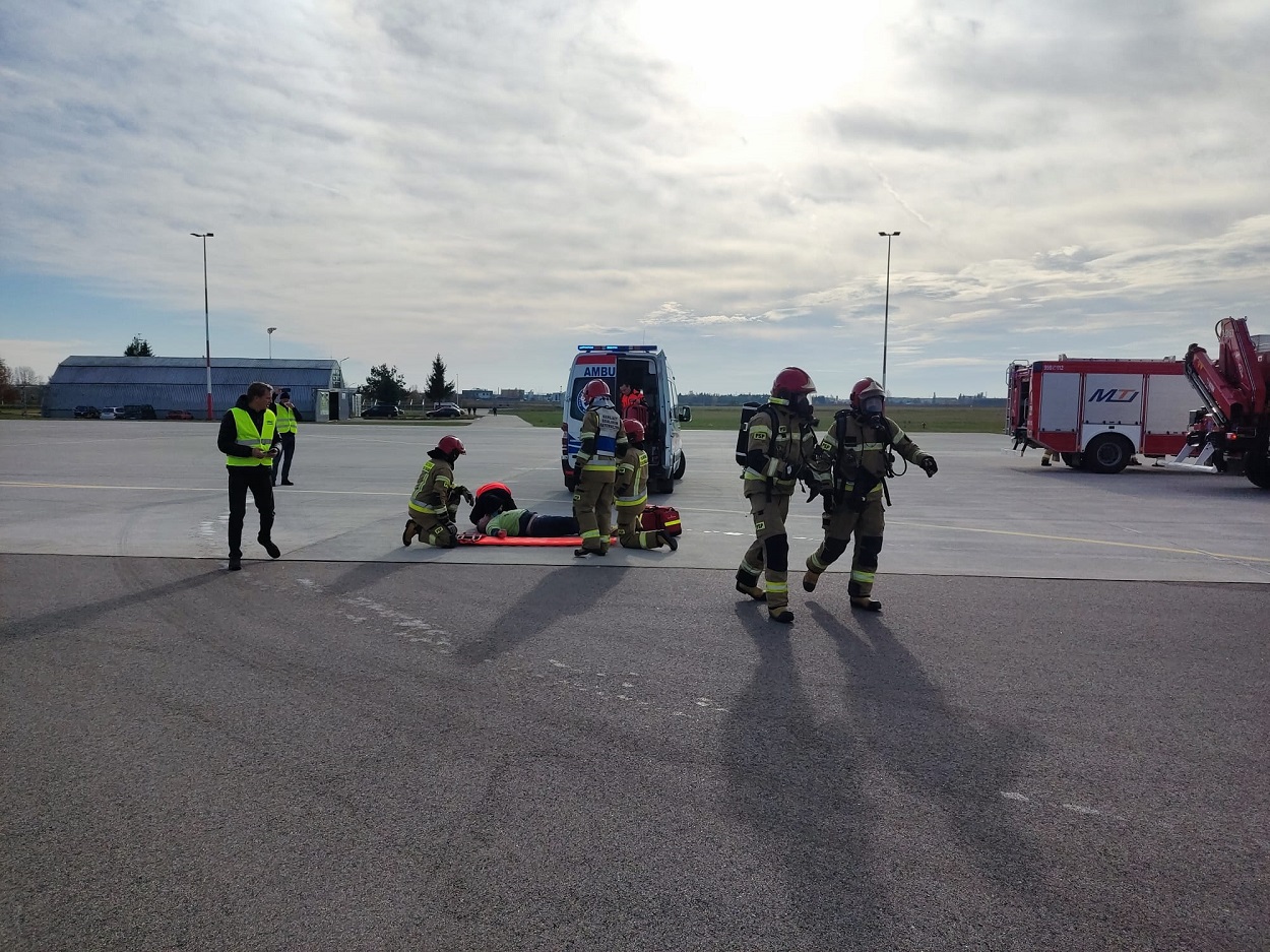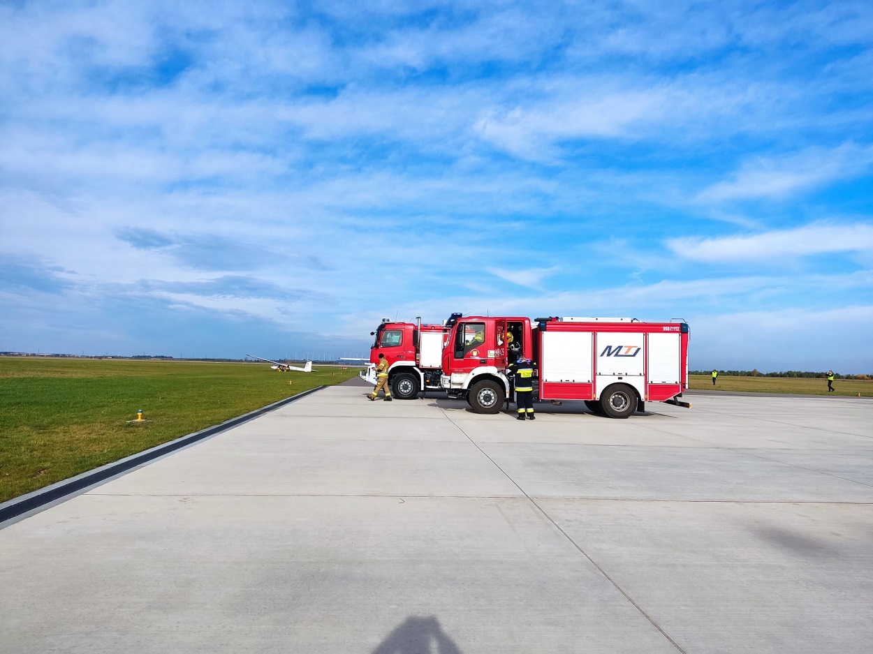 W dniu 03.11.2023 r. odbyły się ćwiczenia na suwalskim lotnisku służb ratowniczych oraz obsługi pasa startowego. Scenariusz działań zakładał awaryjne lądowanie szybowca, podczas którego traci on siłę nośną i nie jest w stanie wylądować, co skutkuje uderzeniem w samolot znajdujący się na pasie kołowania. Podczas wypadku obu statków powietrznych są poszkodowane trzy osoby uwięzione w środku oraz zagrożenie spowodowane pożarem. Strażacy uczestniczący w ćwiczeniach ewakuują osoby zagrożone, przekazując je Zespołowi Ratownictwa Medycznego z jednoczesnym przystąpieniem do likwidacji pożaru awionetki. Ćwiczenia miały na celu zapoznanie się służb ratowniczych z infrastrukturą lotniska, zagrożeniami i możliwością powstania zdarzenia przy jednoczesnej współpracy z pracownikami lotniska. W zdarzeniu ćwiczyli strażacy z Jednostki Ratowniczo – Gaśniczej nr 1, Jednostki Ratowniczo – Gaśniczej nr 2, Ochotnicza Straż Pożarna w Płocicznie, Zespół Ratownictwa Medycznego, Komenda Miejska Policji w Suwałkach.
