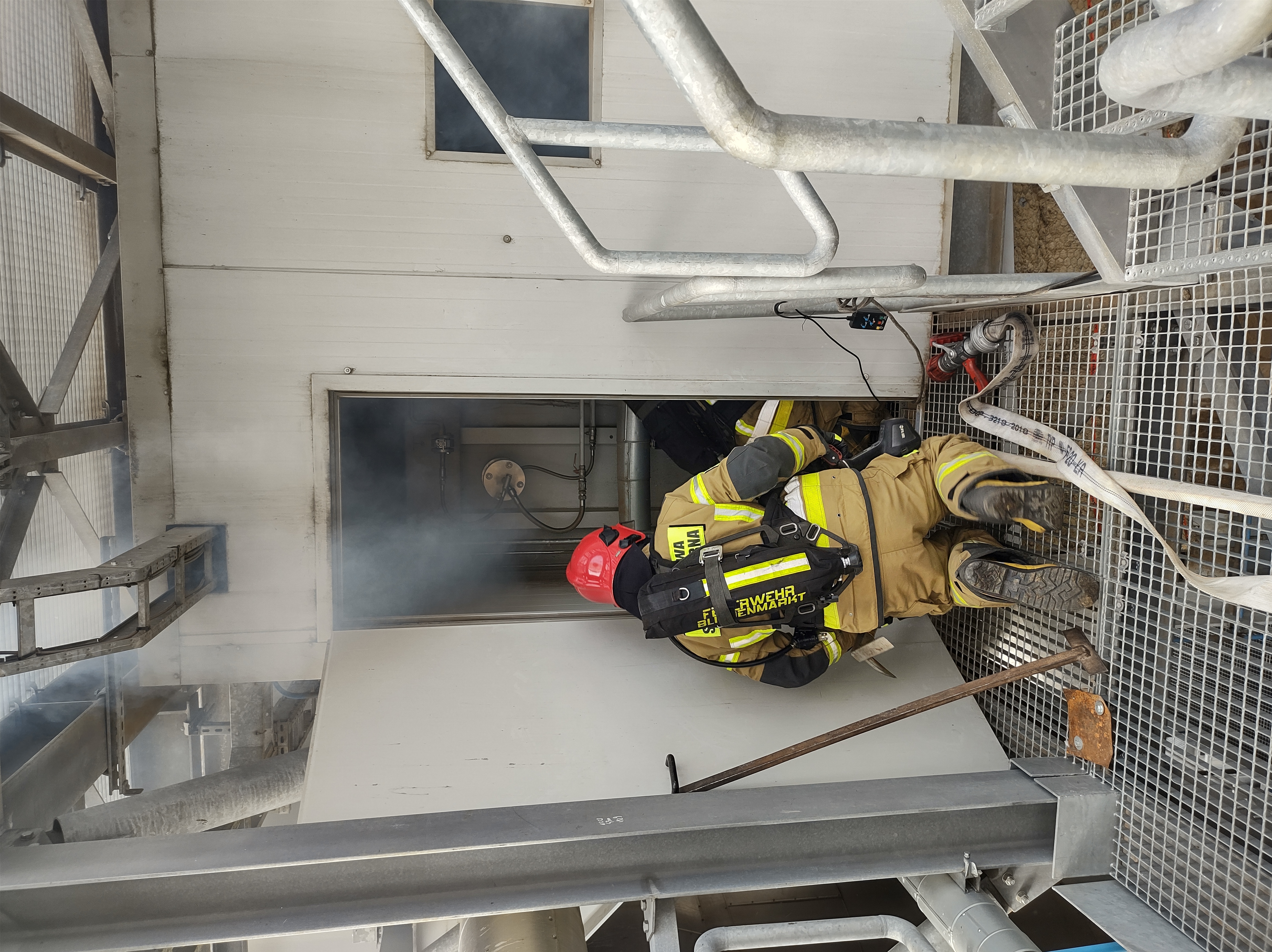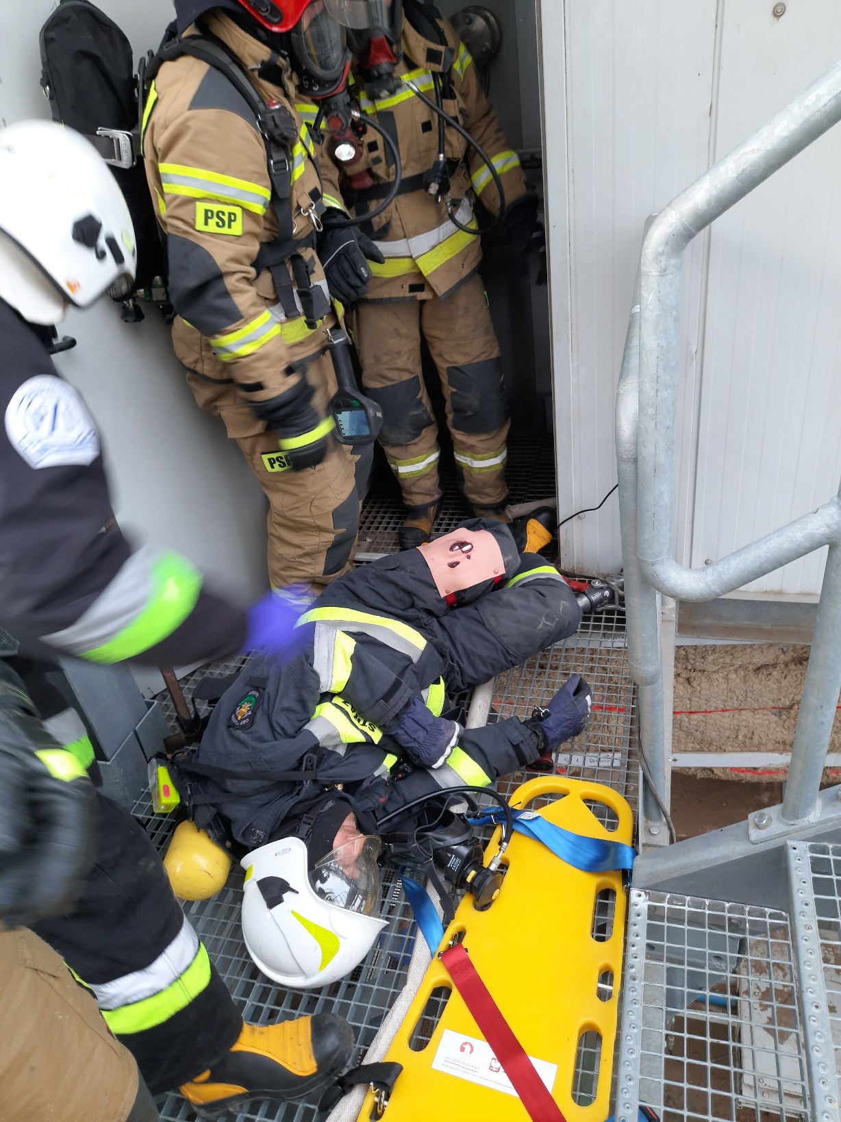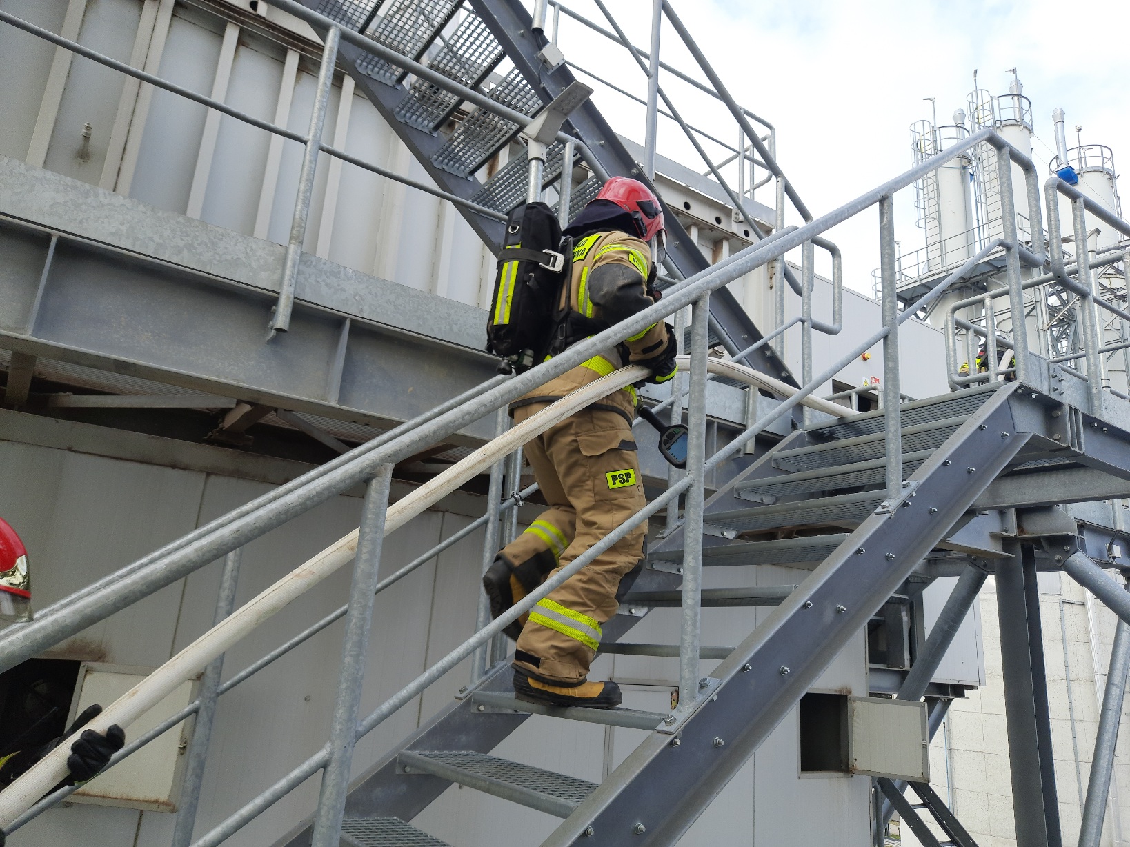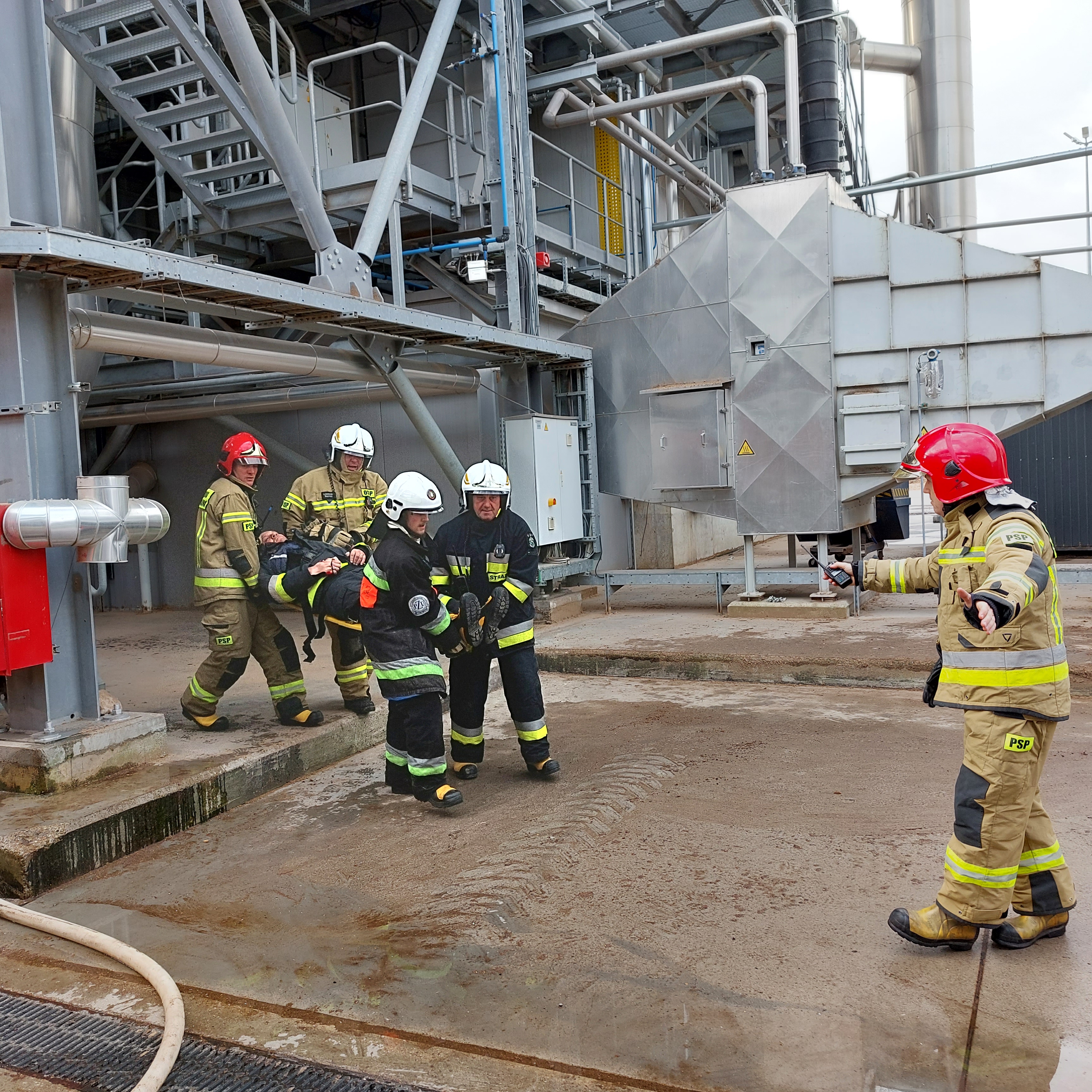 z ciągów technologicznych, a w trakcie prowadzenia działań gaśniczych przez druhów z OSP zlokalizowanej na terenie zakładu strażacy ulegli wypadkowi oraz wypadniecie osoby