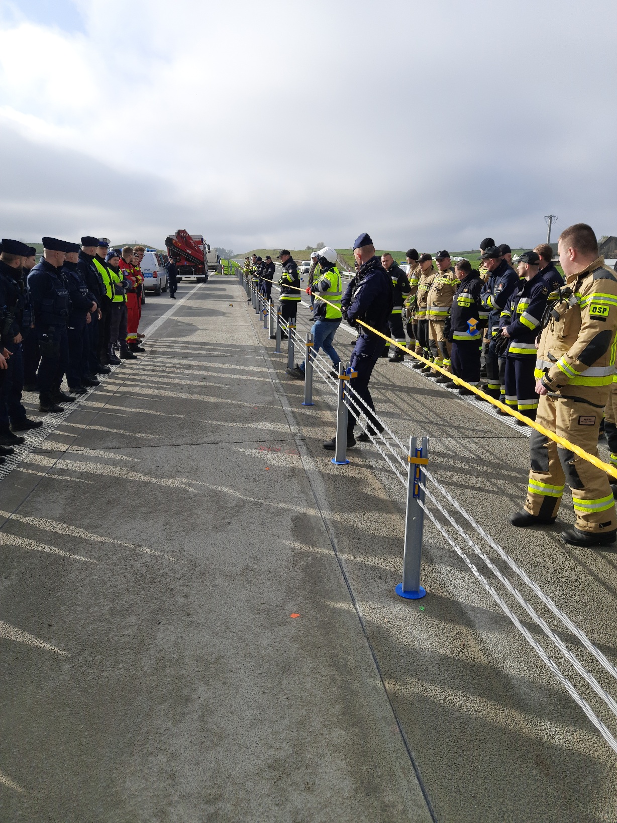 z miejsca wypadku. Po zakończeniu epizodu praktycznego uczestnicy mogli przećwiczyć demontaż energochłonnych barier linowych. W ćwiczeniach uczestniczyli strażacy z KM Państwowej Straży Pożarnej w Suwałkach, druhowie z OSP w Szypliszkach, Kaletniku