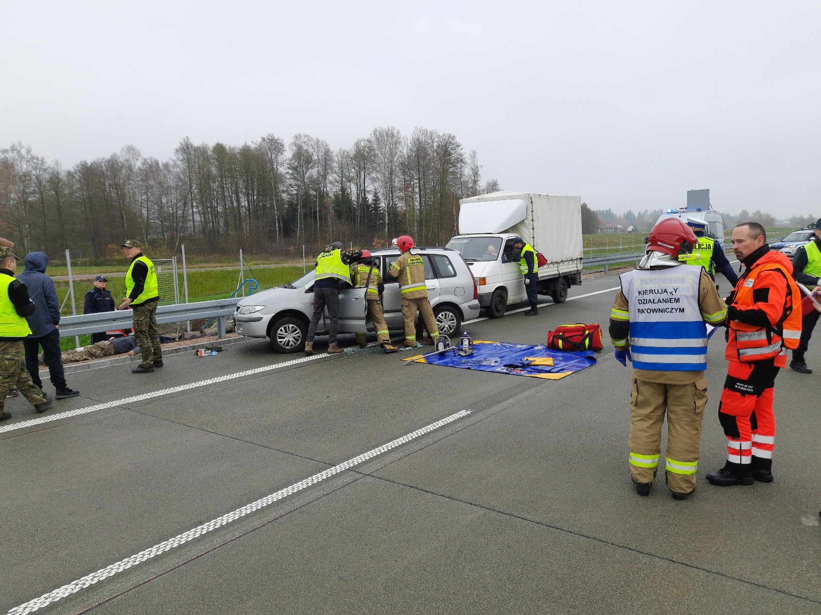 Ćwiczenia służb ratowniczych w powiecie suwalskim na S61