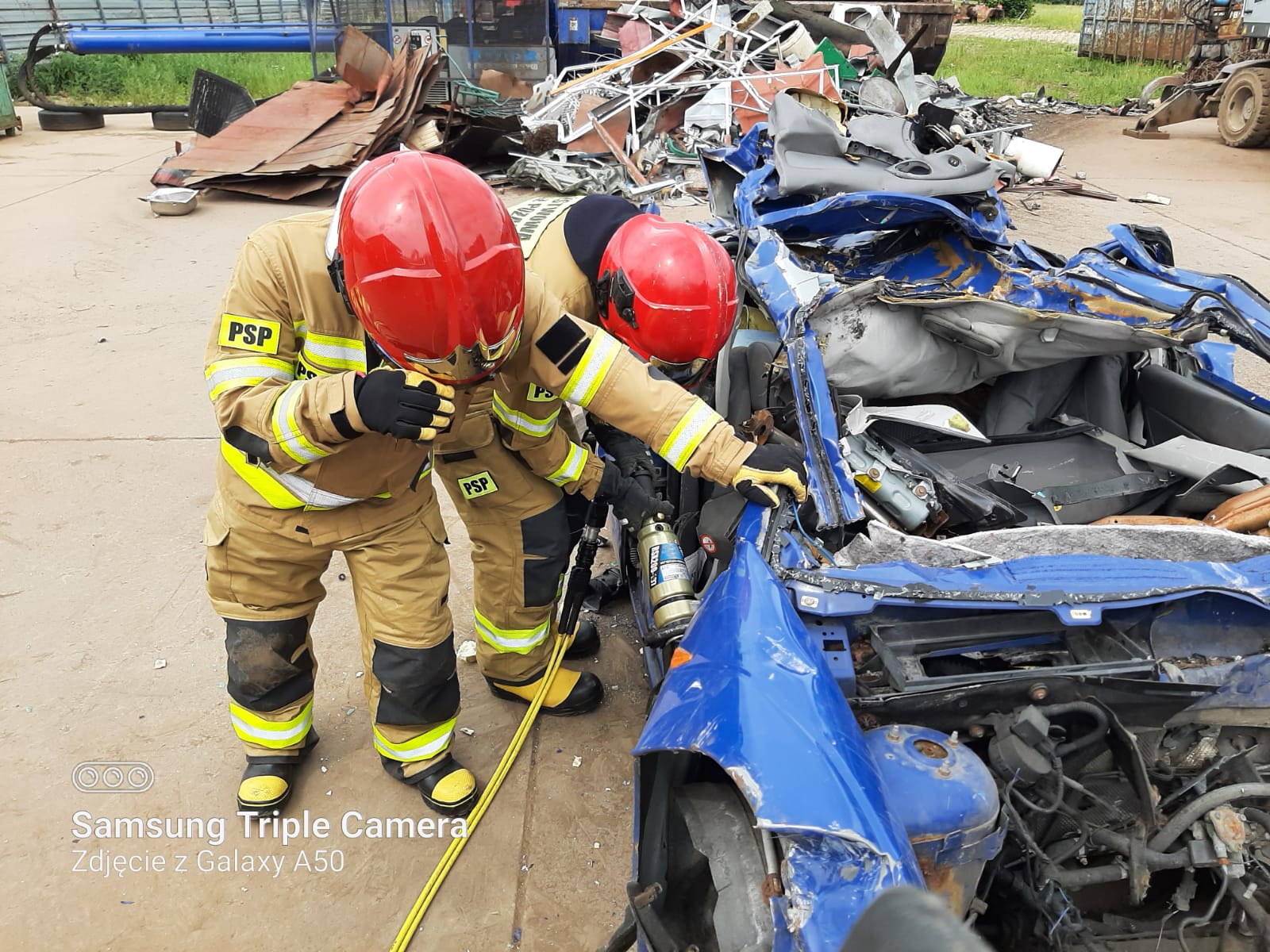 W dniu 12.06.2021 roku dzięki uprzejmości zarządcy złomowiska w Raczkach nasi strażacy z JRG nr 1 uczestniczyli w ćwiczeniach z zakresu ratownictwa drogowego. Przygotowane wraki pojazdów osobowych zostały pocięte przy użyciu sprzętu hydraulicznego. Ćwiczony był sposób uzyskiwania dostępu do osób poszkodowanych, tj. wycinanie drzwi, dachu, podnoszenie deski rozdzielczej. W tym samym dniu miały miejsce dwa zdarzenia drogowe z udziałem pojazdów. Dziękujemy za możliwość przeprowadzenia ćwiczeń.