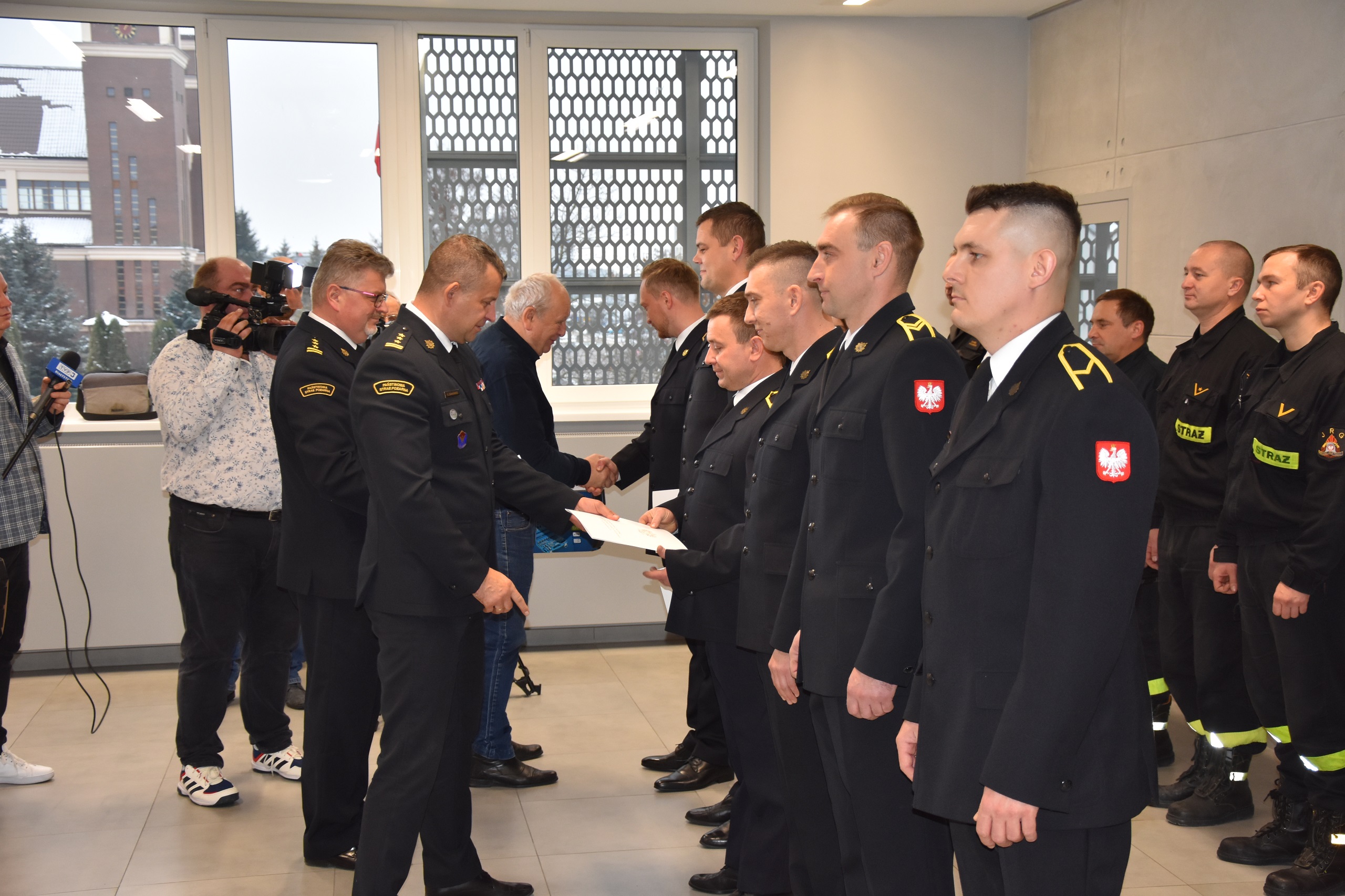 W dniu 02 grudnia 2022 roku w siedzibie Komendy Miejskiej PSP w Suwałkach miało miejsce uroczysta zbiórka z okazji podziękowania funkcjonariuszom straży pożarnej z tut. Komendy. Zdarzenie, którego dotyczy spotkanie miała miejsce 27 października 2022 roku, gdy podczas obowiązków służbowych na terenie Jednostki Ratowniczo-Gaśniczej nr 1 w Suwałkach funkcjonariusze zauważyli nienaturalne zachowanie kobiety jadącej trójkołowym rowerem po czym na wysokości hurtowni elektrycznej „Elektromil” przewróciła się na chodnik. Strażacy całą zmianą zareagowali i udzielili pomocy kobiecie w postaci resuscytacji krążeniowo-oddechowej ze skutkiem pozytywnym, poczym przekazali poszkodowaną Zespołowi Ratownictwa Medycznego, gdzie została przetransportowana do szpitala. Wyróżnienia za godna postawę i profesjonalizm funkcjonariuszy udzielił Podlaski Komendant Wojewódzki Państwowej Straży Pożarnej st. bryg. Sebastian Zdanowicz, Komendant Miejski st. bryg. Arkadiusz Buchowski oraz podziękowania w imieniu społeczeństwa udzielił właściciel hurtowni elektrycznej Pan Zbigniew i Marcin Ślaski.