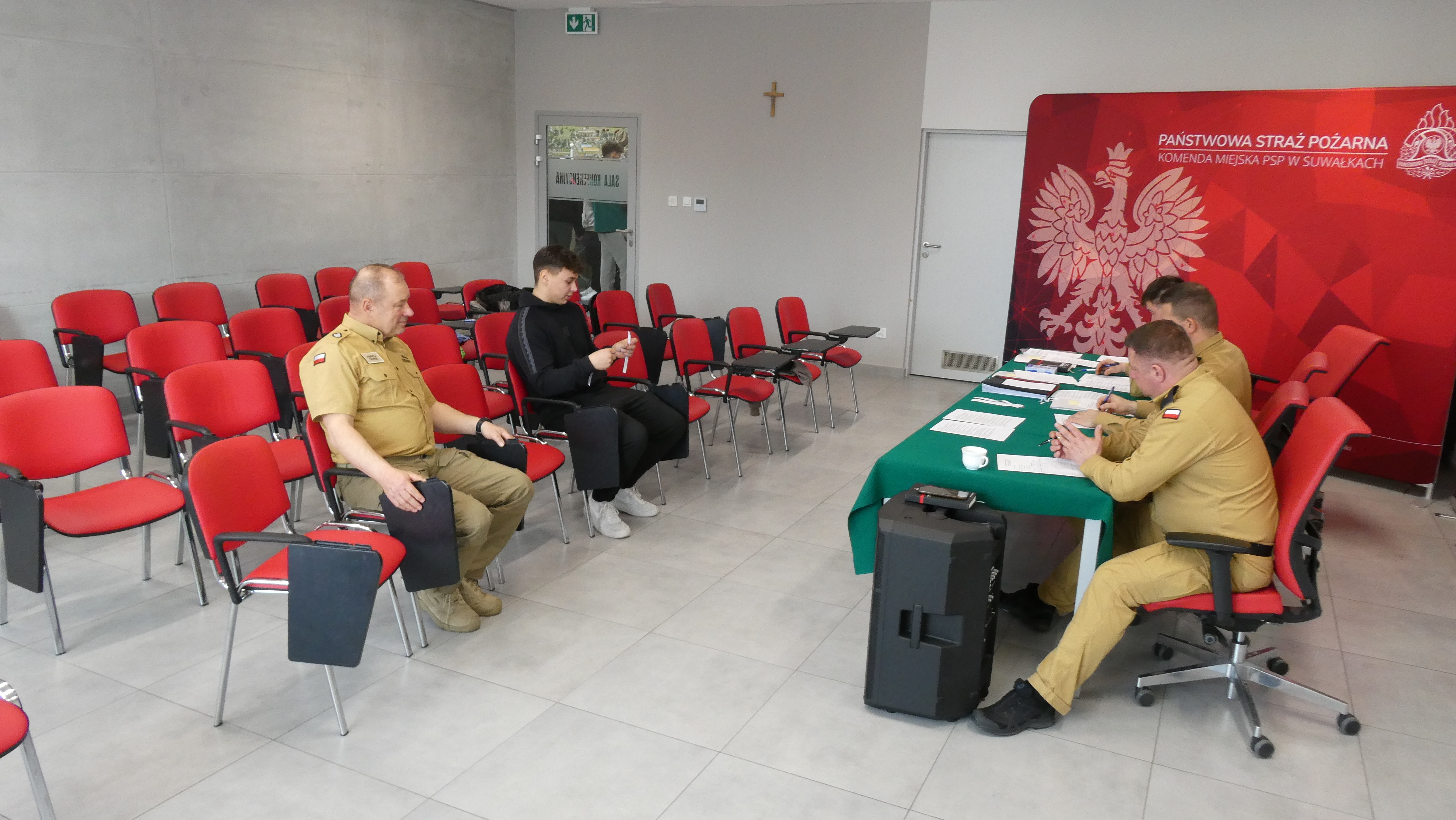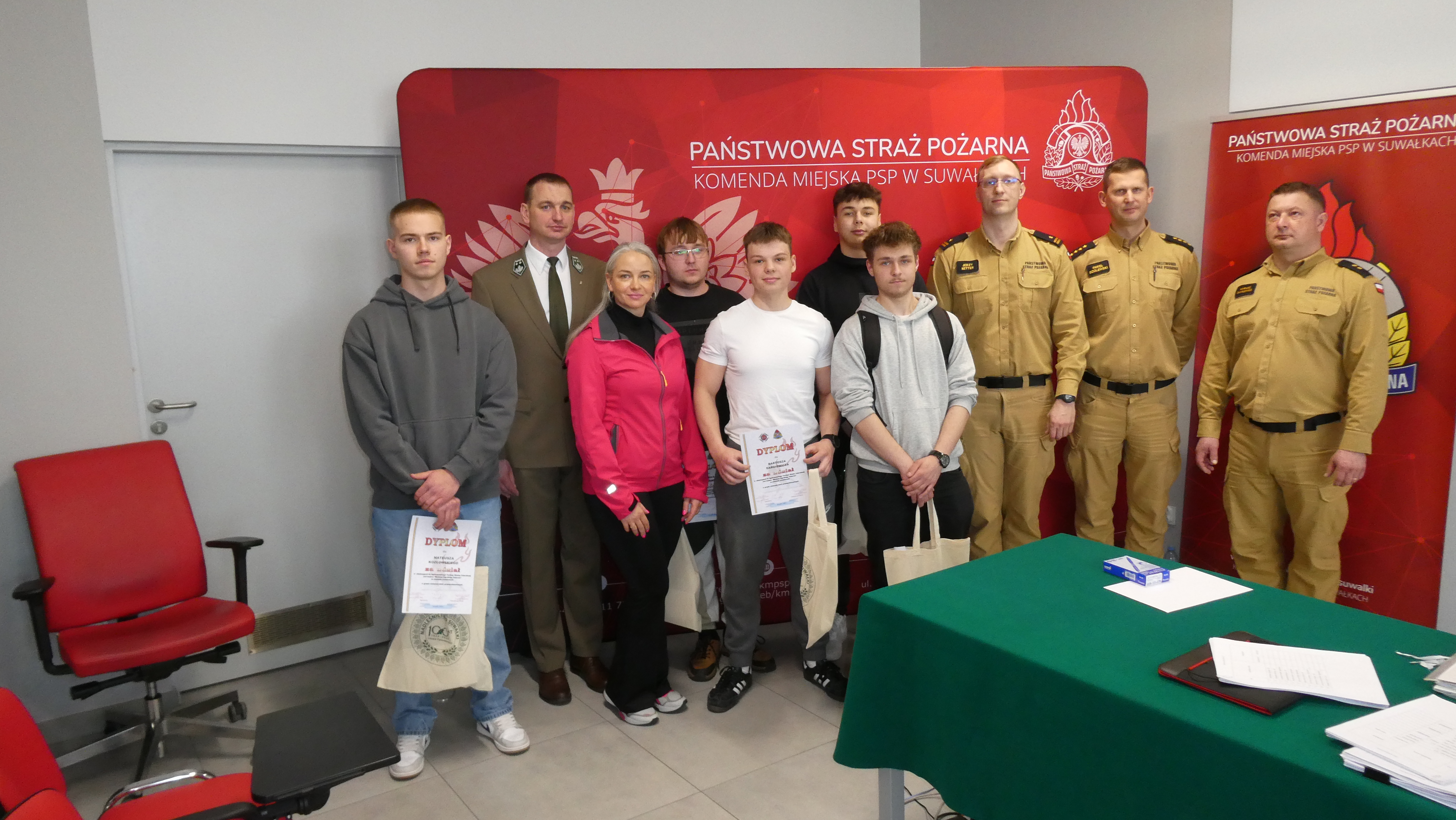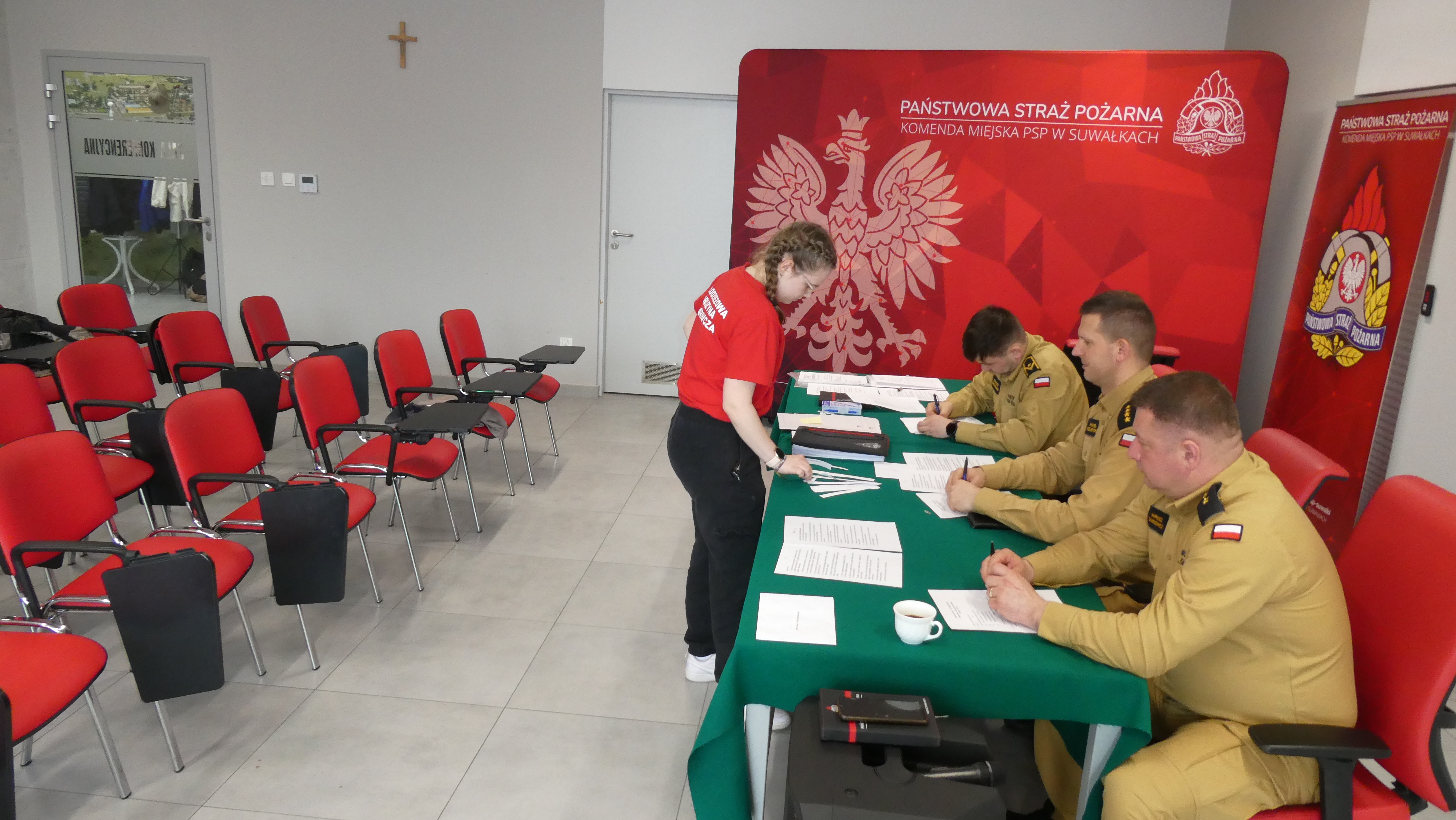 16 kwietnia 2026 r. w siedzibie Komendy Miejskiej PSP w Suwałkach odbyły się powiatowe eliminacje XLVIII Ogólnopolskiego Turnieju Wiedzy Pożarniczej ,,Młodzież Zapobiega Pożarom''.