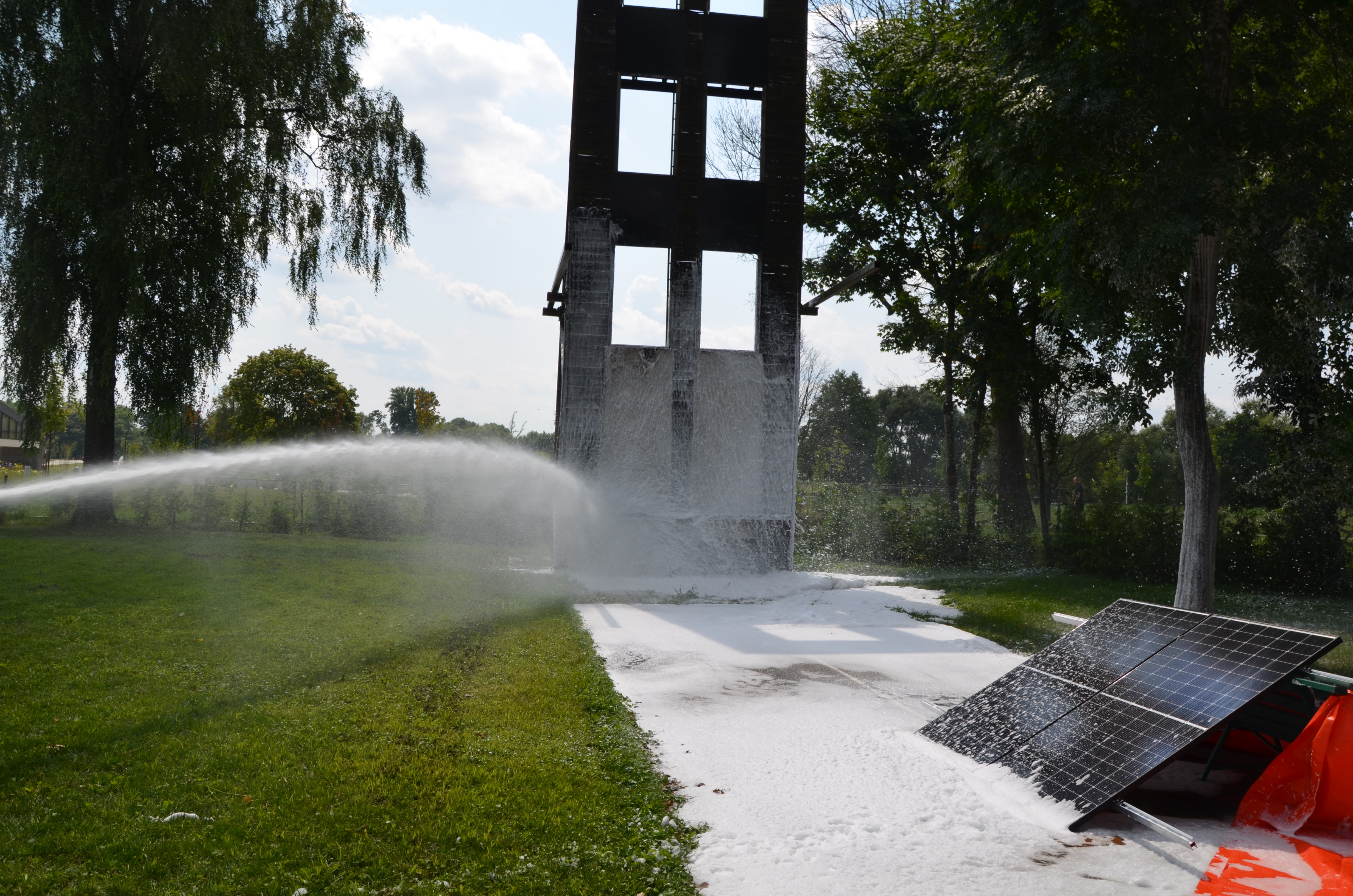 W części teoretycznej szkolenia omówiono zagadnienia związane z bezpieczeństwem prowadzonych akcji ratowniczo - gaśniczych, omówiono zasadę działania instalacji fotowoltaicznych oraz metody ich gaszenia. Natomiast podczas części praktycznej dokonano prezentacji zagrożeń związanych z łukiem elektrycznym i doskonalono techniki kwalifikowanej pierwszej pomocy w przypadku osób porażonych prądem. Ponadto mierzono napięcie na panelach przykrytych sprężoną pianą gaśniczą, kocem gaśniczym, a także przeprowadzono symulowaną akcję gaśniczą pożaru paneli umiejscowionych na dachu budynku oraz na ziemi.