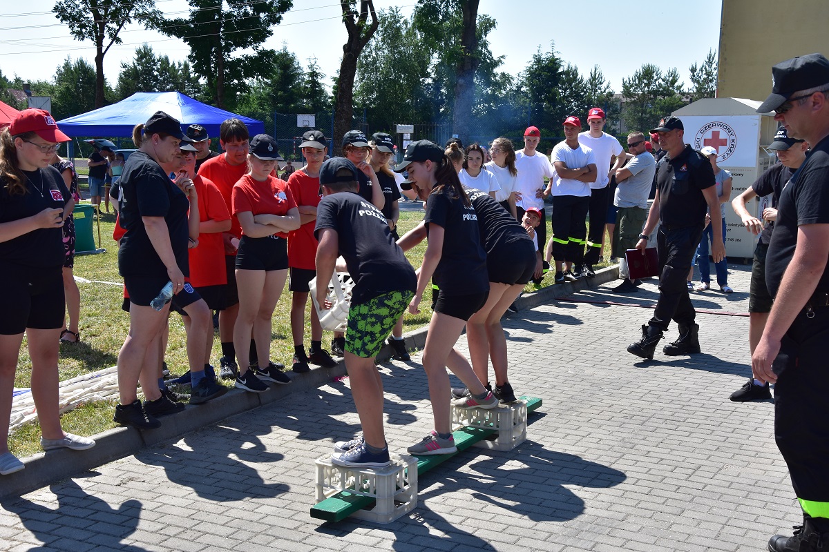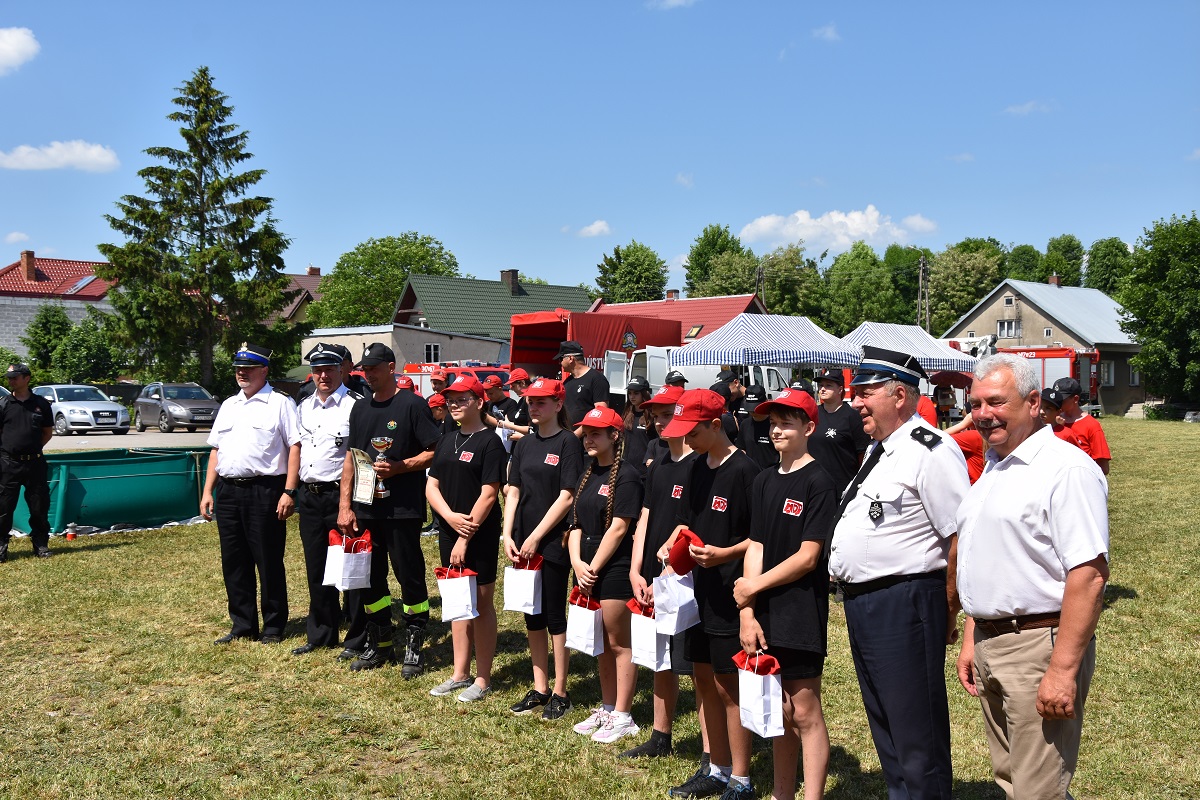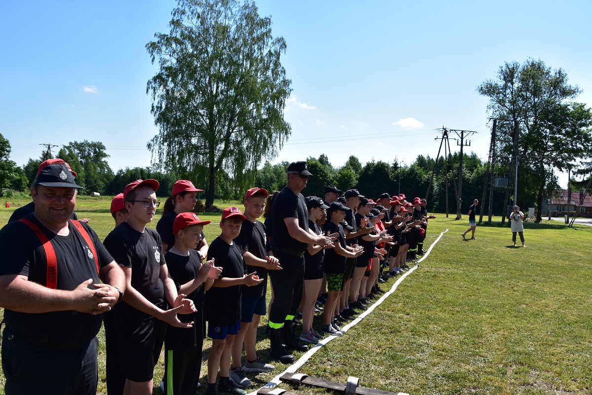 5 drużyn z Ochotniczych Straży Pożarnych. Drużyny liczyły od 6 do 8 osób, które rywalizowały wzajemnie ze sobą. Konkurencje obejmowało 8 stacji, tj.: most na rzece, strażackie narty, awaria rurociągu, krzywa wieża, worki, aby do celu, akcja gaśnicza oraz trójbój. Zawody miały na celu popularyzację wśród młodzieży zagadnień z ochrony przeciwpożarowej. Ponadto młodzież podczas zmagań na poszczególnych stanowiskach uczyła się współpracy zespołowej. W ogólnej klasyfikacji wyniki przedstawiały się następująco: