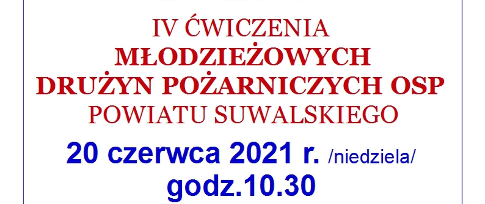 IV Ćwiczenia Młodzieżowych Drużyn Pożarniczych OSP powiatu suwalskiego 10.06.2021 Zdjęcia (1) Pokaż zdjęcie 1 z galerii.