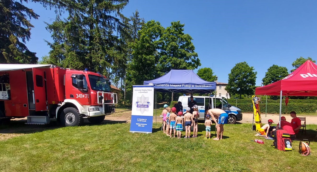 W dniu 19.06.2021 roku o godzinie 12:00 w Starym Folwarku strażacy ze Specjalistycznej Grupy Ratownictwa Wodno - Nurkowego z JRG nr 1 w Suwałkach wspólnie z Policją i Suwalskim WOPR uczestniczyli w pokazach ratownictwa wodnego i pogadankach o bezpieczeństwie nad wodą. Pokazy wykonano w związku z akcją "Kręci mnie bezpieczeństwo". Zorganizowano pokaz użycia rzutki ratowniczej, podjęcia poszkodowanego na łódź, prezentowano prawidłowy sposób zakładania kamizelek ratunkowych, metody działań strażaków na wodach, sposób udzielania pierwszej pomocy dla osób wydobytych z wody. Dodatkowo można było obejrzeć sprzęt będacy na wyposażeniu samochodu ratownictwa wodnego.