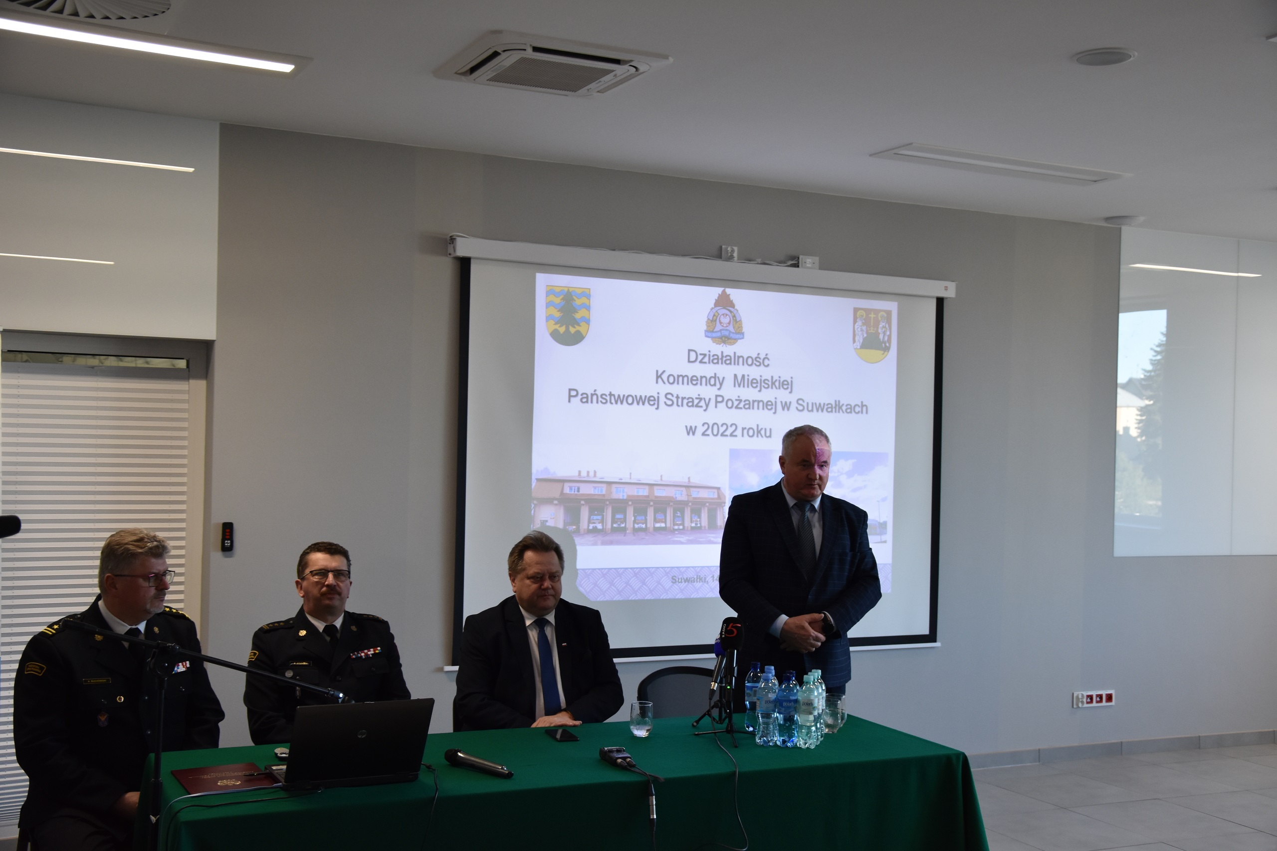 Informację o działalności tut. komendy za poprzedni rok przedstawił Komendant Miejski Państwowej Straży Pożarnej w Suwałkach st. bryg. Arkadiusz Buchowski omawiając statystykę zdarzeń, szkolenia, ćwiczenia, wydarzenia, zakupiony sprzęt, dofinansowania, zrealizowane plany i przedsięwzięcia do realizacji na rok bieżący.