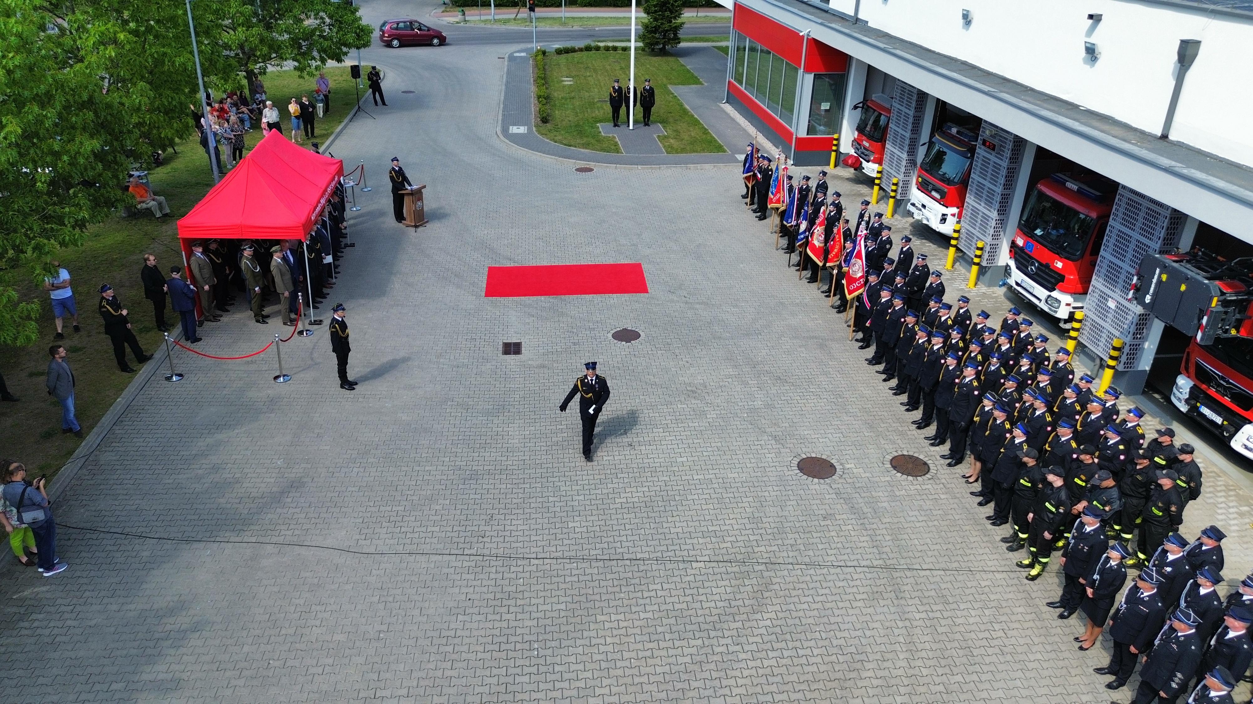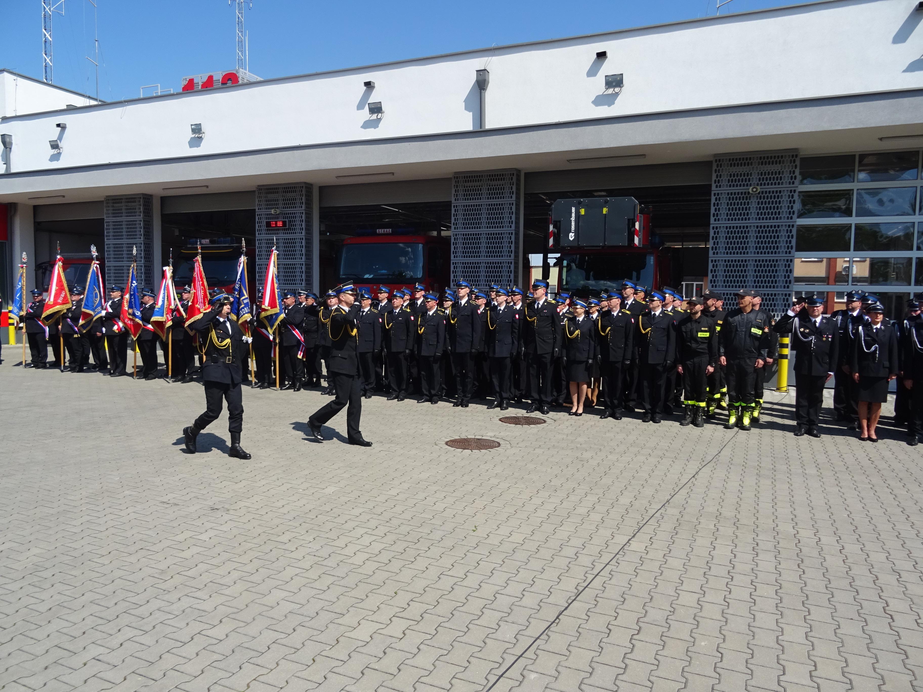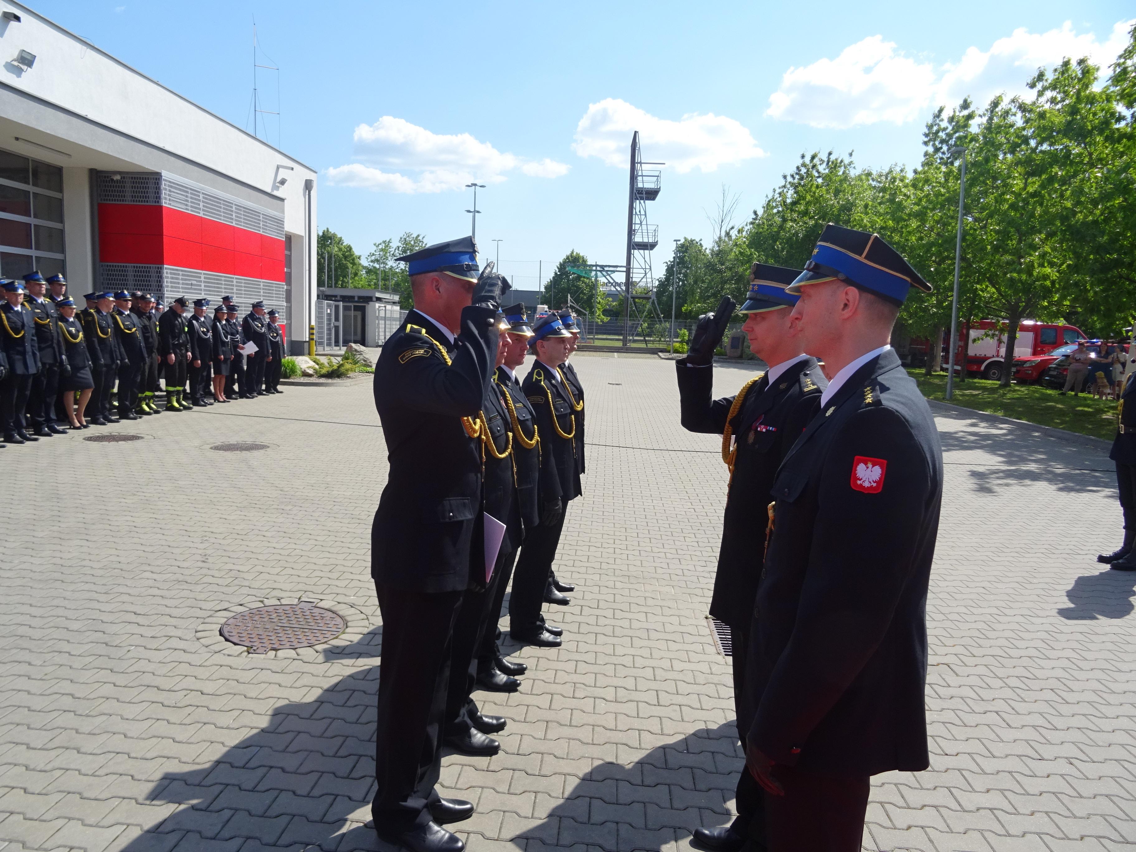 Główna część uroczystości rozpoczęła się meldunkiem złożonym st. bryg. Marcinowi Wierelowi Zastępcy Podlaskiego Komendanta Wojewódzkiego PSP przez dowódcę uroczystości