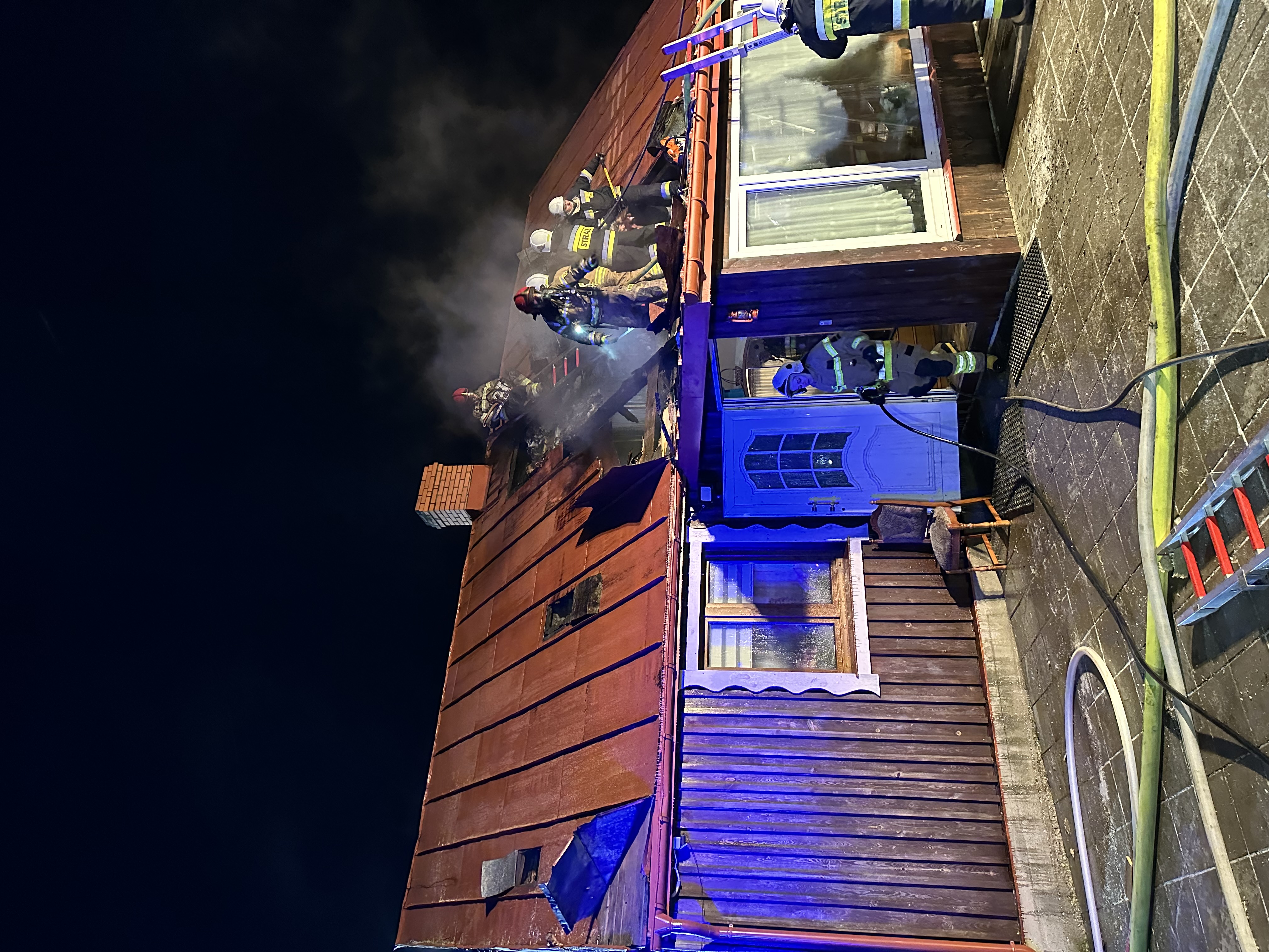 W dniu 11 lutego 2025 roku przed godziną 15:00 do SK KM PSP w Suwałkach wpłynęło zgłoszenie o pożarze sadzy w kominie budynku mieszkalnego jednorodzinnego w miejscowości Wołownia gmina Jeleniewo. Podczas rozpoznania sytuacji na miejscu przez strażaków ustalono, że pożarem objęte jest całe poddasze drewnianego budynku mieszkalnego. W wyniku zdarzenia nie stwierdzono osób poszkodowanych. Po dojechaniu na miejsce zdarzenia strażacy w pierwszej kolejności zabezpieczyli miejsce zdarzenia, po czym rozpoczęto działania gaśnicze na objętym pożarem poddaszu nieużytkowym. Dalsze działania zastępów polegały na zatrzymaniu rozprzestrzeniania się pożaru na pozostałą części budynku oraz na dogaszaniu palących się elementów więźby dachowej. W działaniach brało udział 6 zastępów i 28 strażaków. Cała akcja gaśnicza trwała prawie 4 godziny.
