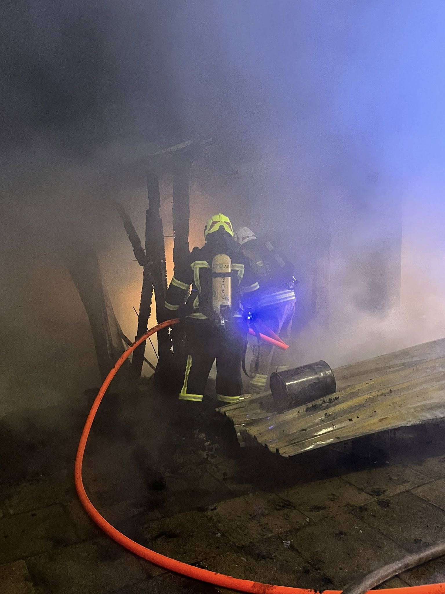 Po dojeździe pierwszych zastępów ustalono, że pożarem objęty jest drewniany garaż. Właściciele posesji, zamieszkujący naprzeciwko, poinformowali Kierującego Działaniem Ratowniczym (KDR) o znajdujących się wewnątrz butlach z gazem propan–butan.