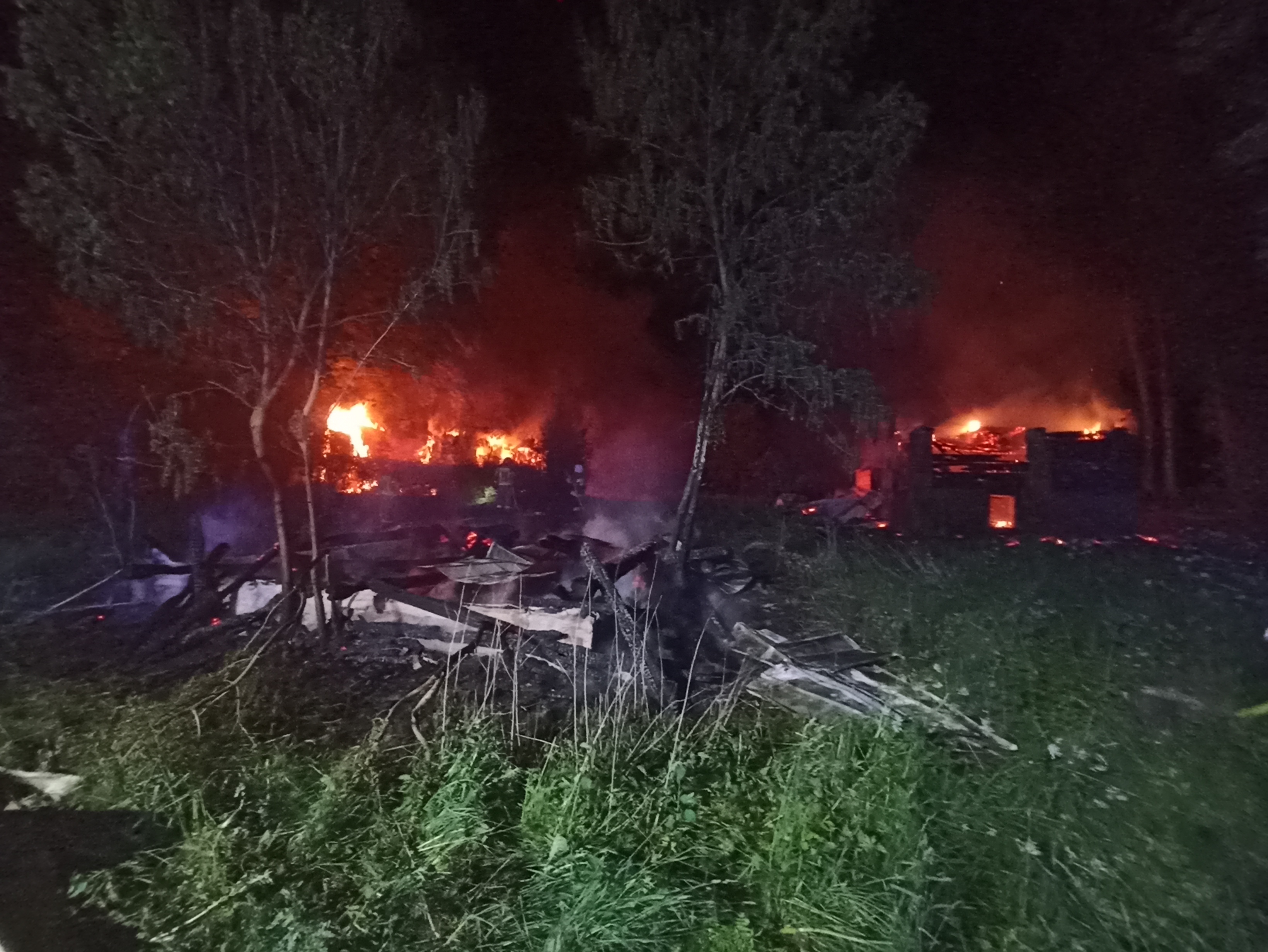 W dniu 01.06.2023 roku około godziny 00:14 do Stanowiska Kierowania Komendanta Miejskiego Państwowej Straży Pożarnej w Suwałkach wpłynęło zgłoszenie o pożarze budynków gospodarczych i mieszkalnego w miejscowości Leszkiemie. Na miejsce zostały zadysponowane w pierwszej kolejności siły i środki z Jednostki Ratowniczo-Gaśniczej nr 2 oraz jednostki ochrony przeciwpożarowej. Po wstępnym rozpoznaniu ustalono, że ogniem całkowicie objęte były trzy budynki (budynek gospodarczy, stodoła oraz budynek mieszkalny). Działania zastępów polegały na zabezpieczeniu miejsca zdarzenia, podaniu prądów wody w celu gaszenia pożaru i obrony pobliskich drzew w celu nie rozprzestrzenienia się pożaru. Następnie po dojeździe kolejnych zastępów zwiększono podawanie prądów i zbudowano linię zaopatrzenia wodnego do miejsca pożaru. Jak ustalono na terenie miejsca zdarzenia nikt nie przebywał, a siedlisko było opustoszałe. W działaniach brało udział cztery zastępy KM PSP w Suwałkach, OSP Przerośl, OSP Wiżajny, OSP Jeleniewo, OSP Rutka-Tartak, Policja.