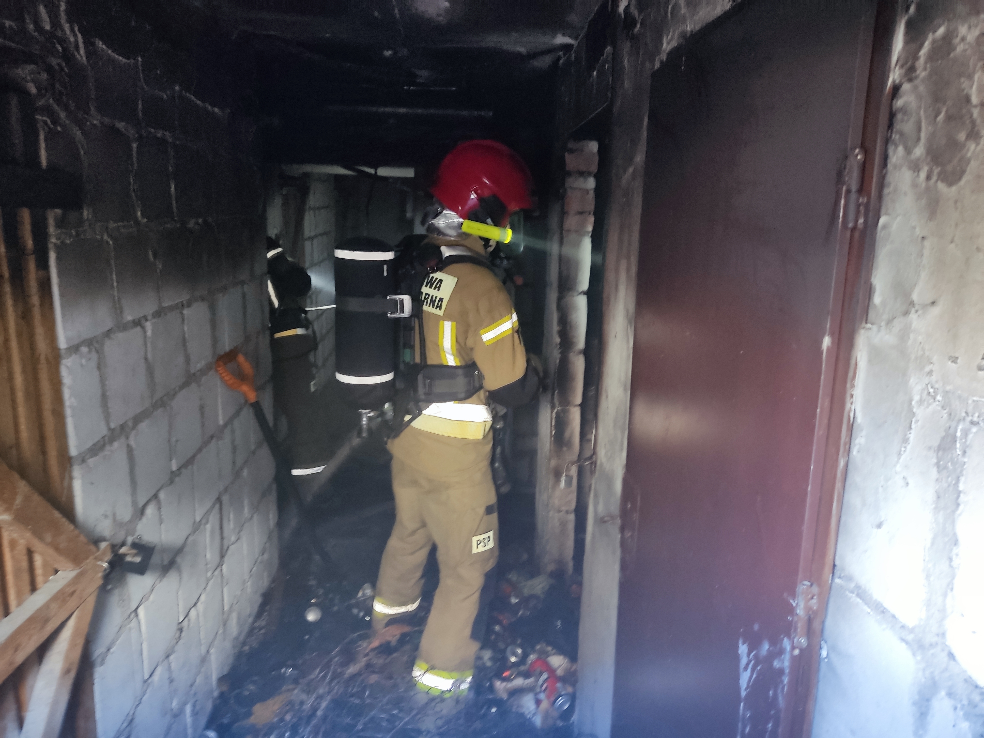 W dniu 25.07.2023 r. o godzinie 15:33 do Stanowiska Kierowania Komendanta Miejskiego Państwowej Straży Pożarnej w Suwałkach wpłynęło zgłoszenie o wydobywającym się dymie z piwnicy jedenastopiętrowego budynku. Na miejsce zostały zadysponowane siły i środki z Jednostki Ratowniczo-Gaśniczej nr 1 i 2. Po wstępnym rozpoznaniu ustalono, że w budynku wielorodzinnym doszło do pożaru komórki piwnicznej. Działania strażaków polegały na zabezpieczeniu miejsca zdarzenia, odnalezieniu źródła pożaru i jego ugaszeniu. W trakcie dojścia do miejsca pożaru strażacy odnaleźli mężczyznę, którego ewakuowali na zewnątrz budynku. Po udzieleniu pomocy medycznej został on przekazany Zespołowi Ratownictwa Medycznego. Po zlikwidowaniu zagrożenia i przewietrzeniu pomieszczeń przekazano sprawę Policji. W działaniach uczestniczyło 5 pojazdów Straży Pożarnej, Zespół Ratownictwa Medycznego, Policja, Pogotowie Energetyczne.