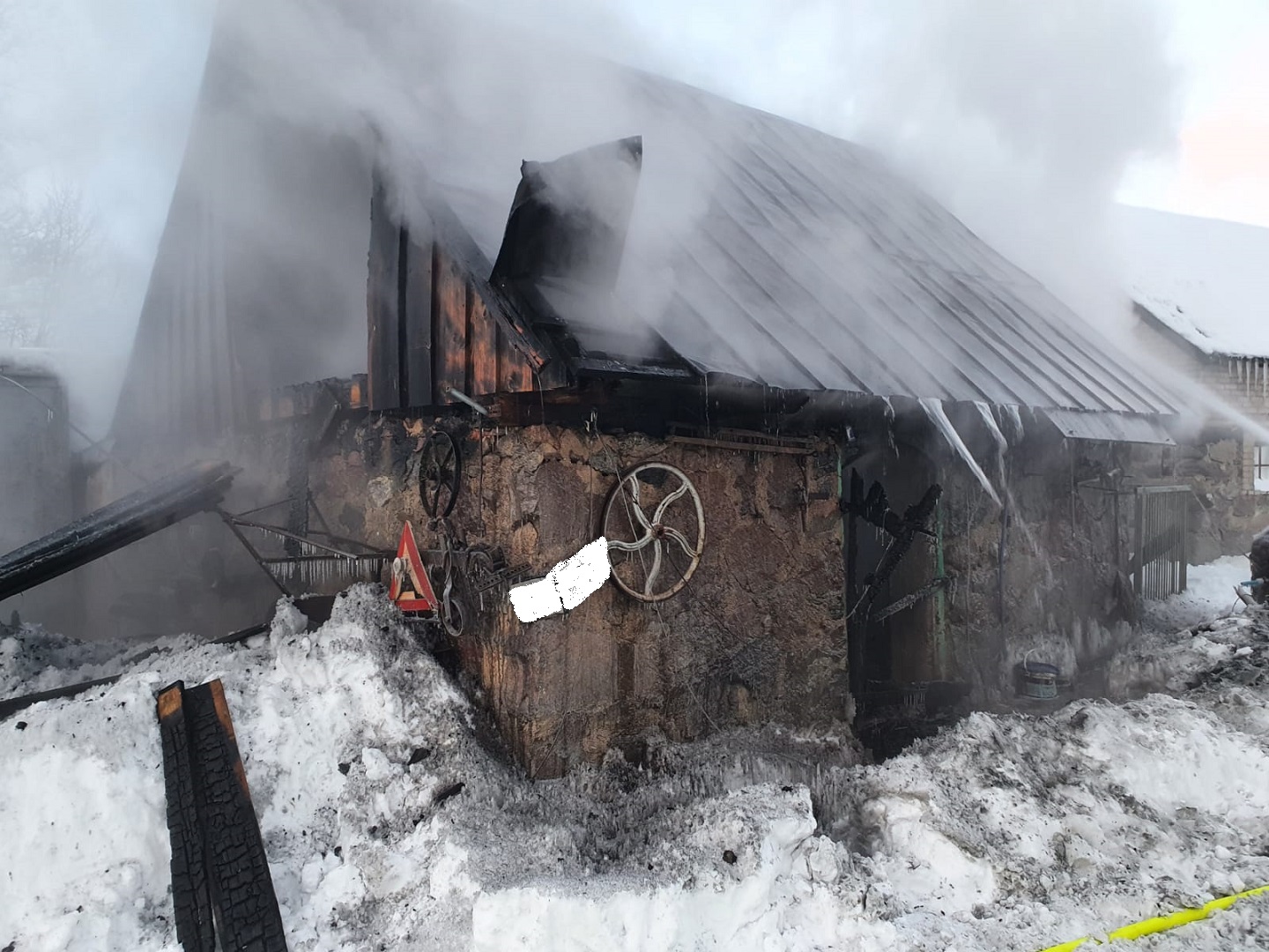 Informacja o drugim zdarzeniu wpłynęła 7 lutego b. r. tuż po godzinie 6. Po przybyciu pierwszego zastępu ochrony przeciwpożarowej na miejsce zdarzenia stwierdzono, iż pali się budynek magazynowy. W pierwszej fazie działań druhowie z OSP w Jeleniewie podali dwa prądy wody na palący się obiekt, a po przybyciu kolejnych sił i środków podano kolejne trzy prądy, dwa w natarciu, a jeden w obronie budynku ze składem drewna, który znajdował się bezpośrednio przy obiekcie objętym pożarem. Miejsce zdarzenia zabezpieczono i ustalono, że nie ma osób poszkodowanych, a po stłumieniu ognia przystąpiono do dogaszania pogorzeliska. W działaniach ratowniczych uczestniczyły 2 zastępy PSP oraz jednostki OSP z Jeleniewa, Bachanowa, Gulbieniszek i Podwysokiego Jeleniewskiego, łącznie 21 ratowników.