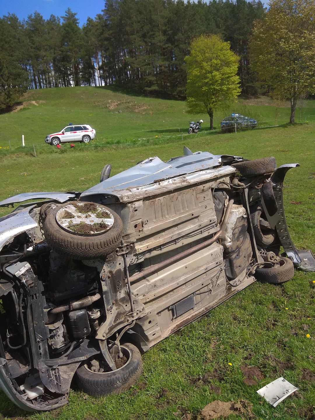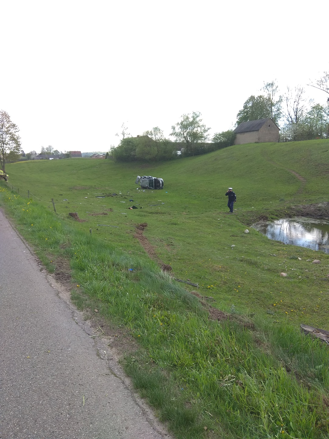 Z pożaru strażacy zostali przedysponowani do kolejnego zdarzenia na drodze wojewódzkiej 655 przed miejscowością Jeleniewo, gdzie z niewyjaśnionych przyczyn kierowca samochodu osobowego Peugeot wypadł z jezdni na łuku drogi. Pojazd zatrzymał się na łące leżąc na prawym boku a kierujący znajdował się dwa metry przed pojazdem. Działania zastępów Państwowej Straży Pożarnej polegały na zabezpieczeniu miejsca zdarzenia i prowadzeniu akcji resuscytacji z użyciem zestawu AED. W wyniku podjętych czynności przywrócone zostały podstawowe funkcje życiowe. Poszkodowany został przewieziony przez ZRM do szpitala.