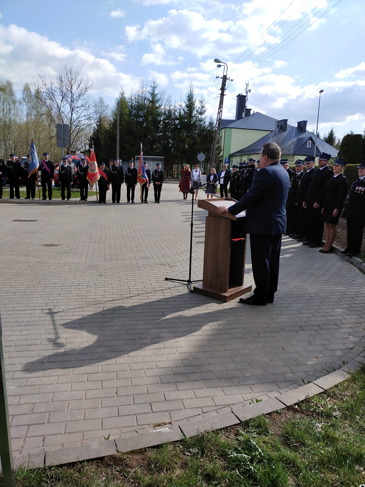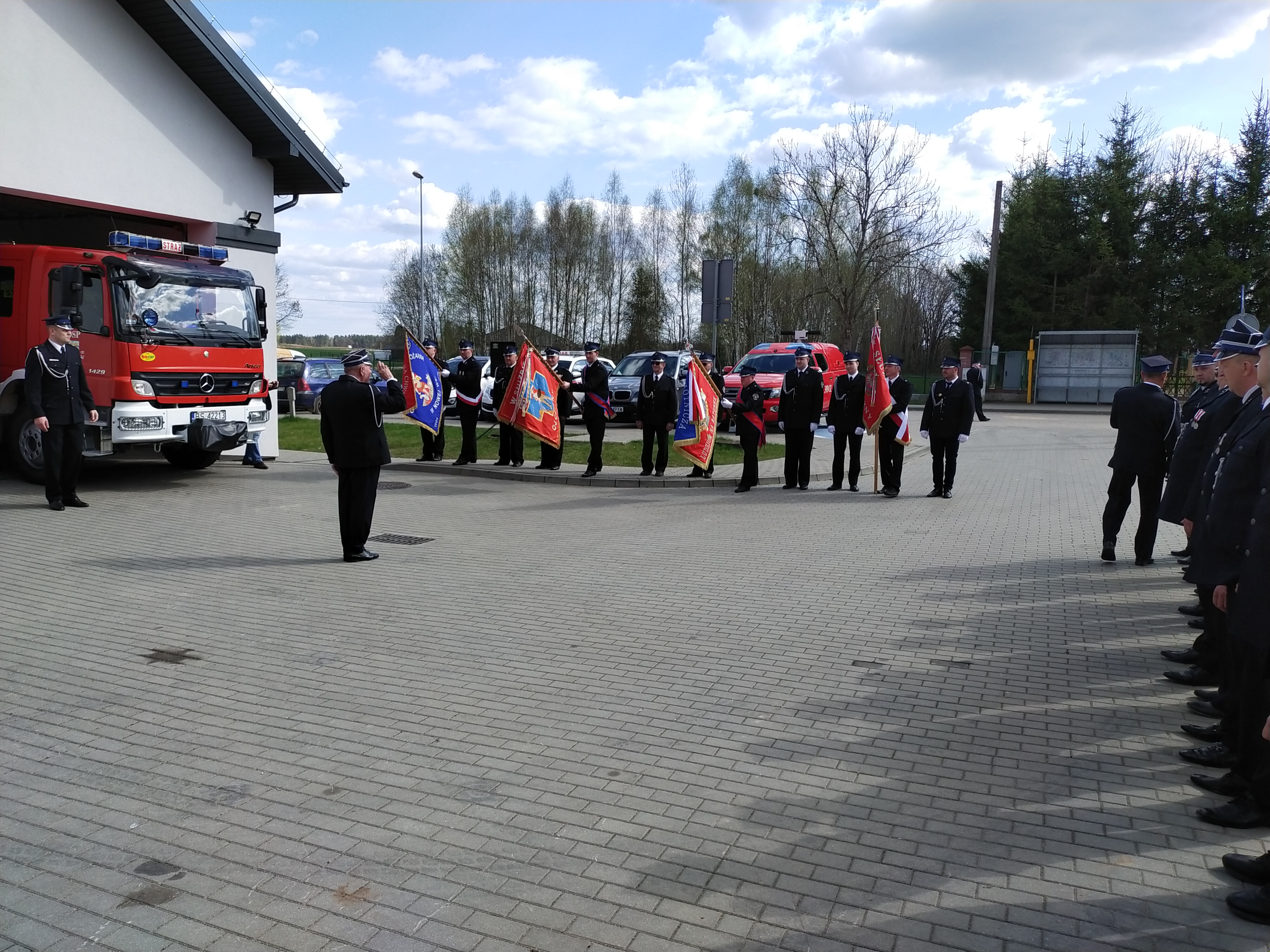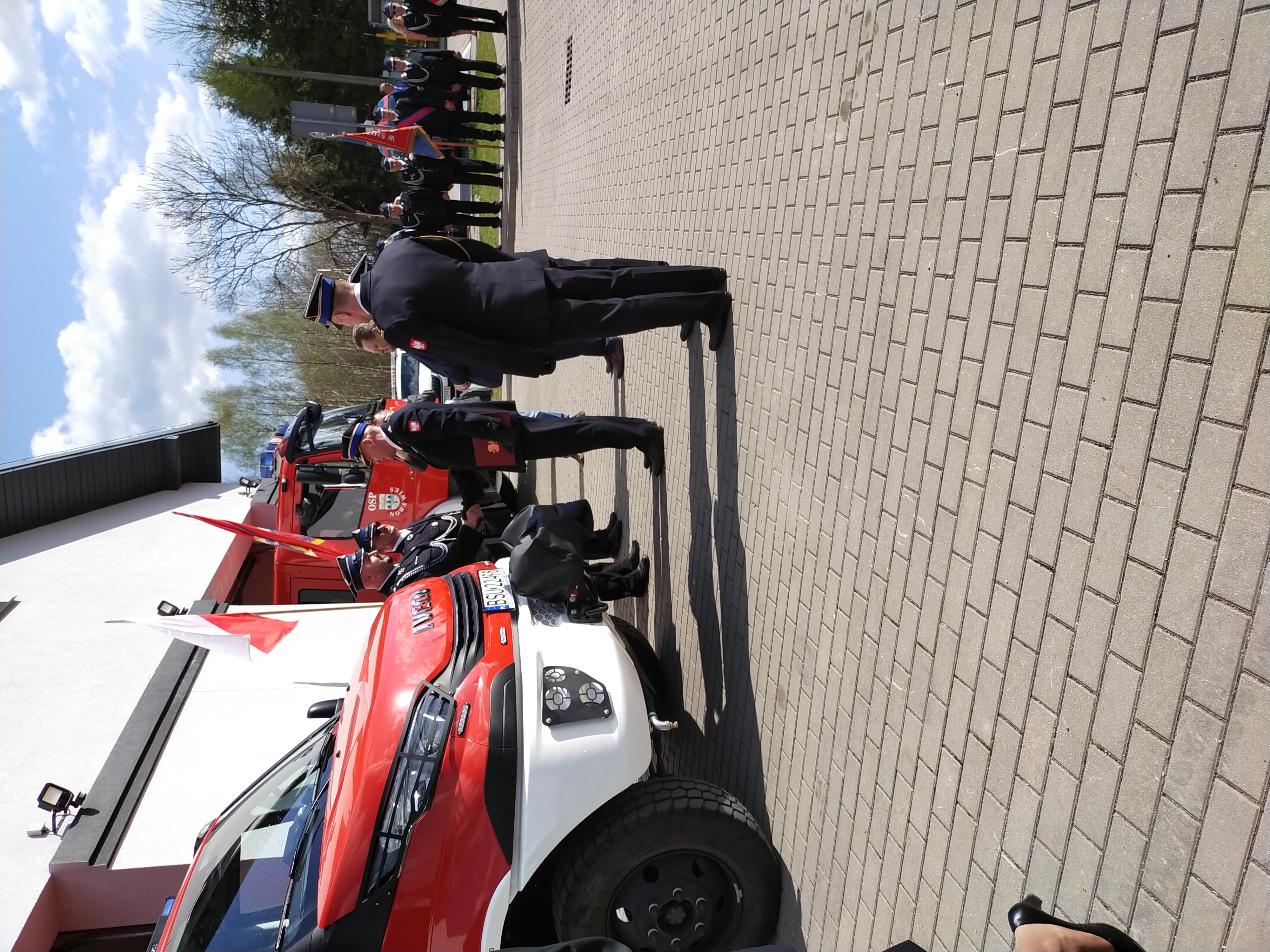 Po zakończeniu ceremonii wręczenia aktów i poświeceniu pojazdu w przemówieniach okolicznościowych głos zabrali zaproszeni goście, a wśród nich posej na sejm RP Pan Jarosław Zieliński, Zastępca Podlaskiego Komendanta Wojewódzkiego bryg. Marcin Bielakowicz, Prezes oddziału powiatowego ZOSP RP dh Tadeusz Chołko, Zastępca Starosty Powiatu suwalskiego Pan Artur Łuniewski.