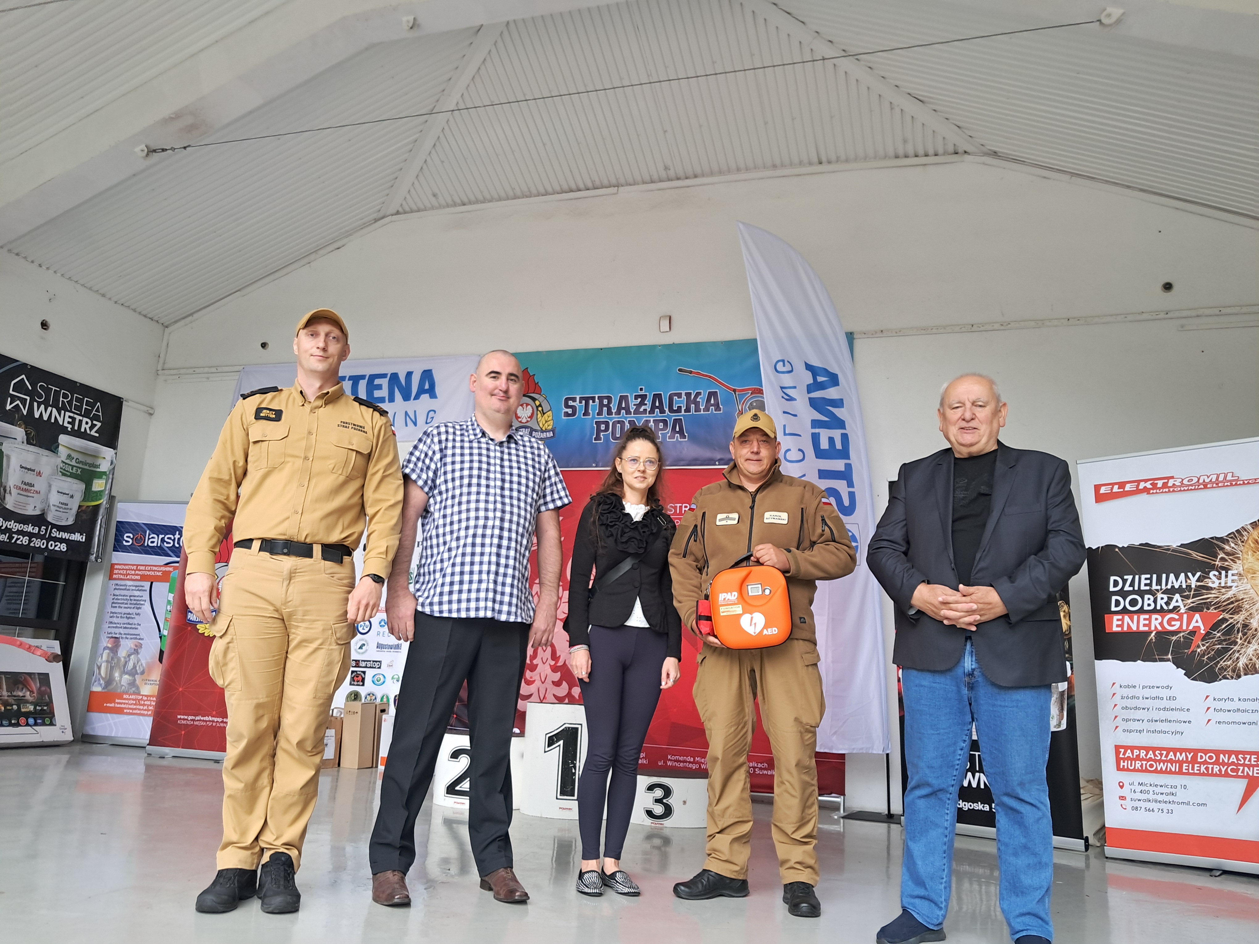 Podczas IV Turniej Firefighter Combat Challenge o Puchar Prezydenta Miasta Suwałk pod nazwą „Strażacka Pompa” miało miejsce przekazanie defibrylatora AED. Urządzenie niewielkie, ale o ogromnym znaczeniu, bo w sytuacji nagłego zatrzymania krążenia decydują właśnie pierwsze minuty o życiu ludzkim. AED daje nam szansę, by uratować czyjeś życie jeszcze przed przyjazdem karetki.