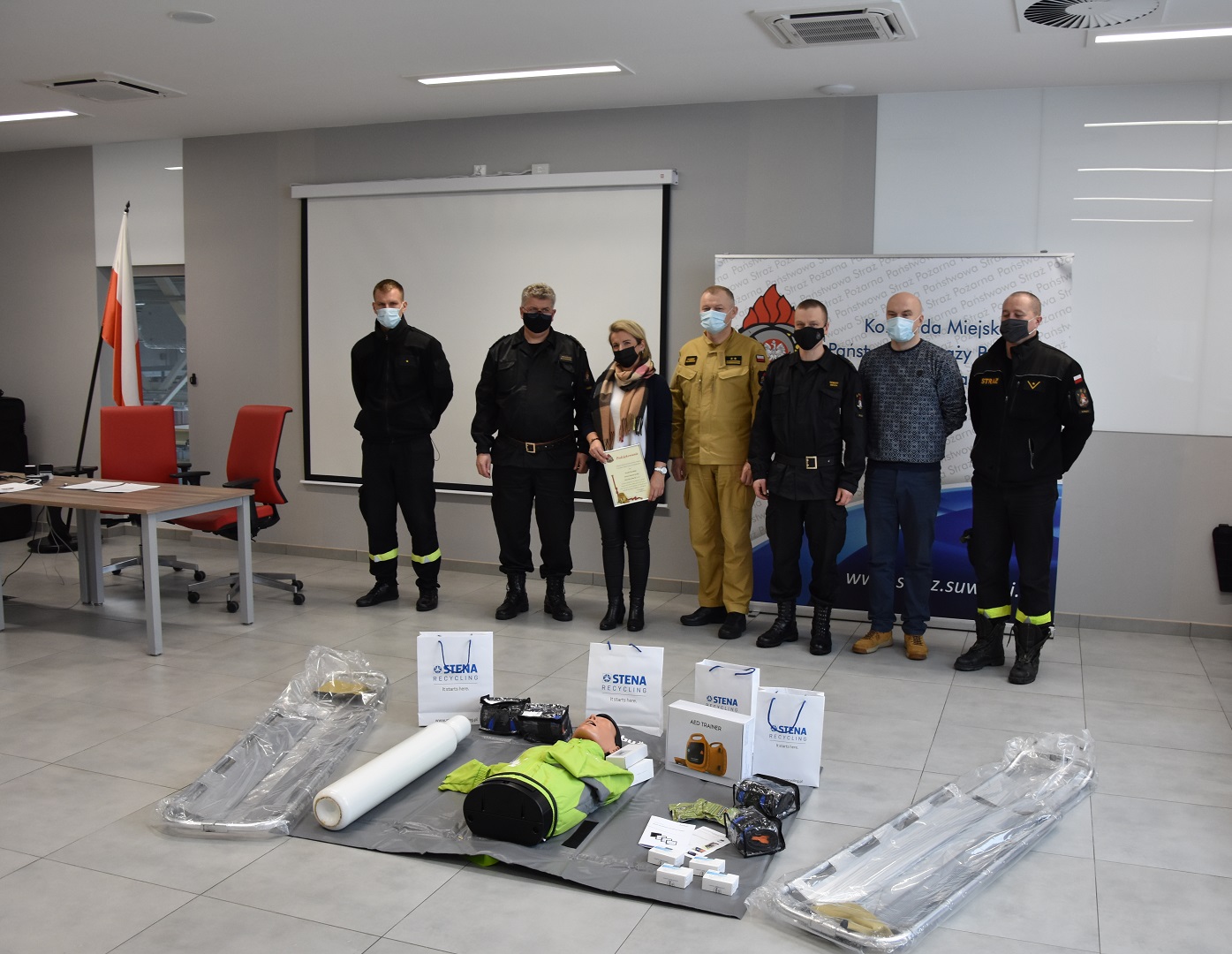 14 grudnia 2021 r. Komenda Miejska PSP w Suwałkach otrzymała od firmy Stena Recycling Sp. z o.o. darowiznę w postaci sprzętu ratownictwa medycznego oraz akcesoriów do prowadzenia doskonalenia zawodowego z zakresu medycznych działań ratowniczych.