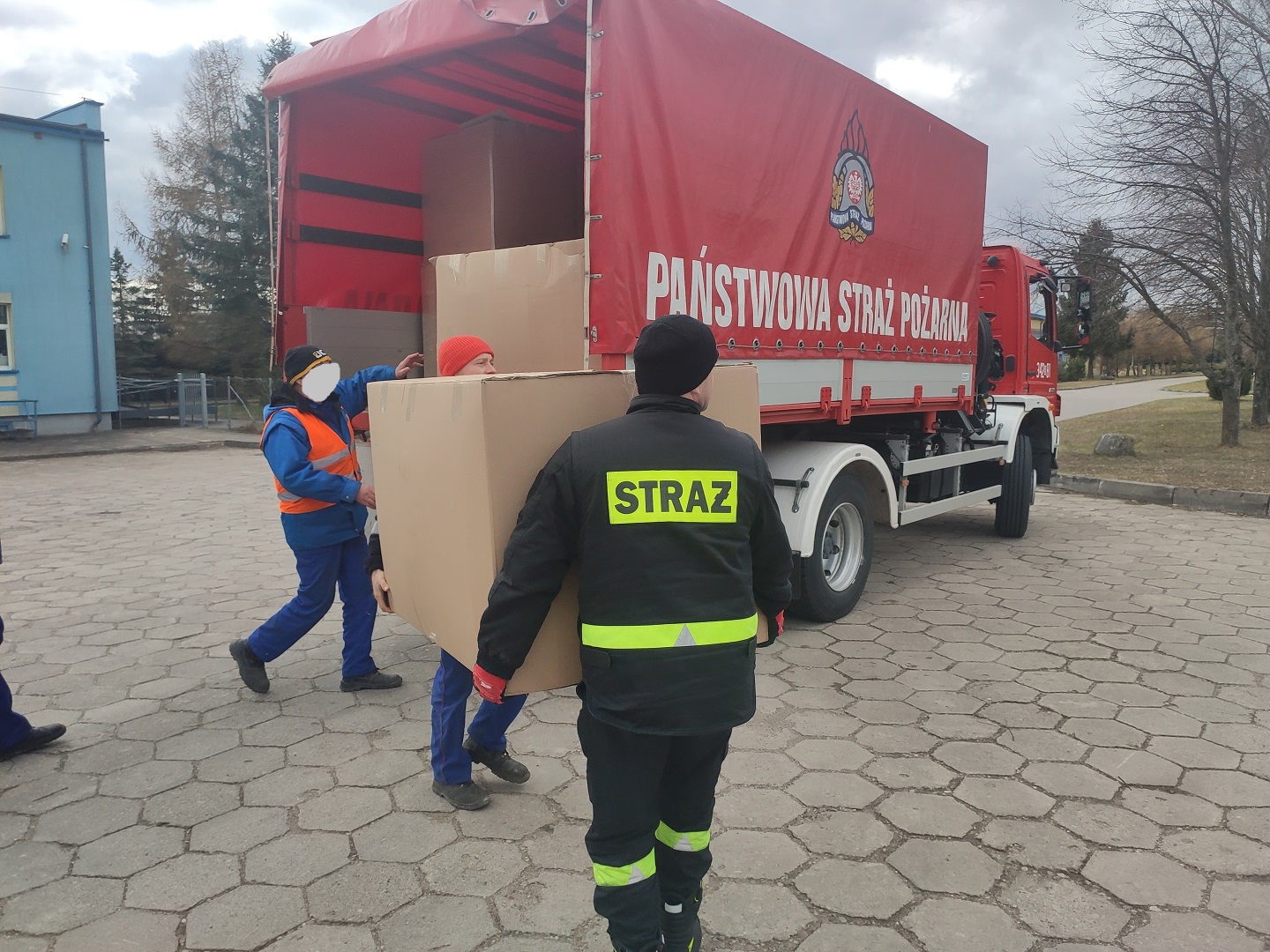 Strażacy z Suwałk wspierają przygotowanie baz lokalowych dla uchodźców z Ukrainy