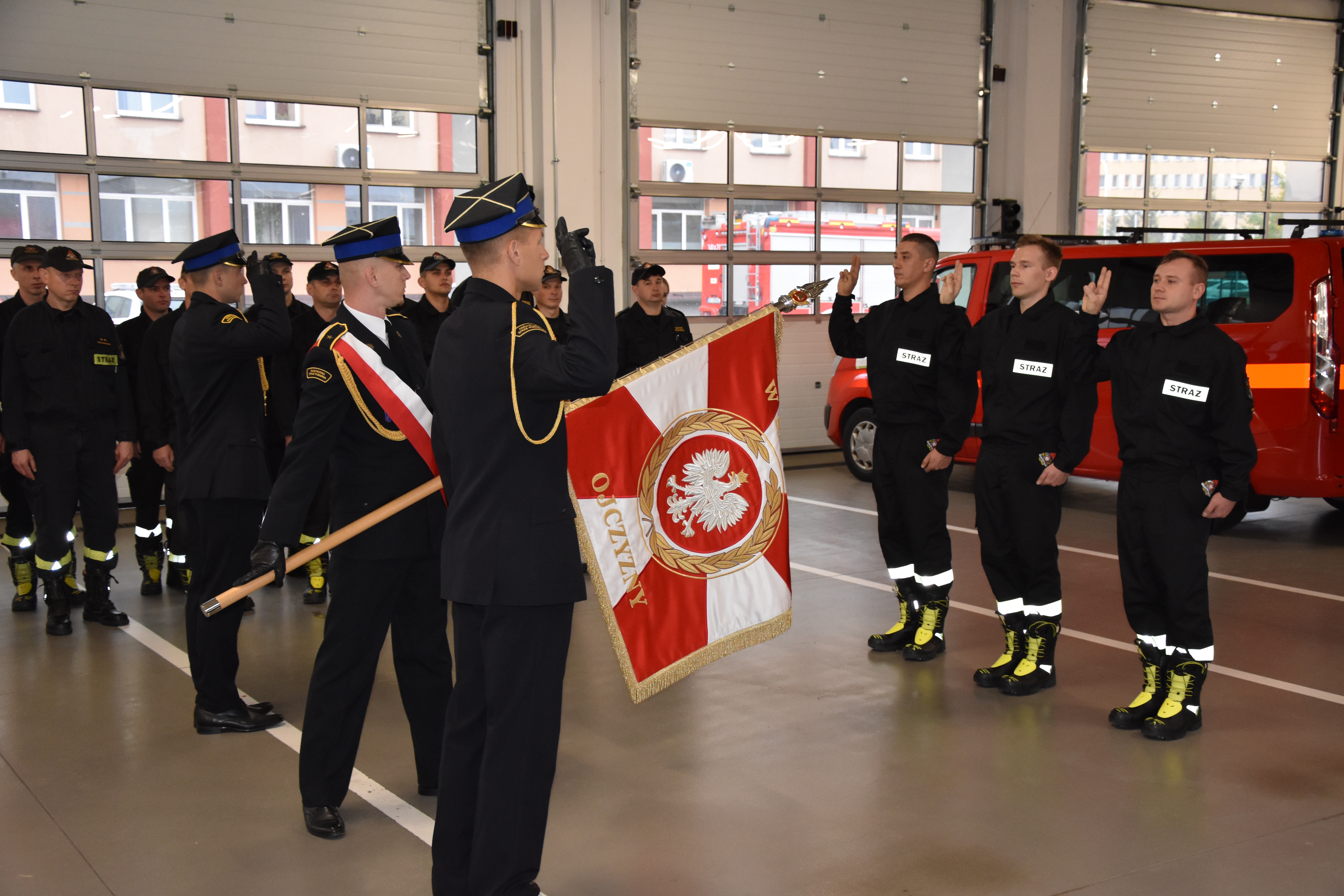 W dniu 20 października 2023 r. w Komendzie Miejskiej PSP w Suwałkach odbyła się uroczysta zbiórka, na której trzech nowo przyjętych do służby funkcjonariuszy składało ślubowanie.