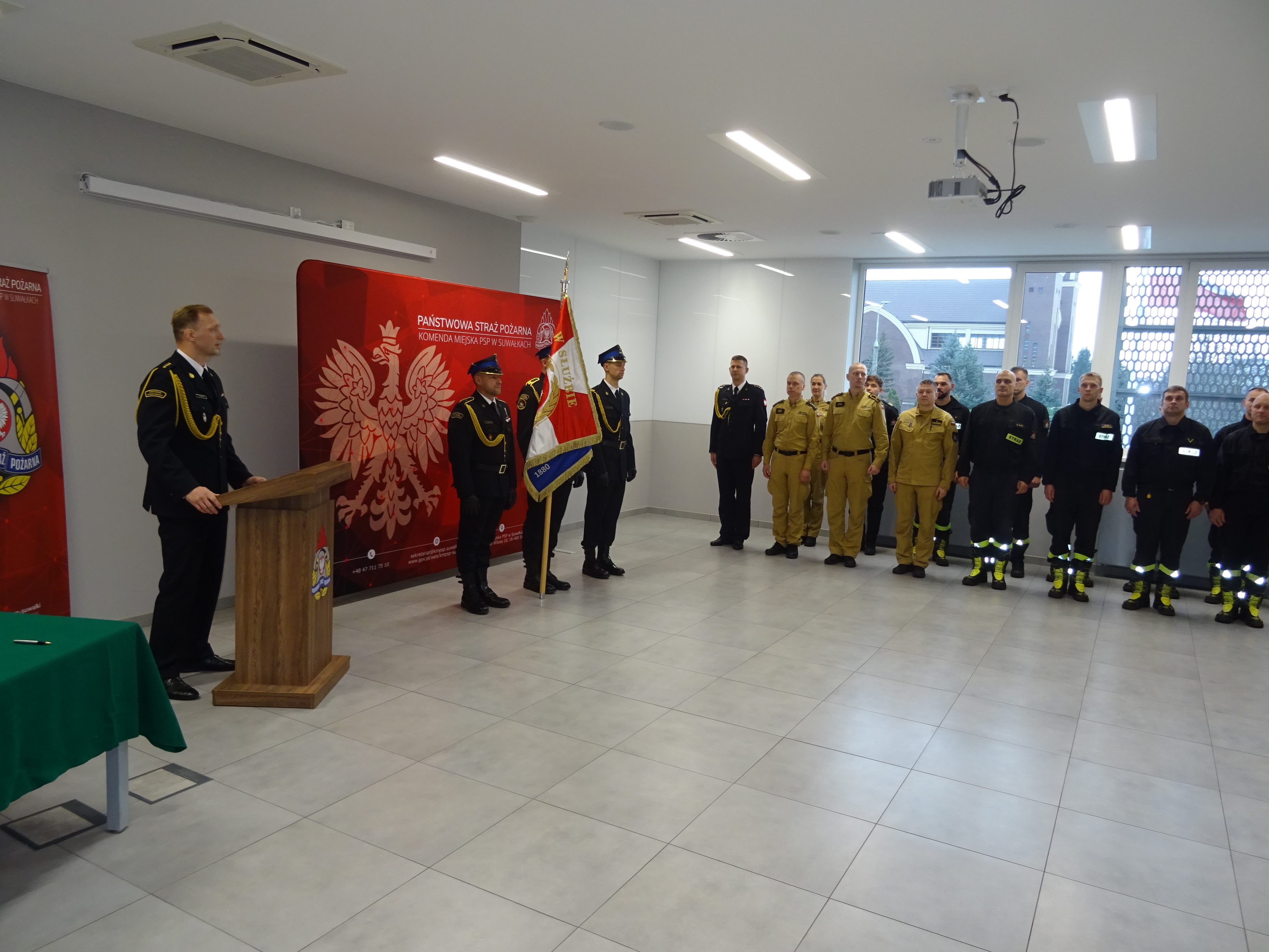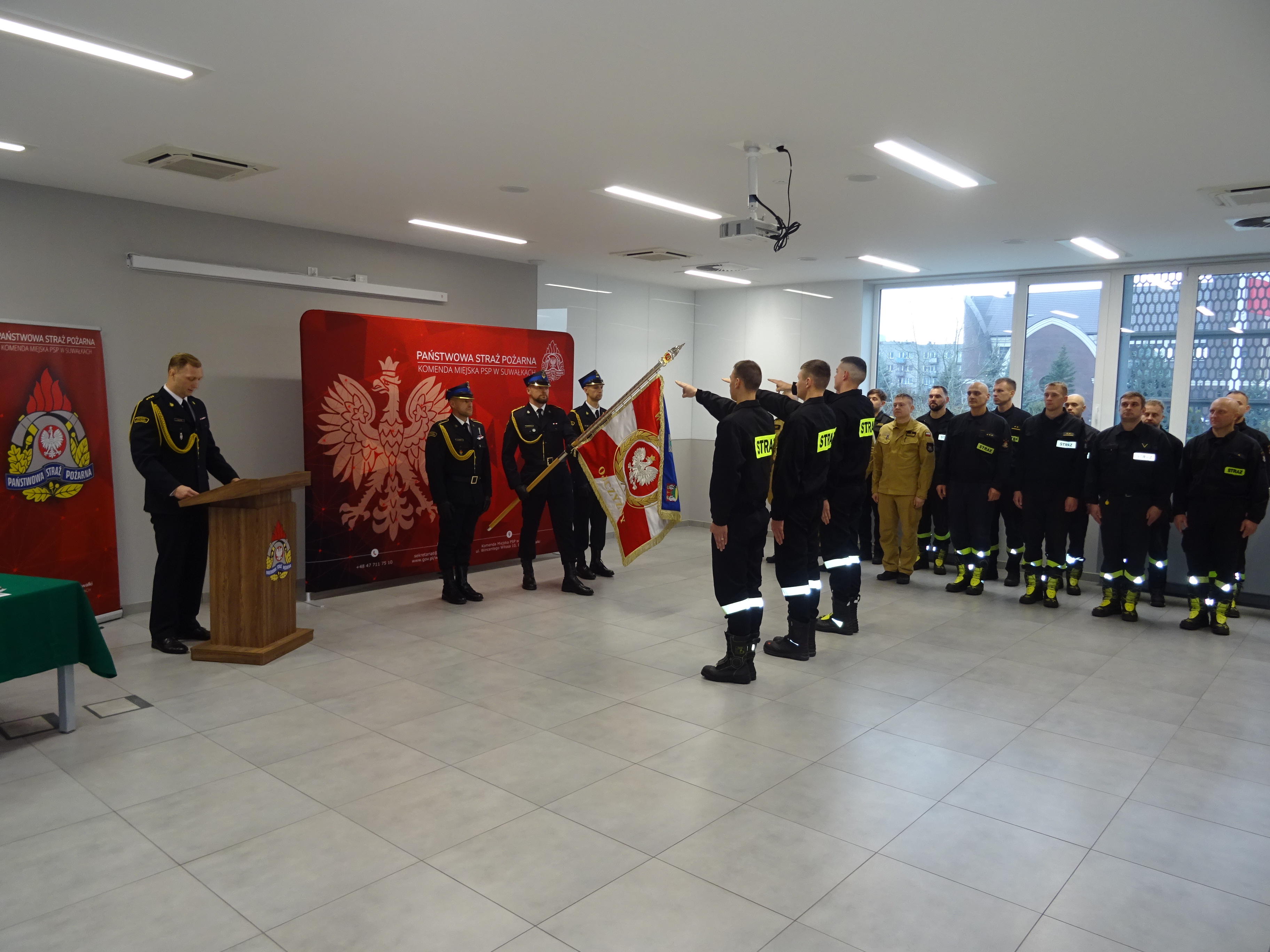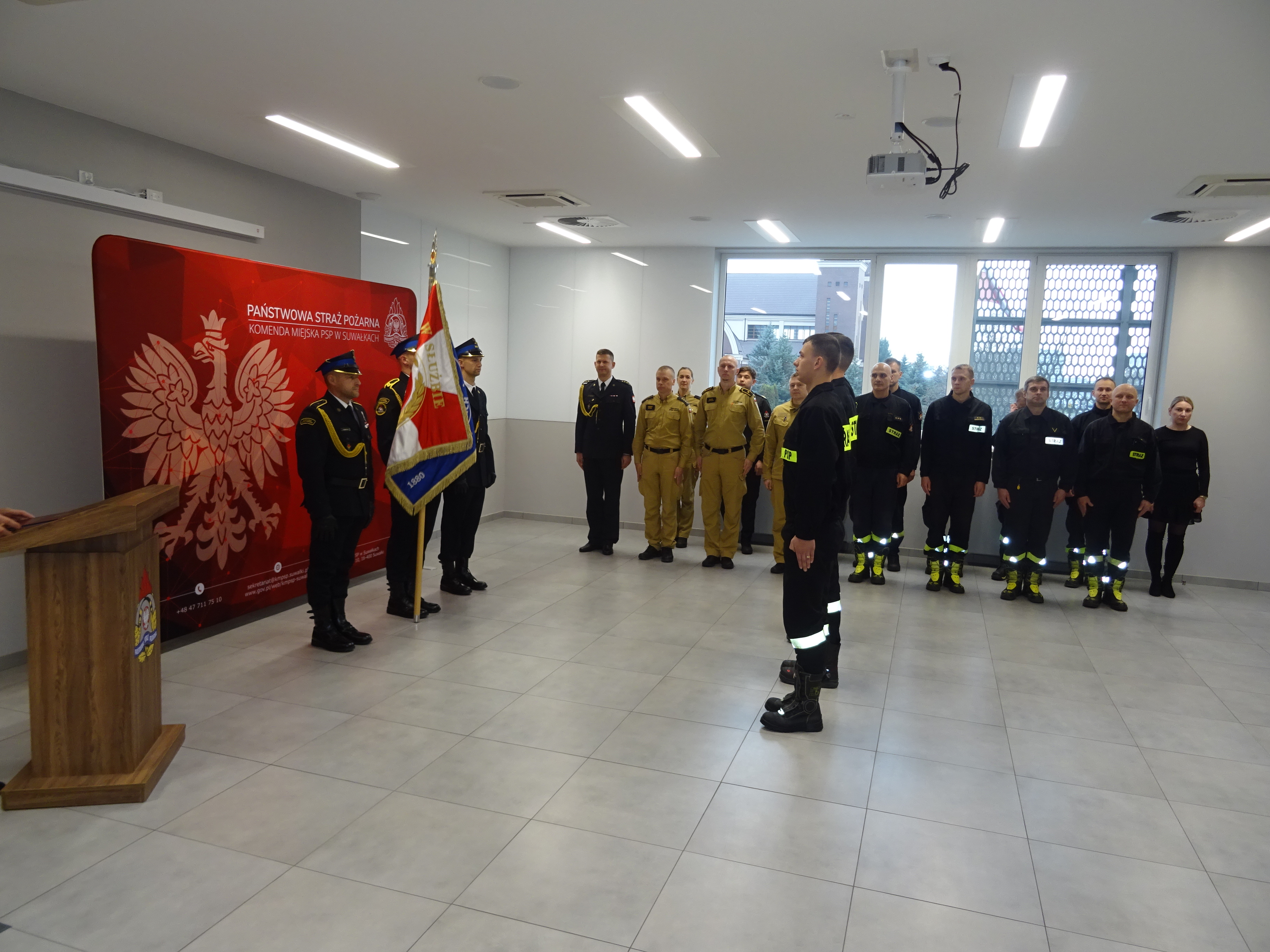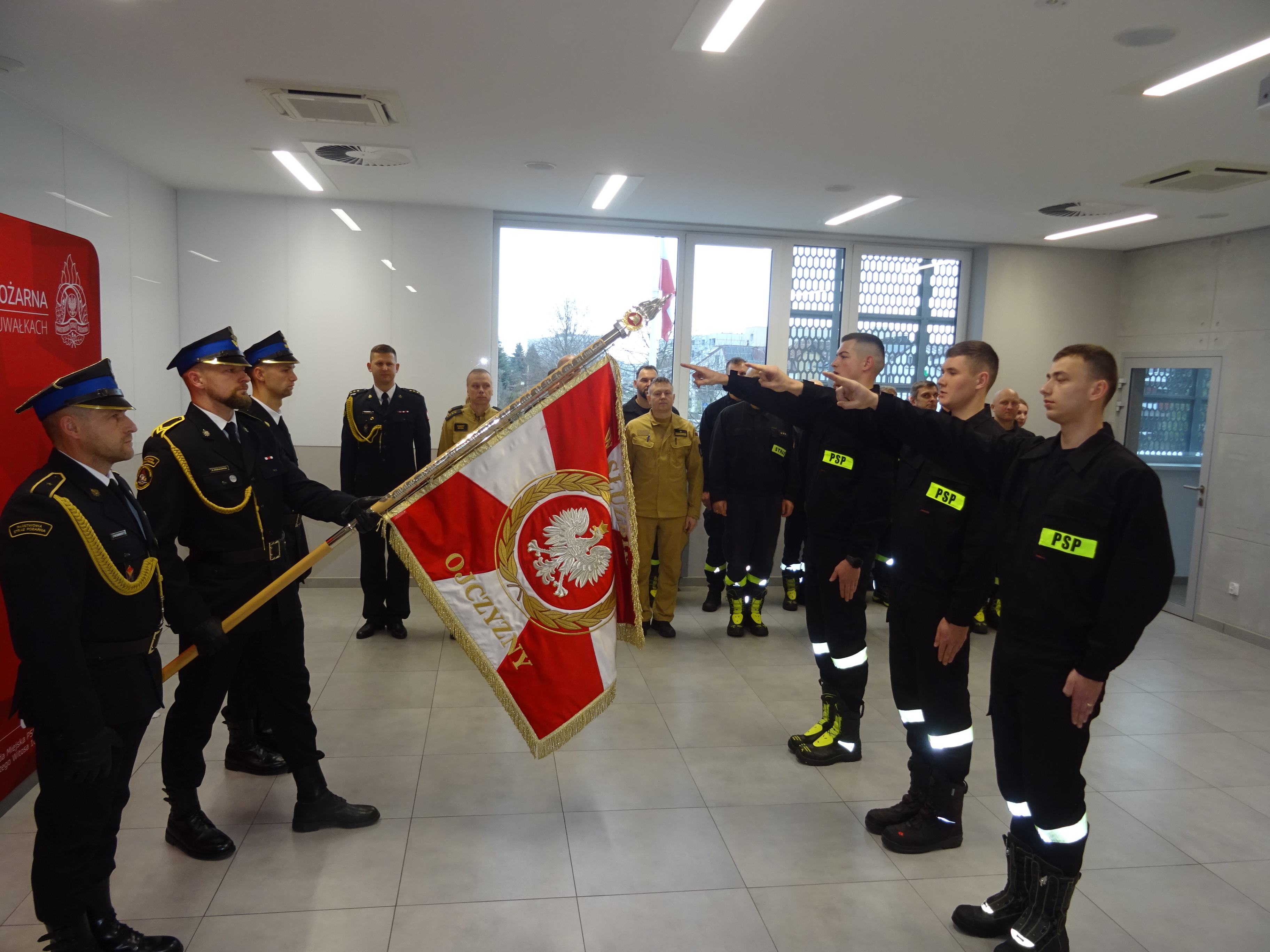 i wszelkiego mienia - nawet z narażeniem życia. Wykonując powierzone mi zadania, ślubuję przestrzegać prawa, dyscypliny służbowej oraz wykonywać polecenia przełożonych. Ślubuję strzec tajemnic związanych ze służbą, a także honoru, godności i dobrego imienia służby oraz przestrzegać zasad etyki zawodowej" - te słowo roty ślubowania, nowoprzyjęci do służby strażacy z dumą złożyli na Sztandar Komendy Miejskiej Państwowej Straży Pożarnej w Suwałkach.