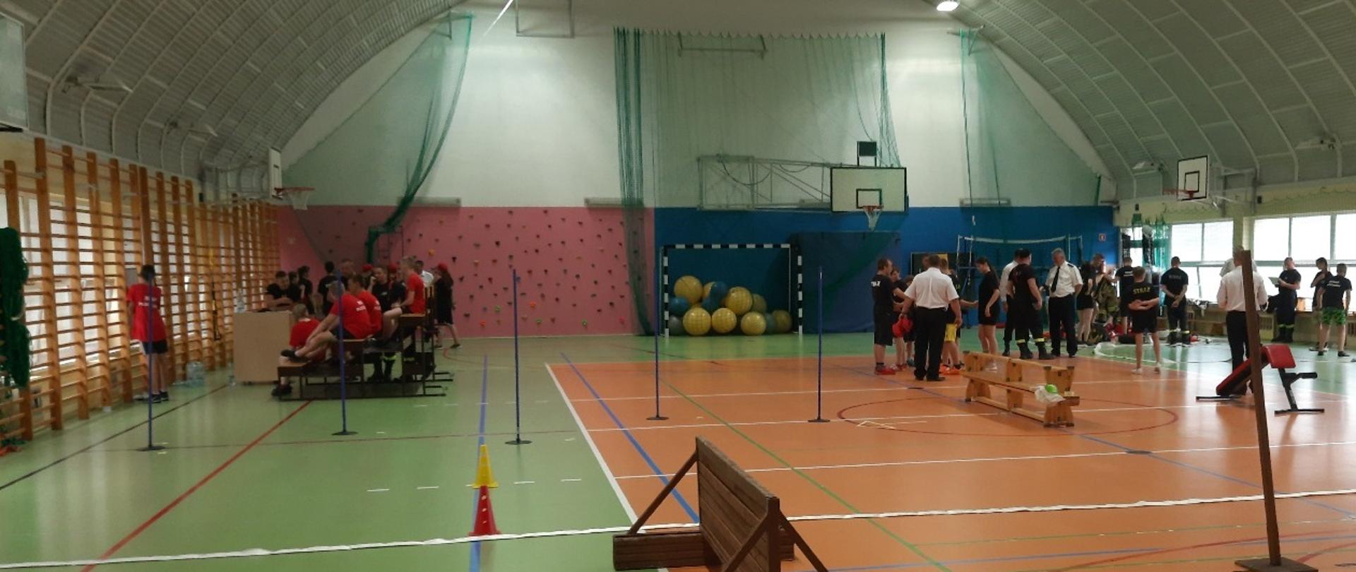 w których liczył się najkrótszy czas wykonania oraz ocena punktowa poszczególnych zadań. Zostały one nazwane: kalambury, sztafety - tor przeszkód, pudełko, ubieranie strażaka do pożaru, ewakuacja poszkodowanego na noszach – tor przeszkód, węzeł gordyjski. Tym razem ze względów pogodowych ćwiczenia odbyły się w hali sportowej miejscowej szkoły podstawowej.