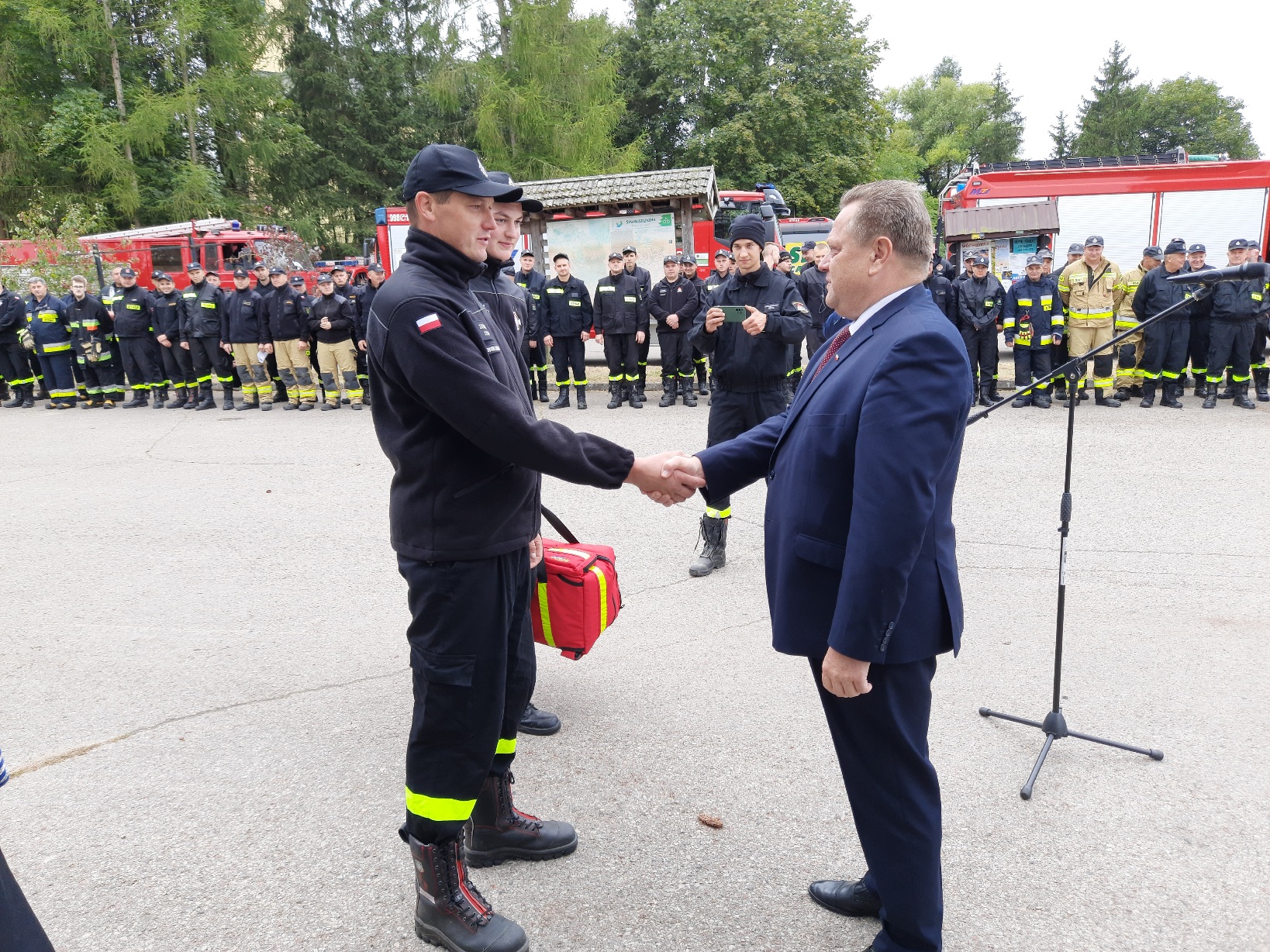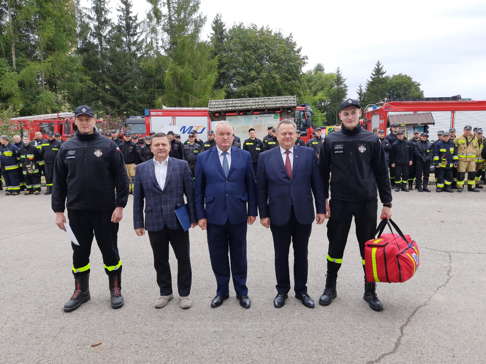 Ćwiczenia rozpoczęły się na placu w pobliżu Banku Spółdzielczego w Rutce – Tartak, gdzie omówiono założenia techniczno – organizacyjne manewrów. Następnie poseł na Sejm RP pan Jarosław Zieliński przekazał druhom z Ochotniczej Straży Pożarnej w Podwysokiem Jeleniewskiem, torbę z wyposażeniem medycznym do udzielania kwalifikowanej pierwszej pomocy osobom poszkodowanym podczas zdarzeń, w których występuje zagrożenie życia