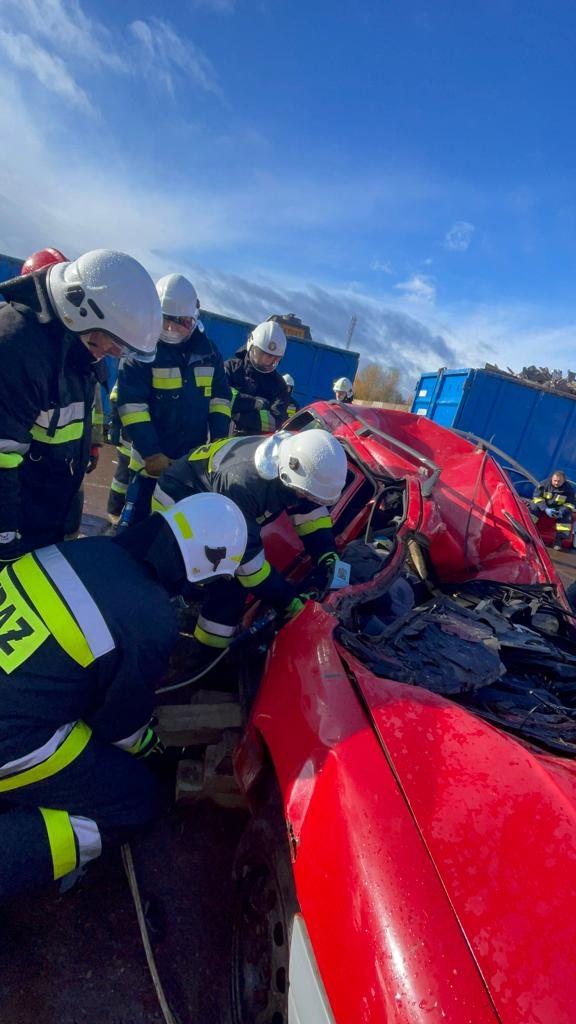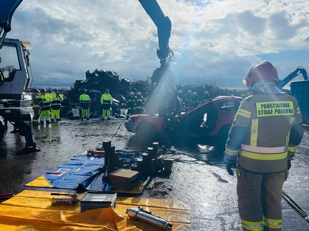 Od 18.09.2021 r. trwa Szkolenie Podstawowe strażaków ratowników OSP realizowane weekendami. W sobotę dnia 23.10.2021 r. dzięki uprzejmości firmy Stena Recycling mieliśmy możliwość zrealizowania zajęć praktycznych z ratownictwa drogowego dot. metod uwalniania osób poszkodowanych z samochodów osobowych. Na zajęciach druhowie uczyli się rozginać i przecinać konstrukcje samochodów osobowych. Pracownicy firmy Stena dodatkowo pozorowali realne warunki wypadku zgniatając manekina w środku pojazdu, którego kursanci wydobywali na zewnątrz. Jeszcze raz serdecznie dziękujemy kierownictwu firmy za możliwość przeprowadzenia zajęć.