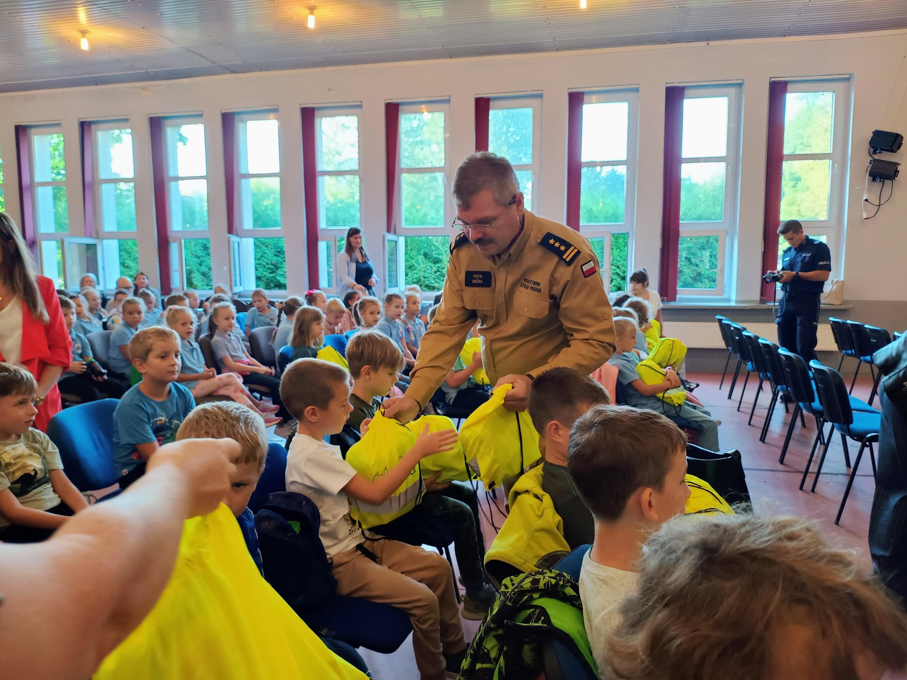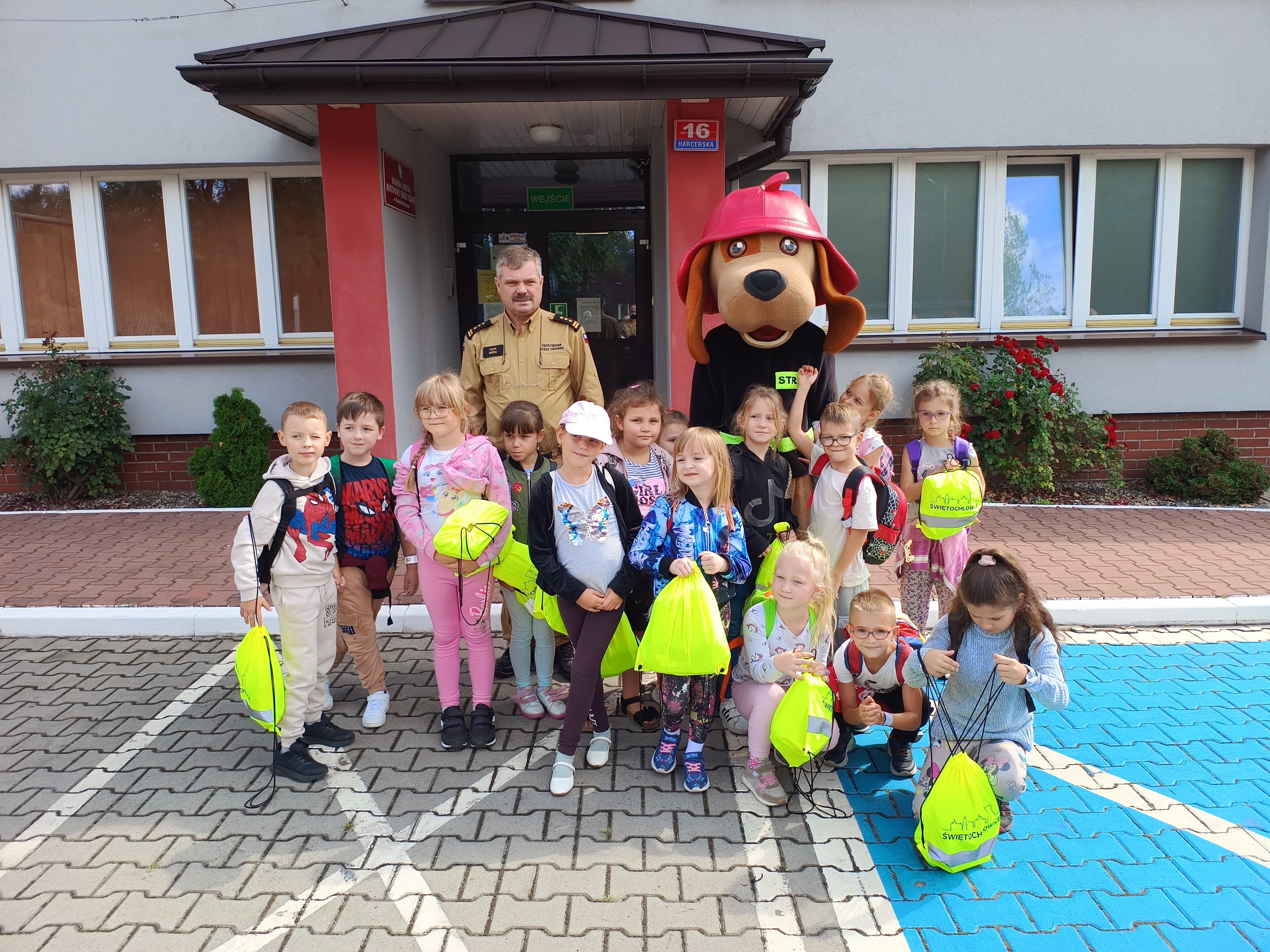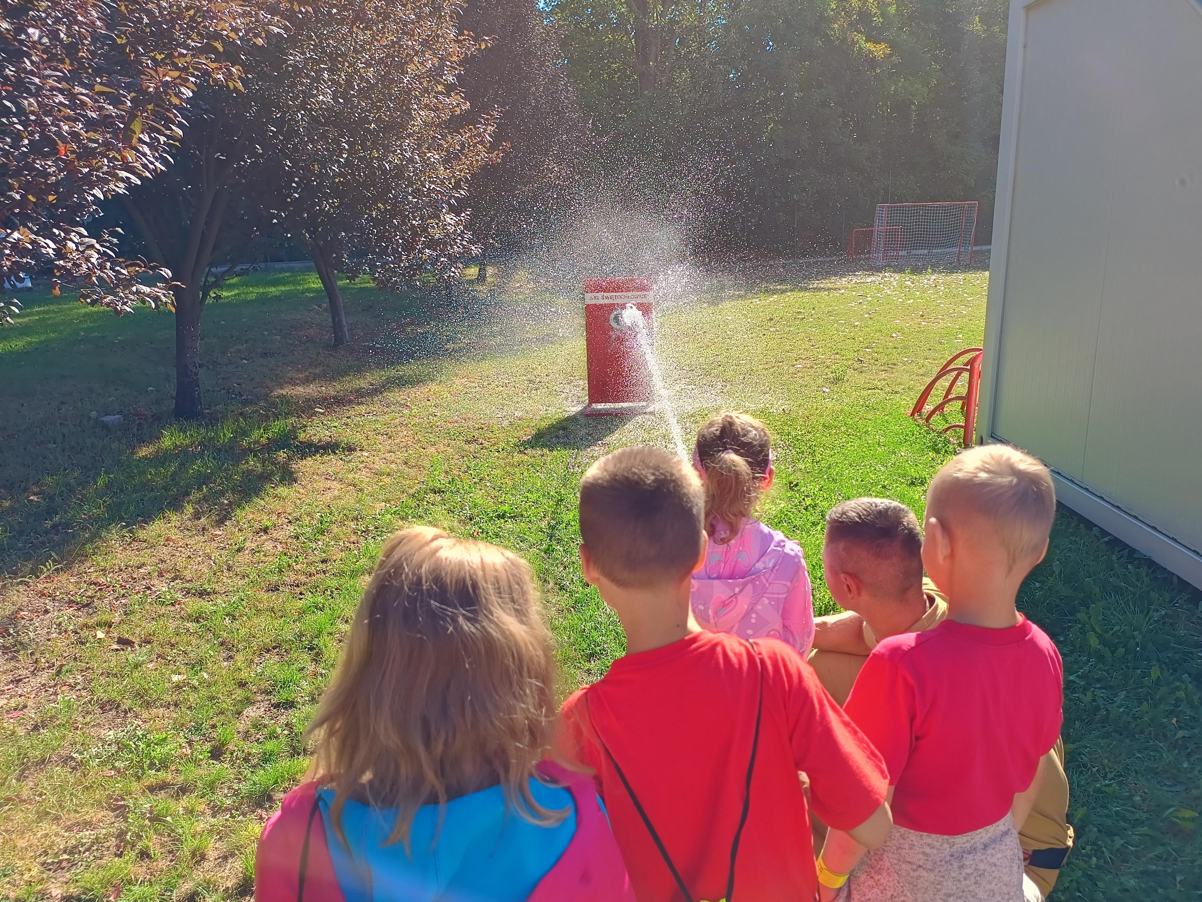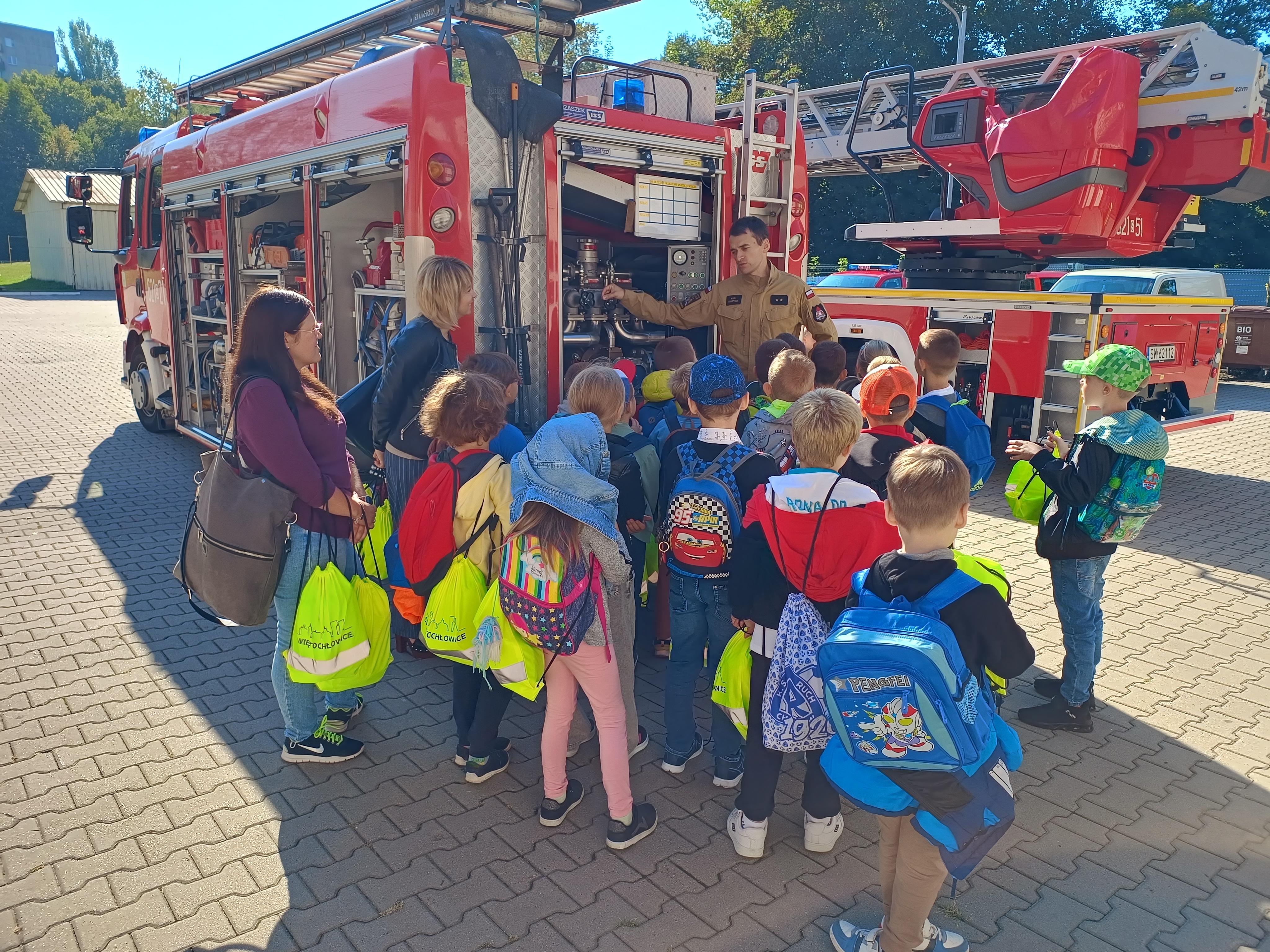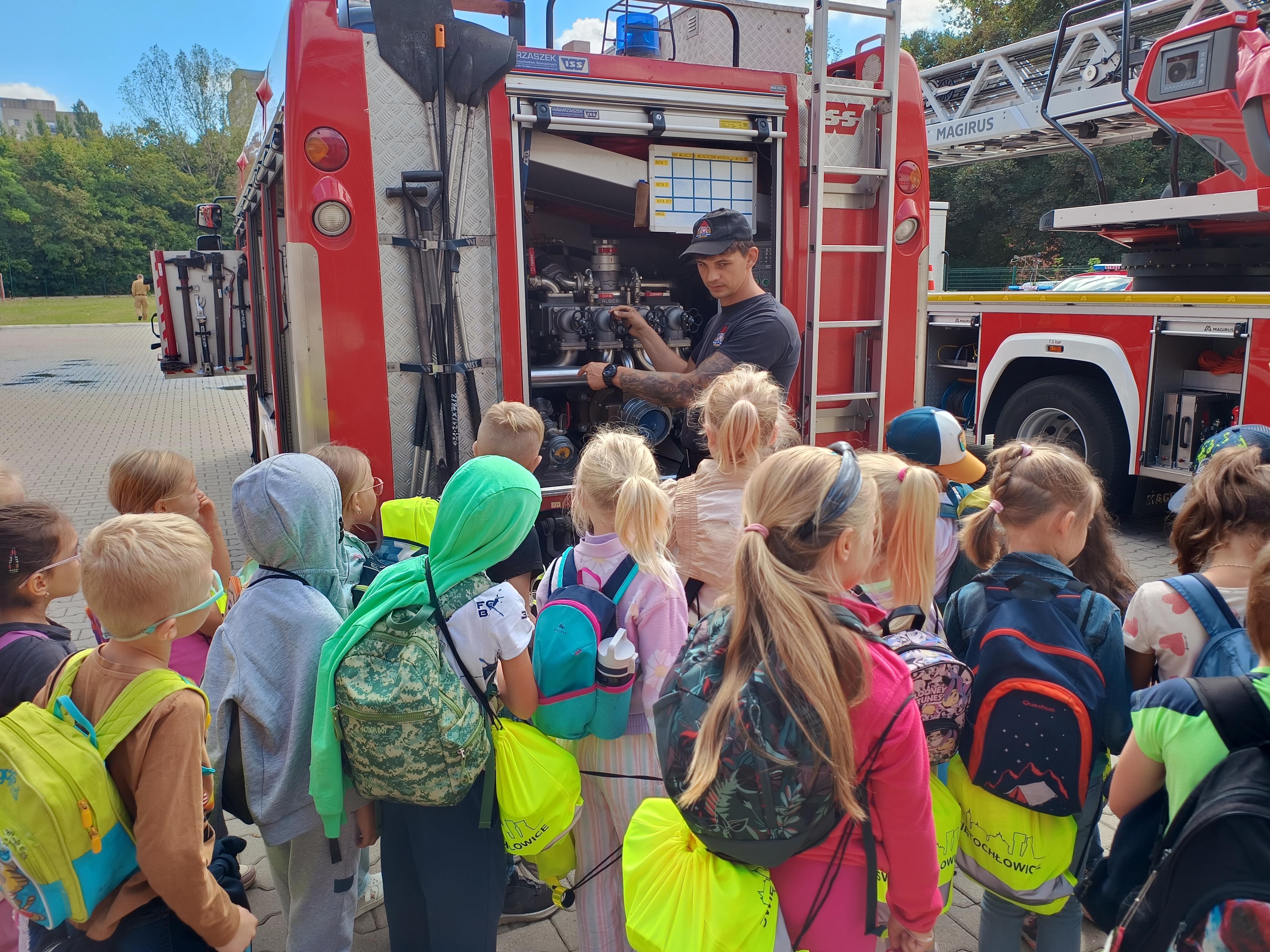 Na innych stanowiskach edukacyjnych dzieci miały okazję zapoznać się z pracą strażaków i sprzętem znajdującym się na wyposażeniu Jednostki Ratowniczo-Gaśniczej. W trakcie wizyty strażacy przekazywali dzieciom informacje dotyczące bezpiecznego poruszania się do szkoły i bezpiecznego powrotu do domu. Zwrócono szczególną uwagę na niebezpieczeństwa podczas przechodzenia przez przejścia dla pieszych i omówiono w jaki sposób tych niebezpieczeństw uniknąć. Najmłodsi mieli również okazję dowiedzieć się, jakie najważniejsze informacje należy przekazać dzwoniąc pod numer 112, gdy zauważą niebezpieczne zdarzenie. Przygotowano również zadanie dla dzieci, podczas którego musiały operować strumieniem wody z prądownicy do celu.