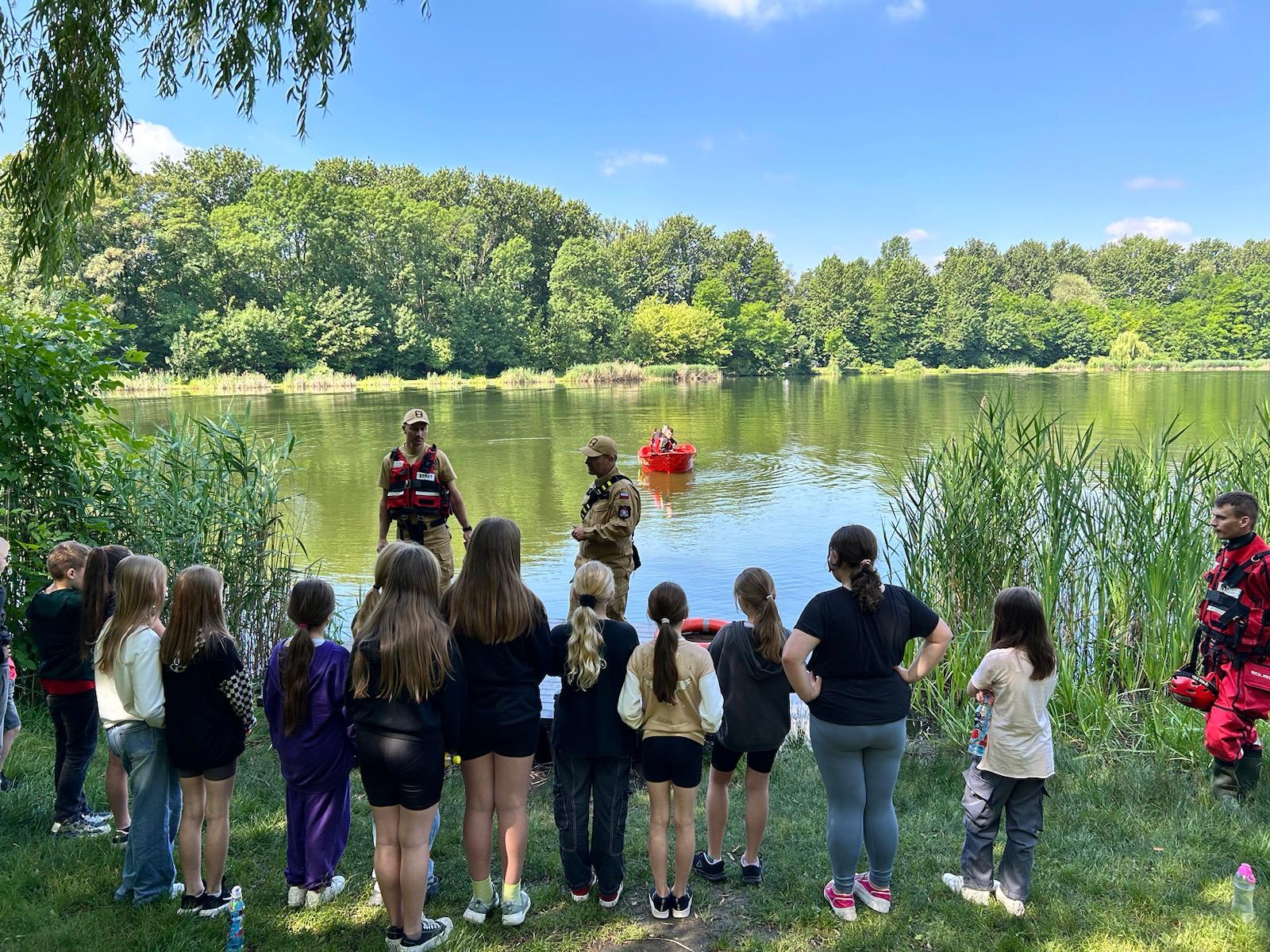 Podczas prelekcji poruszono szereg zagadnień. Strażacy zwracali szczególną uwagę na kwestie bezpiecznego wypoczynku nad wodą. Omawiano sprzęt do ratownictwa wodnego znajdujący się na wyposażeniu tutejszej Jednostki Ratowniczo-Gaśniczej, przypomniano zasady postępowania w przypadku zauważenia osoby tonącej, omówiono również w jaki sposób można wezwać potrzebną pomoc w sytuacji zagrożenia. Uczniowie mieli również możliwość przećwiczyć rzut rzutką ratowniczą. Ponadto, omówiono i przećwiczono z młodzieżą udzielanie pierwszej pomocy.
