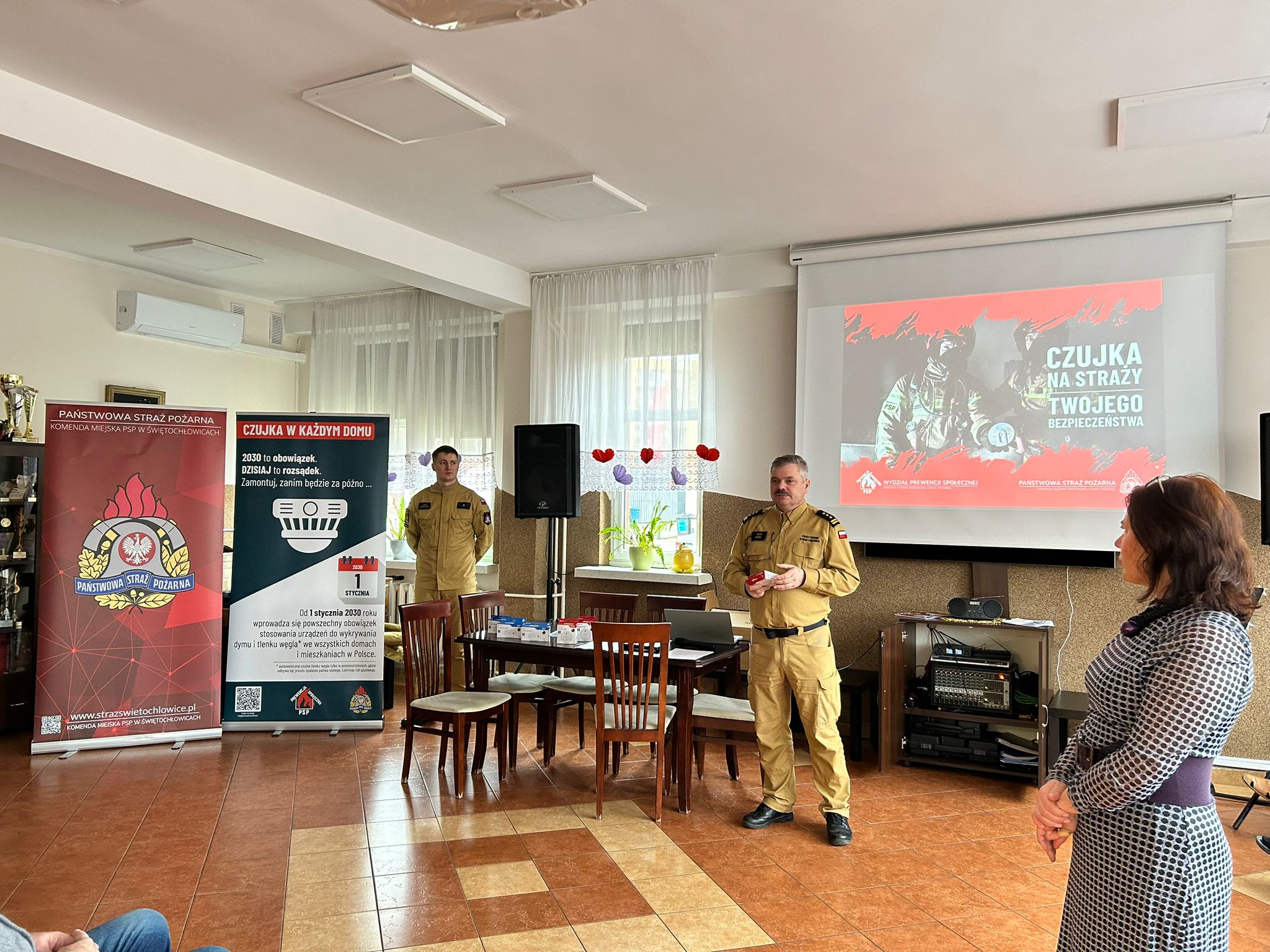 Podczas prelekcji Komendant Miejski PSP w Świętochłowicach – st. bryg. mgr inż. Piotr Skóra – przedstawił zasady działania oraz prawidłowego montażu czujek tlenku węgla i czujek dymu, a także omówił najczęściej występujące zagrożenia w okresie sezonu grzewczego.