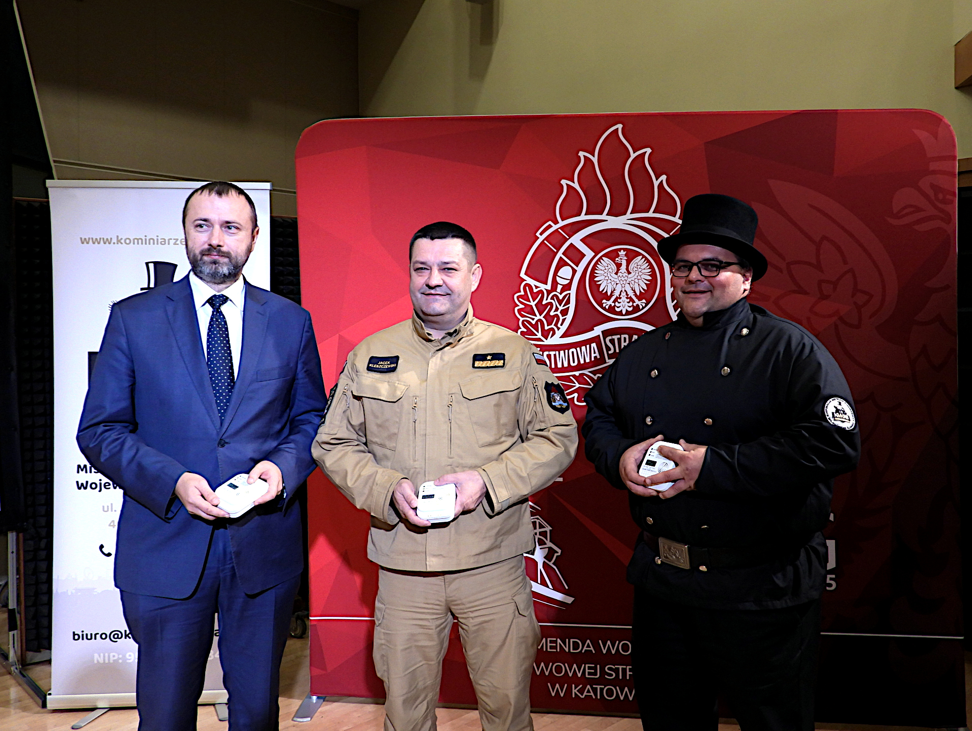 W Konferencji udział wzięli: Śląski Komendant Wojewódzki PSP nadbryg. Jacek Kleszczewski wraz Zastępcą st. bryg. Rafałem Świerczkiem, Pan Tomasz Bednarek – Prezes Wojewódzkiego Funduszu Ochronny Środowiska i Gospodarki Wodnej w Katowicach, komendanci powiatowi i miejscy PSP wraz z koordynatorami prewencji społecznej z terenu województwa śląskiego, Pan Rafał Dydak – Prezes Zarządu Korporacji Mistrzów Kominiarskich Województwa Śląskiego i kominiarze zrzeszeni w Korporacji Mistrzów Kominiarskich Województwa Śląskiego oraz przedstawiciele mediów.