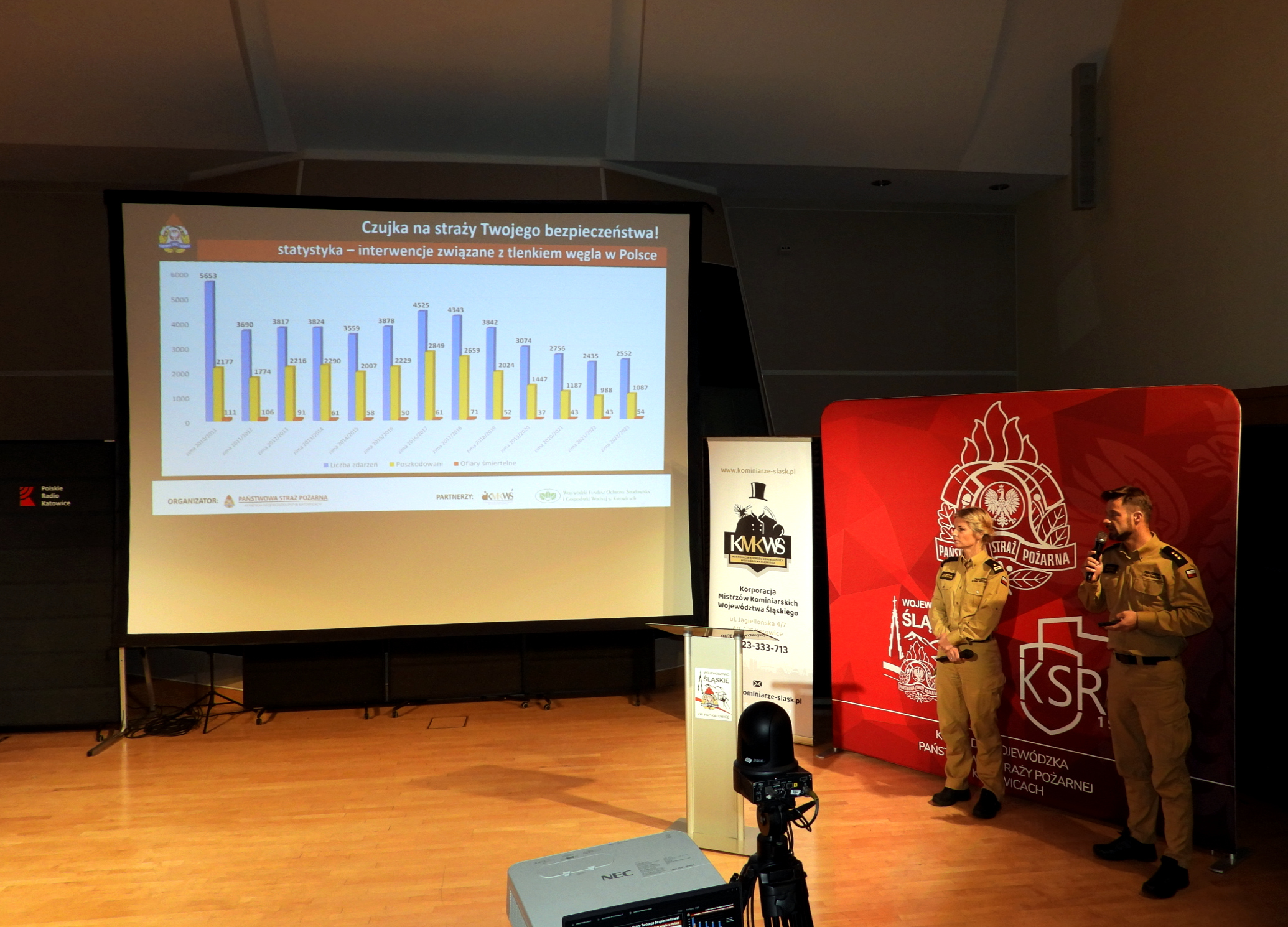 Konferencja podzielona była na dwa bloki. W pierwszym, prelekcje na temat zagrożeń jakie niesie tlenek węgla wygłosili funkcjonariusze PSP – mł. bryg. Patrycja Pokrzywa z KM PSP w Bielsku-Białej i kpt. Wojciech Poloczek z KP PSP w Tarnowskich Górach oraz Mistrz Kominiarski Pan Łukasz Malcharczyk. Druga część konferencji poświęcona była kampanii społecznej „Nie igraj z losem”.