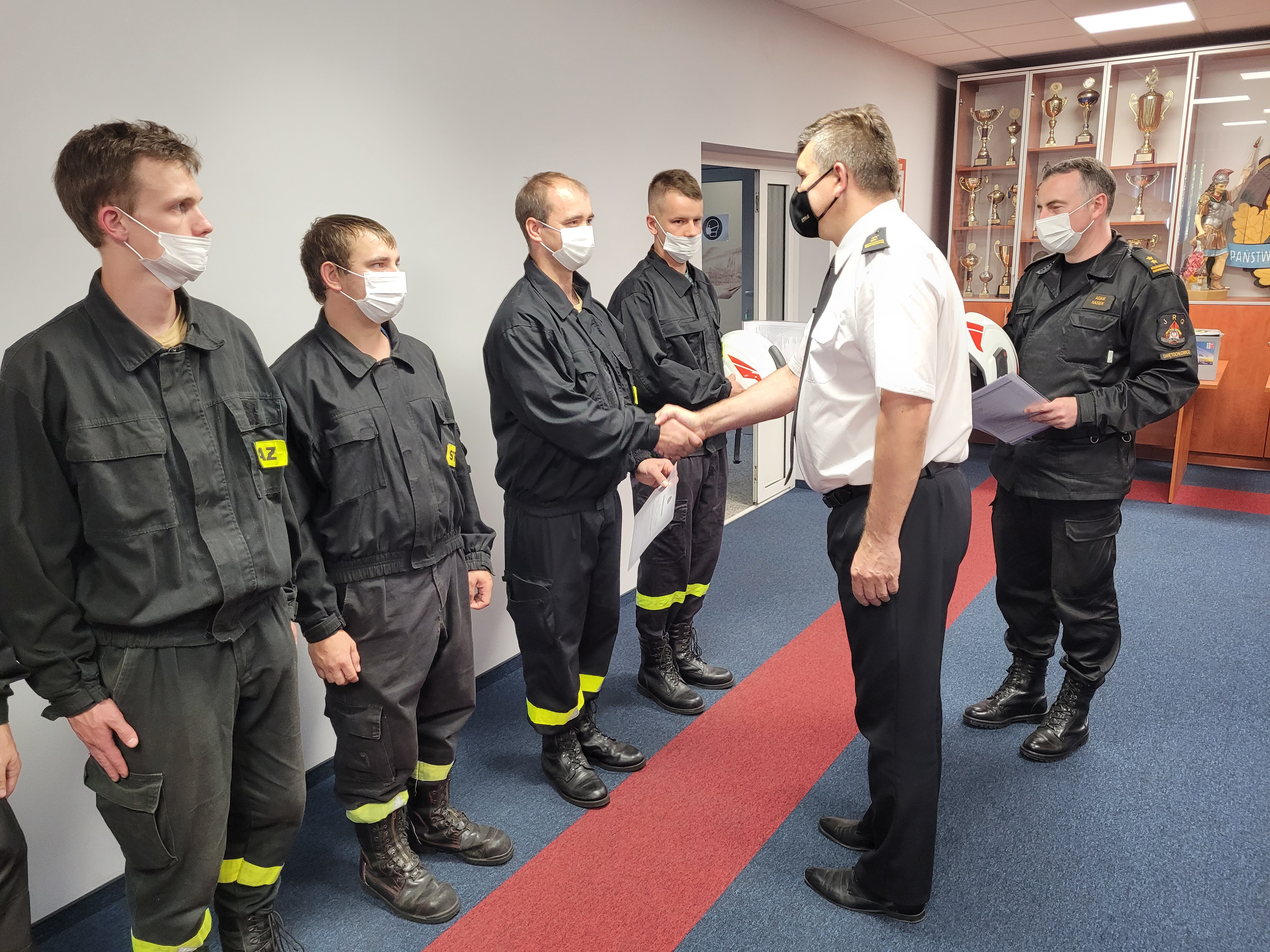 Po zdanym egzaminie odbyło się wręczenie zaświadczeń o ukończeniu szkolenia, którego dokonał Komendant Miejski Państwowej Straży Pożarnej w Świętochłowicach bryg. Arkadiusz Labocha.