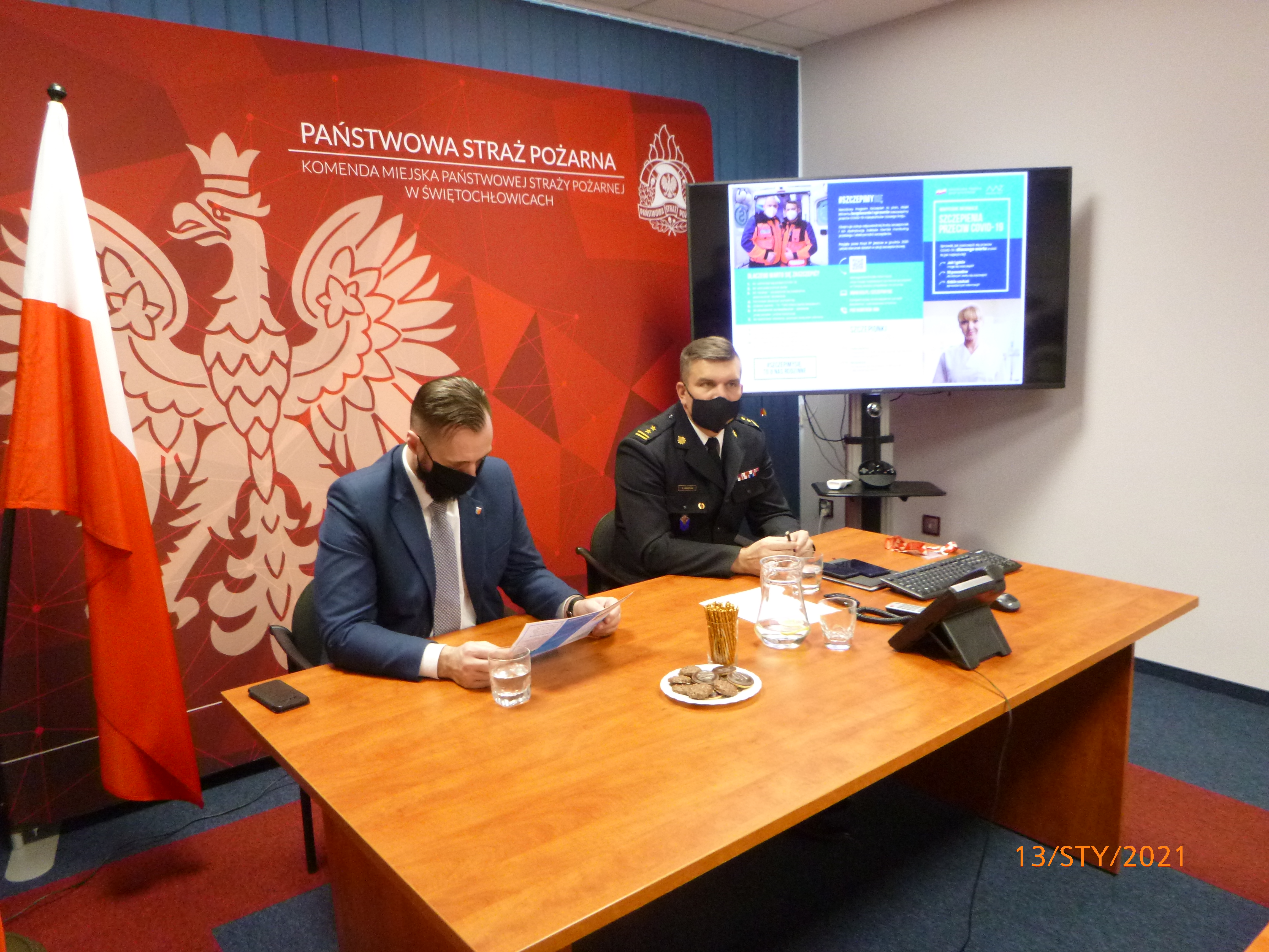 13 stycznia 2021 roku w tutejszej Komendzie odbyło się spotkanie kierownictwa Komendy Miejskiej Państwowej Straży Pożarnej w Świętochłowicach z Wiceprezydentem Świętochłowic oraz przedstawicielami służb i instytucji z terenu miasta mające na celu omówienie bieżącej sytuacji dotyczącej przygotowania podmiotów do przeprowadzenia szczepień seniorów oraz wypracowanie schematu postępowania w przypadku zaistnienia konieczności transportu osób z miejsca zamieszkania do wyznaczonych punktów szczepień.