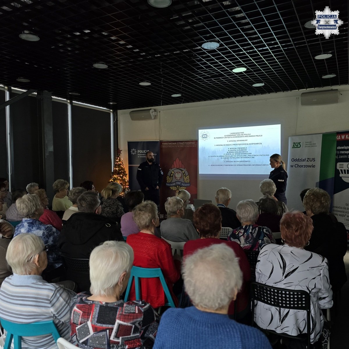 W tym zakresie wystąpiła również przedstawicielka Zakładu Ubezpieczeń Społecznych w Chorzowie - Pani Barbara Muc , która omówiła temat „Sprawdź zanim uwierzysz – czyli jak nie dać się oszustom”.