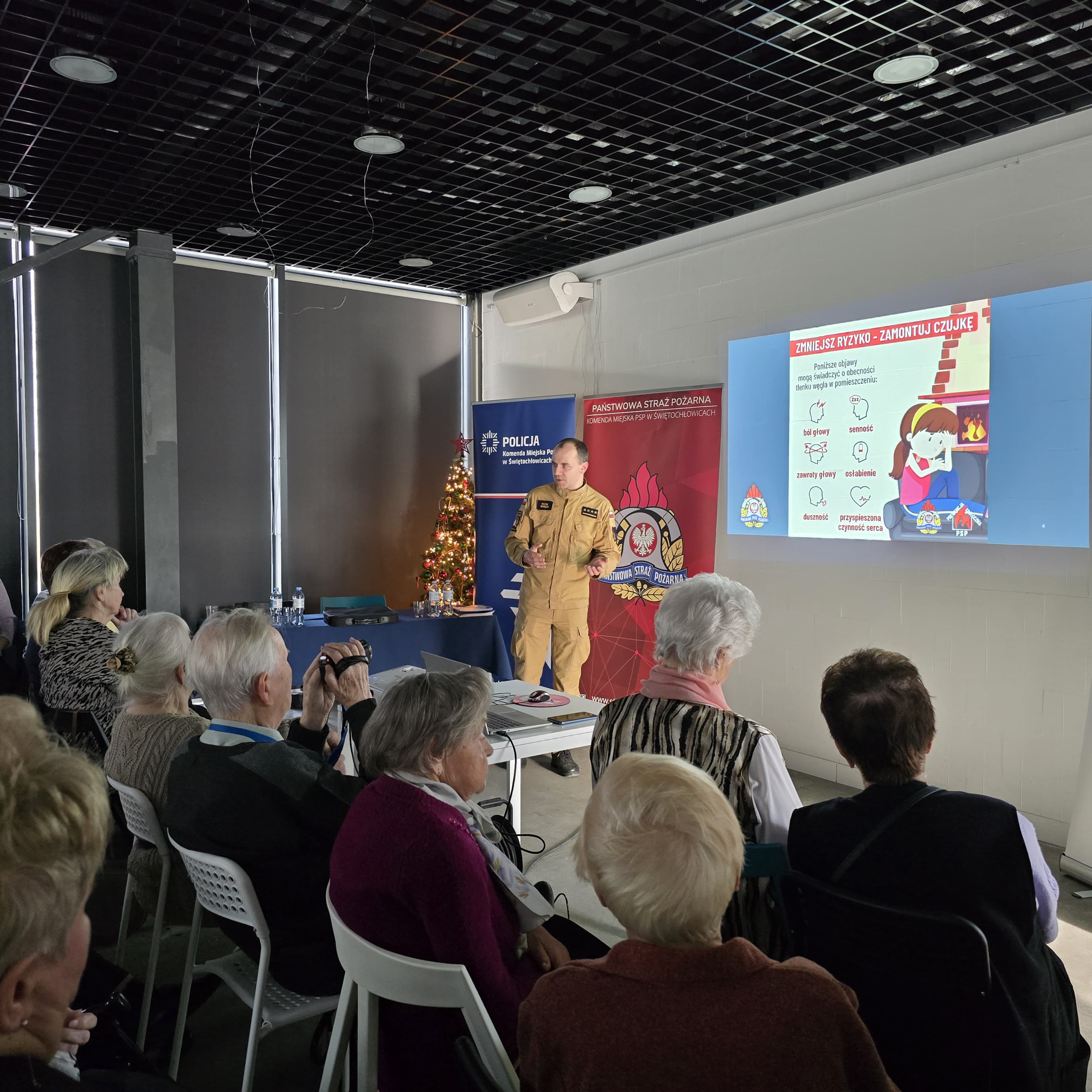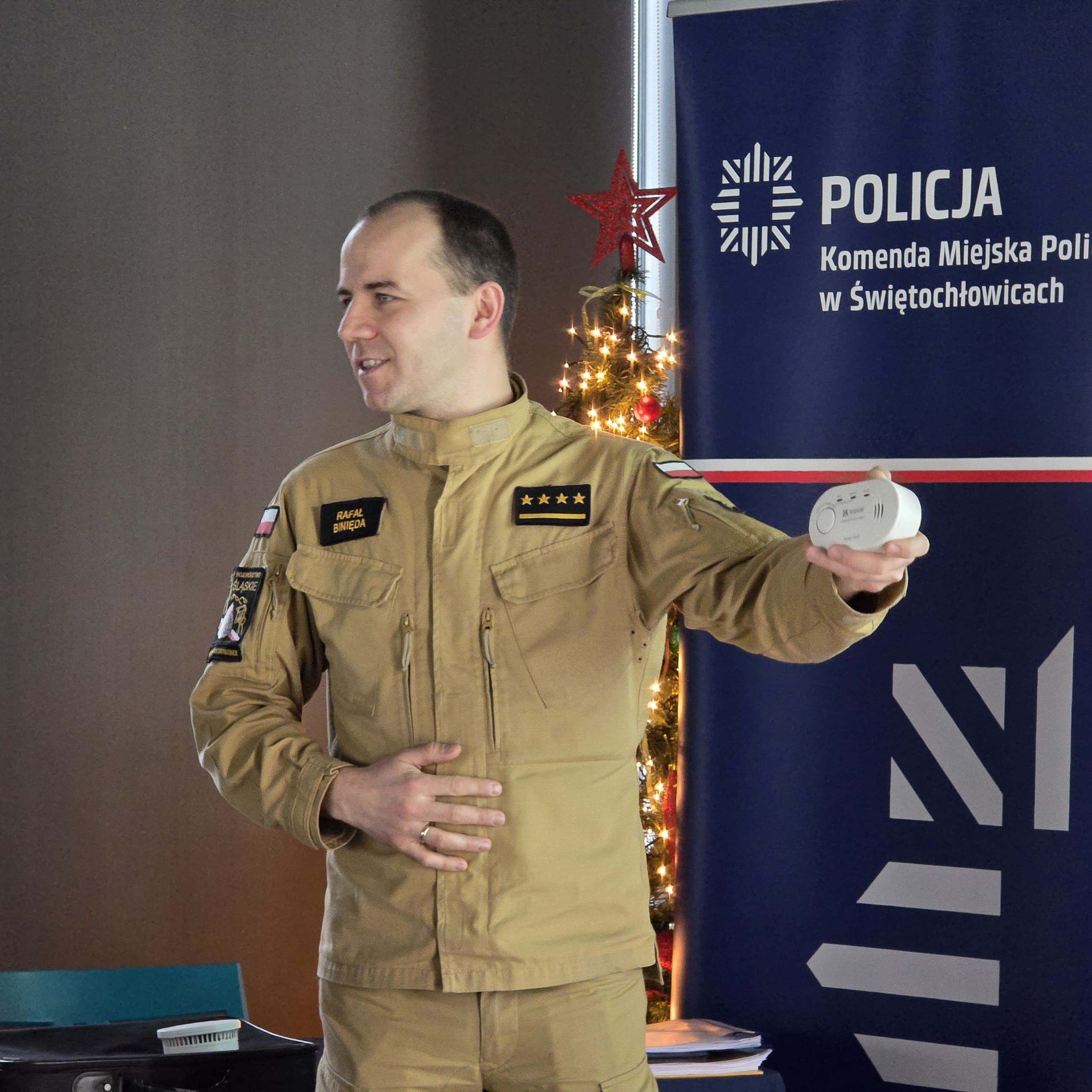 Następnie funkcjonariusz Komendy Miejskiej Państwowej Straży Pożarnej w Świętochłowicach, starszy kapitan Rafał Binięda, w ramach kampanii „Czujka na straży Twojego bezpieczeństwa!”, zwracał uwagę na zagrożenia związane z zagrożeniami pożarowymi oraz zatruciem tlenkiem węgla, których ryzyko wystąpienia wzrasta wraz z rozpoczęciem sezonu grzewczego.