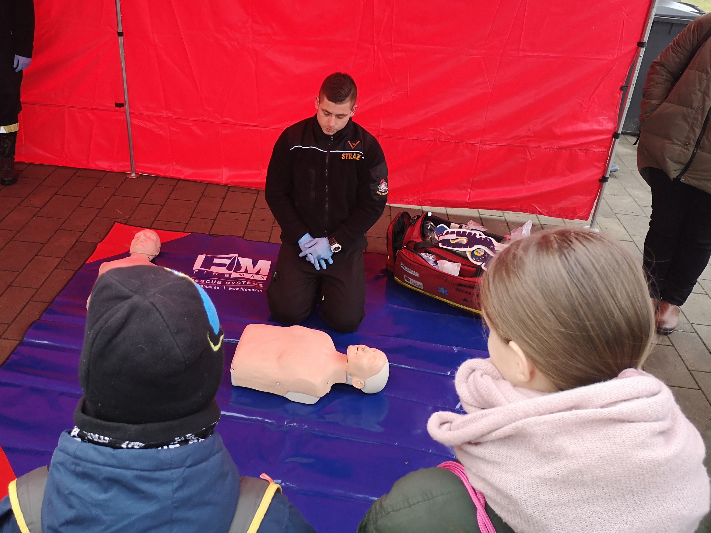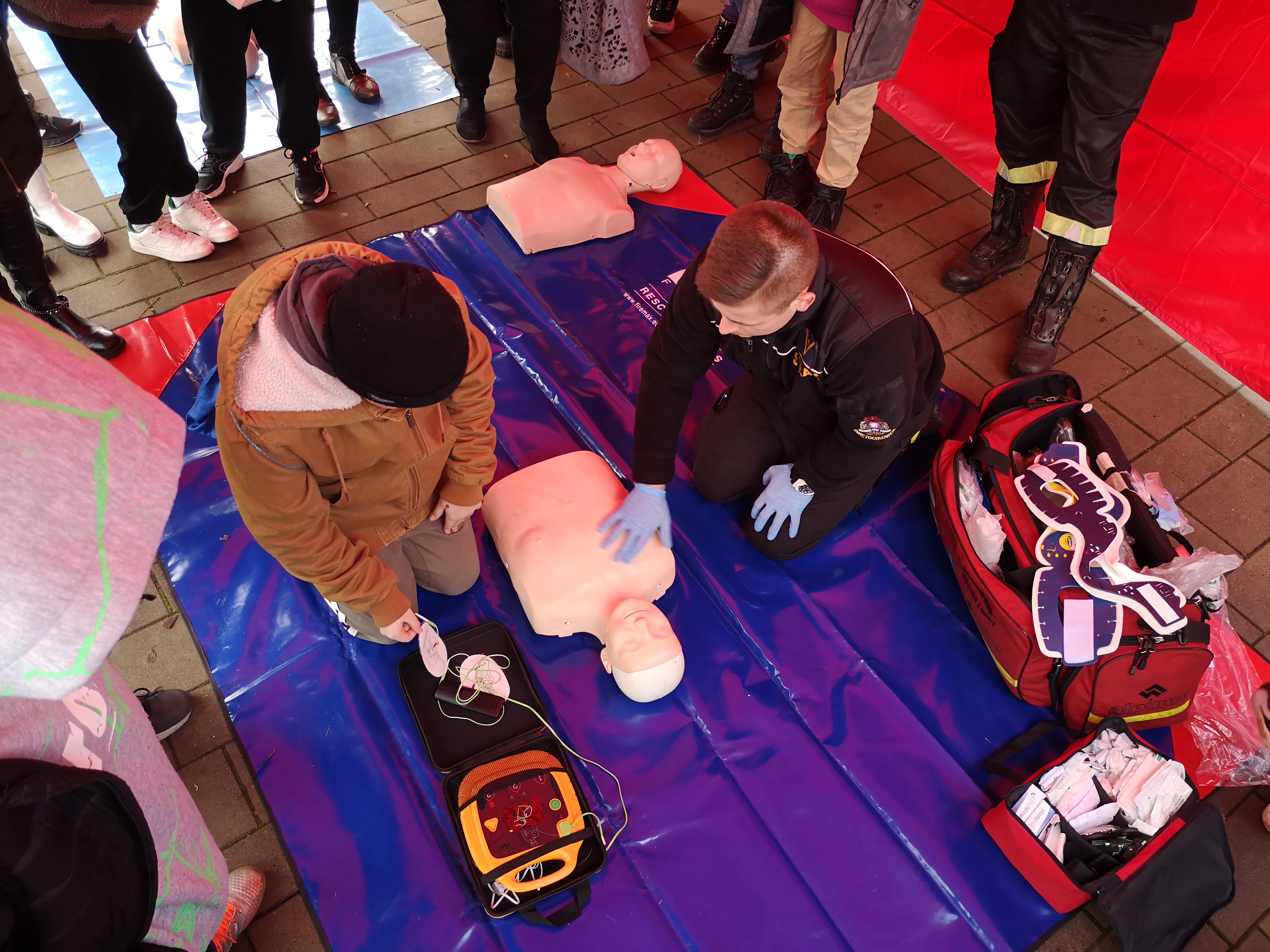 Podczas wydarzenia strażacy przygotowali stanowisko do nauki udzielania pierwszej pomocy, gdzie młodzież mogła otrzymać cenne wskazówki, a także wykonać praktyczne ćwiczenia na fantomach z zakresu prowadzenia resuscytacji krążeniowo-oddechowej, w tym z wykorzystaniem ćwiczebnego defibrylatora AED.