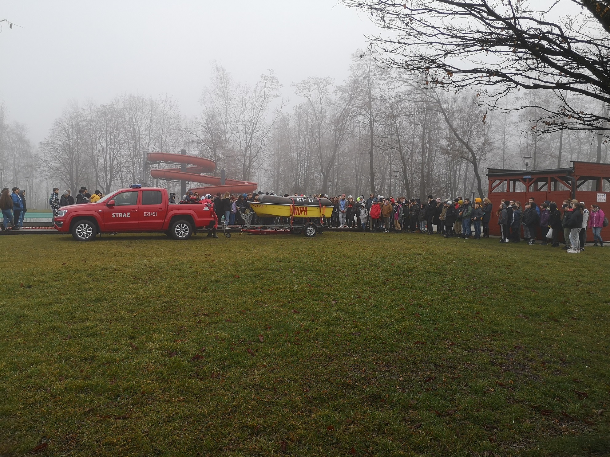 Ponadto, omawiano sprzęt do ratownictwa wodnego i ratownictwa lodowego znajdujący się na wyposażeniu tutejszej Jednostki Ratowniczo-Gaśniczej, przekazano uczniom jak należy postępować w przypadku zauważenia osoby tonącej lub osoby pod którą załamie się lód, omówiono również w jaki sposób można wezwać potrzebną pomoc w sytuacji zagrożenia.