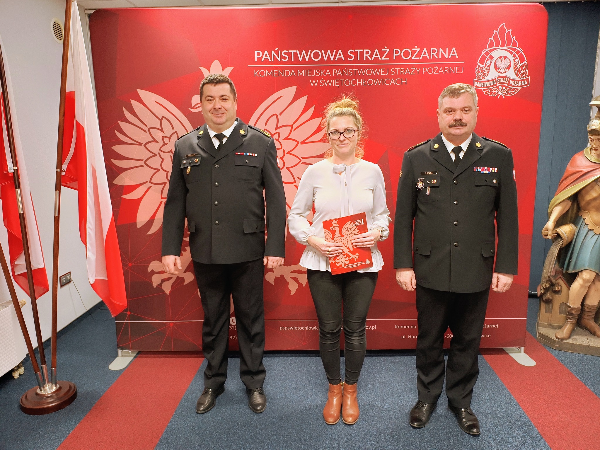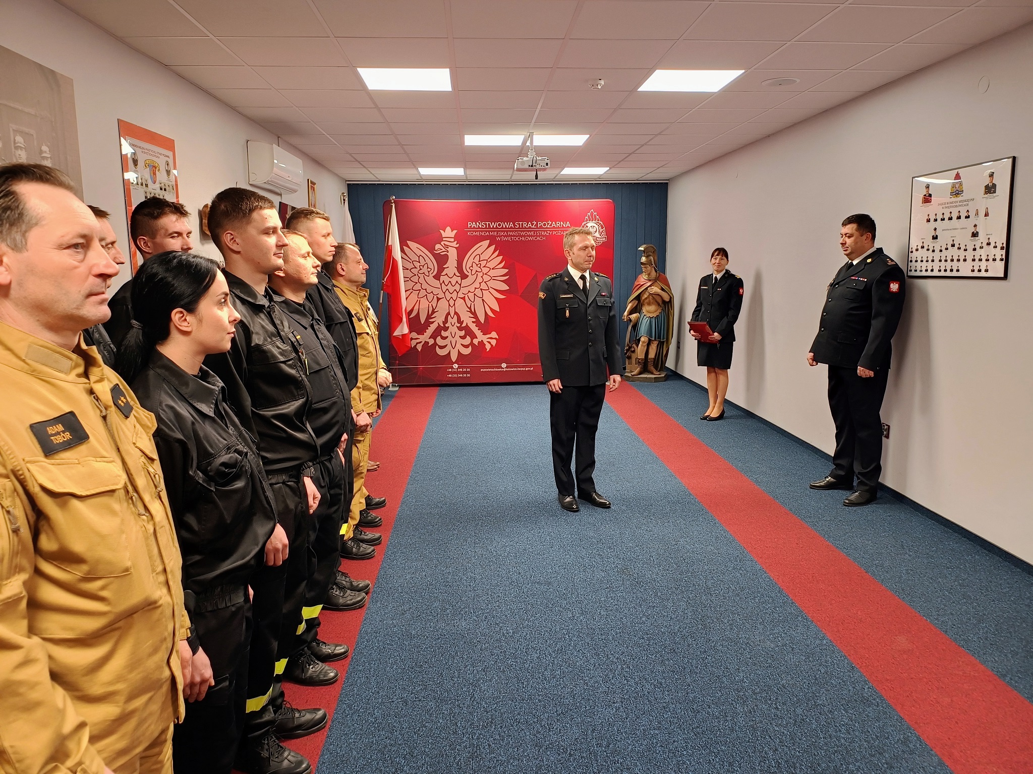 Uroczystość rozpoczęła się od złożenia meldunku Komendantowi Miejskiemu Państwowej Straży Pożarnej st.bryg. Piotrowi Skórze. Następnie komendant miejski wraz ze swoim zastęcą wręczyli pracownikowi służby cywilnej list gratulacyjny oraz nagrodę finansową i podziękowali za codzienne zaangażowanie w wypełnianiu obowiązków.