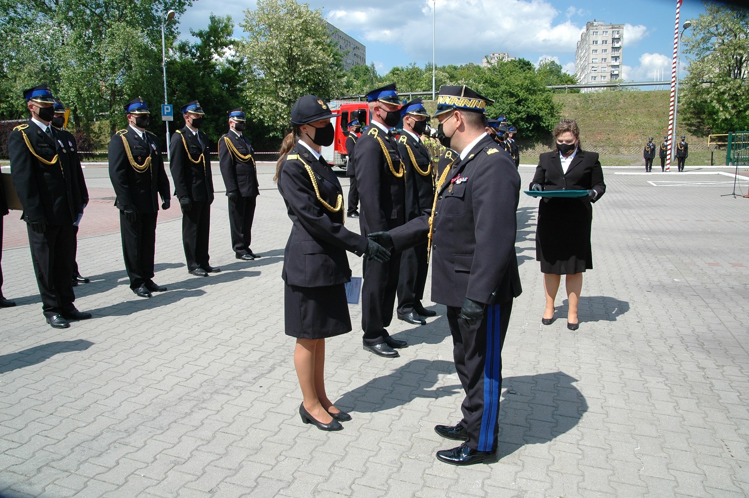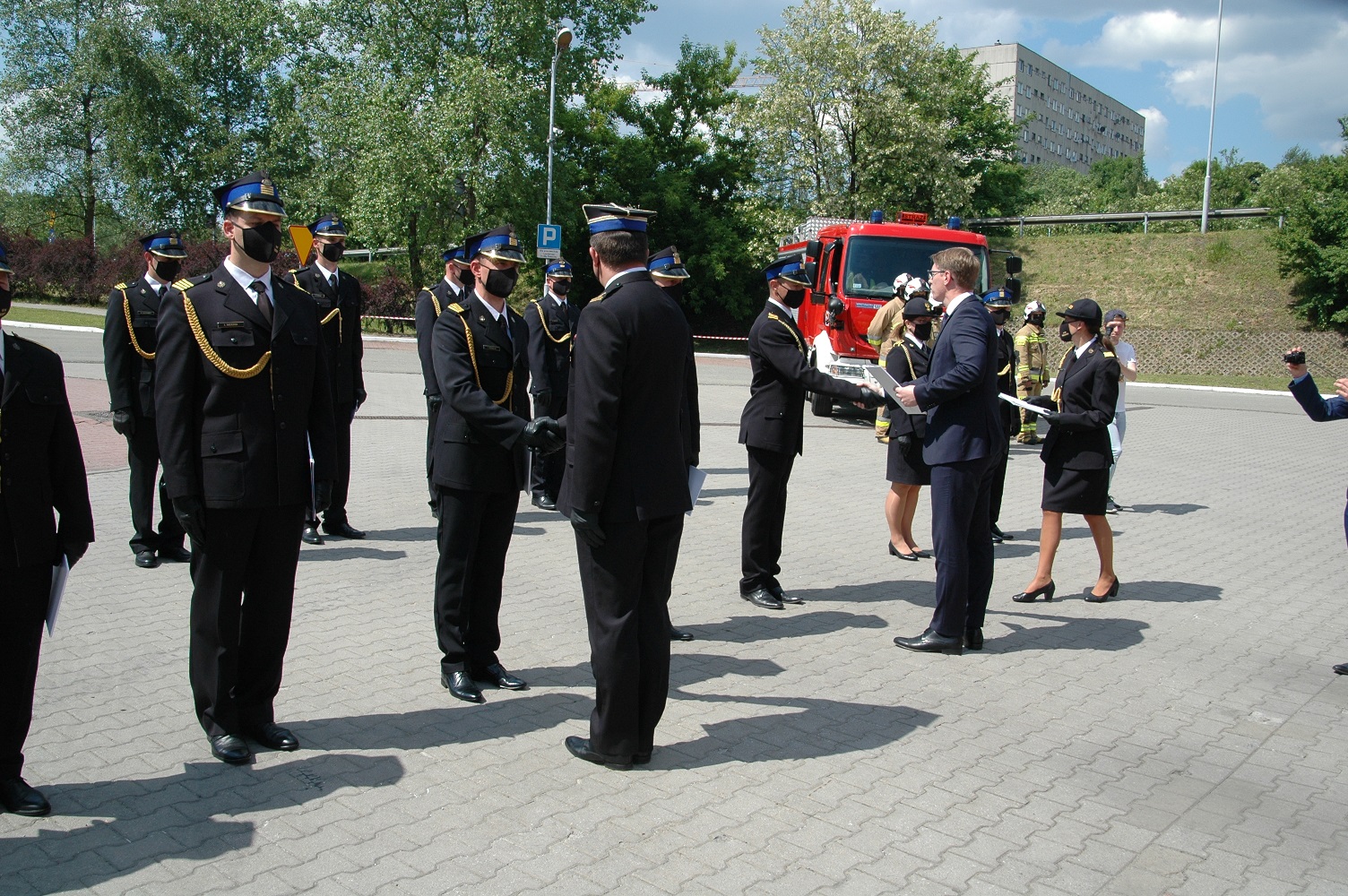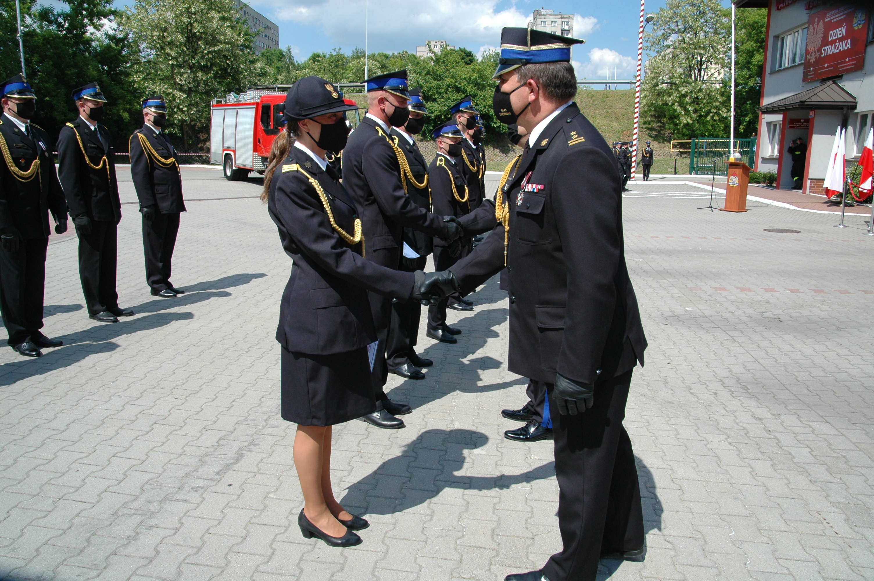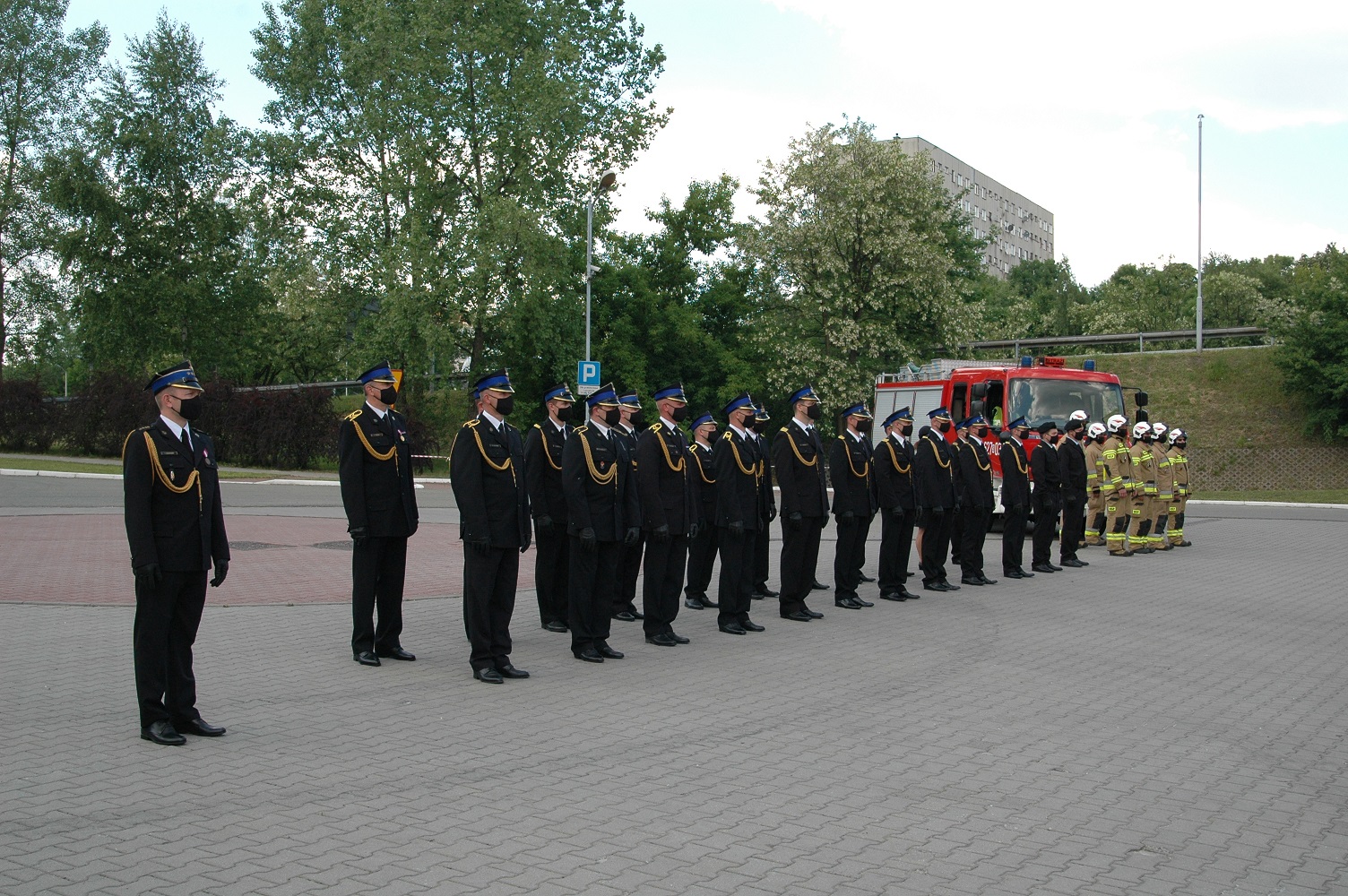 Zwieńczeniem uroczystości było przemówienie Śląskiego Komendanta Wojewódzkiego Państwowej Straży Pożarnej w Katowicach nadbrygadiera Jacka Kleszczweskiego, który również przekazał podziękowania strażakom za służbę, w szczególności za zaangażowanie w przeciwdziałaniu pandemii, a także złożył gratulacje i życzenia komendantowi miejskiemu oraz strażakom i druhom.