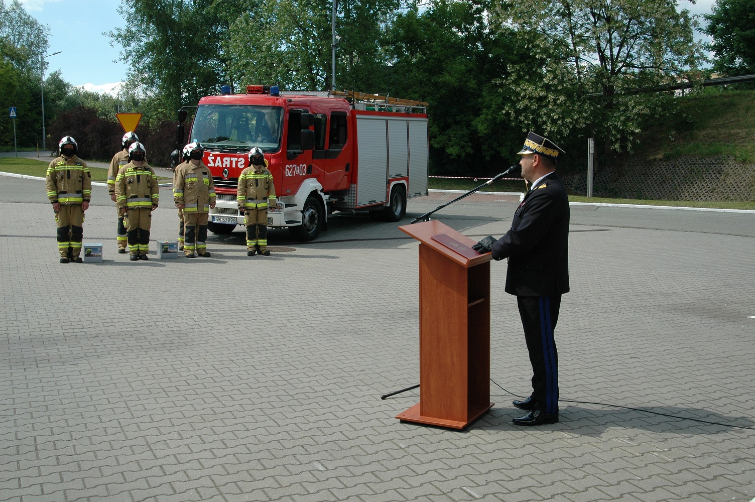 Uroczystości rozpoczęły się złożeniem meldunku przez dowódcę uroczystości bryg. Adama Nasieka Śląskiemu Komendantowi Wojewódzkiemu Państwowej Straży Pożarnej w Katowicach nadbryg. Jackowi Kleszczewskiemu.