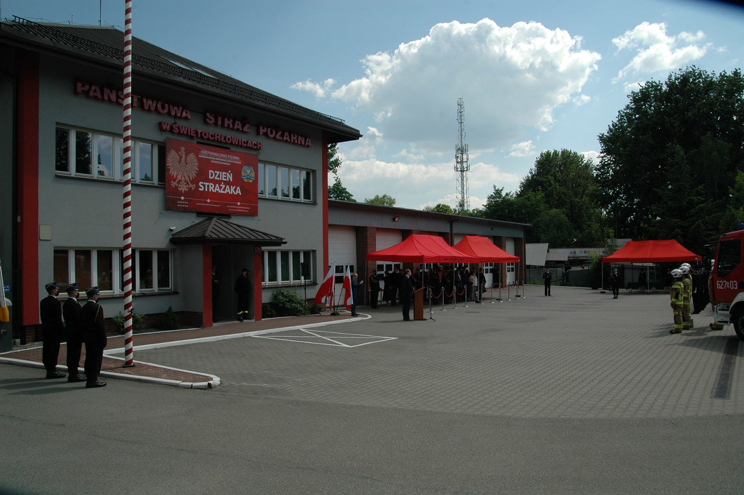 Następnie głos zabrał Prezydent Miasta Świętochłowice, który złożył gratulacje dla Śląskiego Komendanta Wojewódzkiego Państwowej Straży Pożarnej w Katowicach, Komendanta Miejskiego Państwowej Straży Pożarnej w Świętochłowicach, a także najlepsze życzenia dla świętochłowickich strażaków i druhów ochotniczej straży pożarnej.
