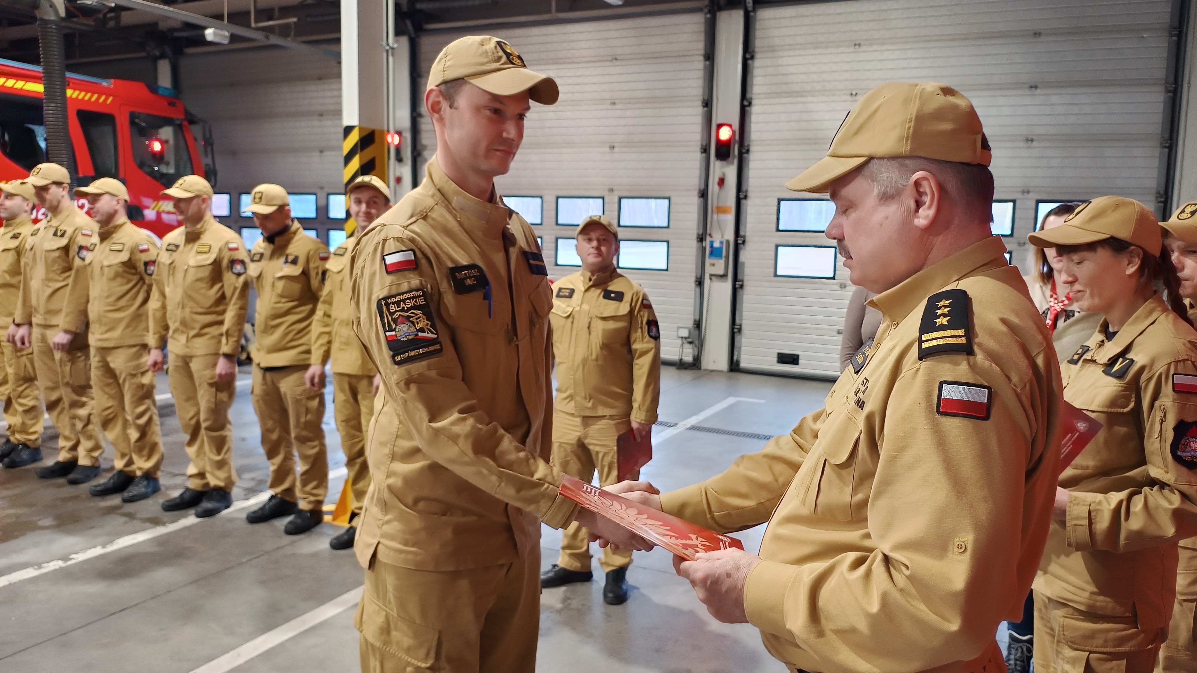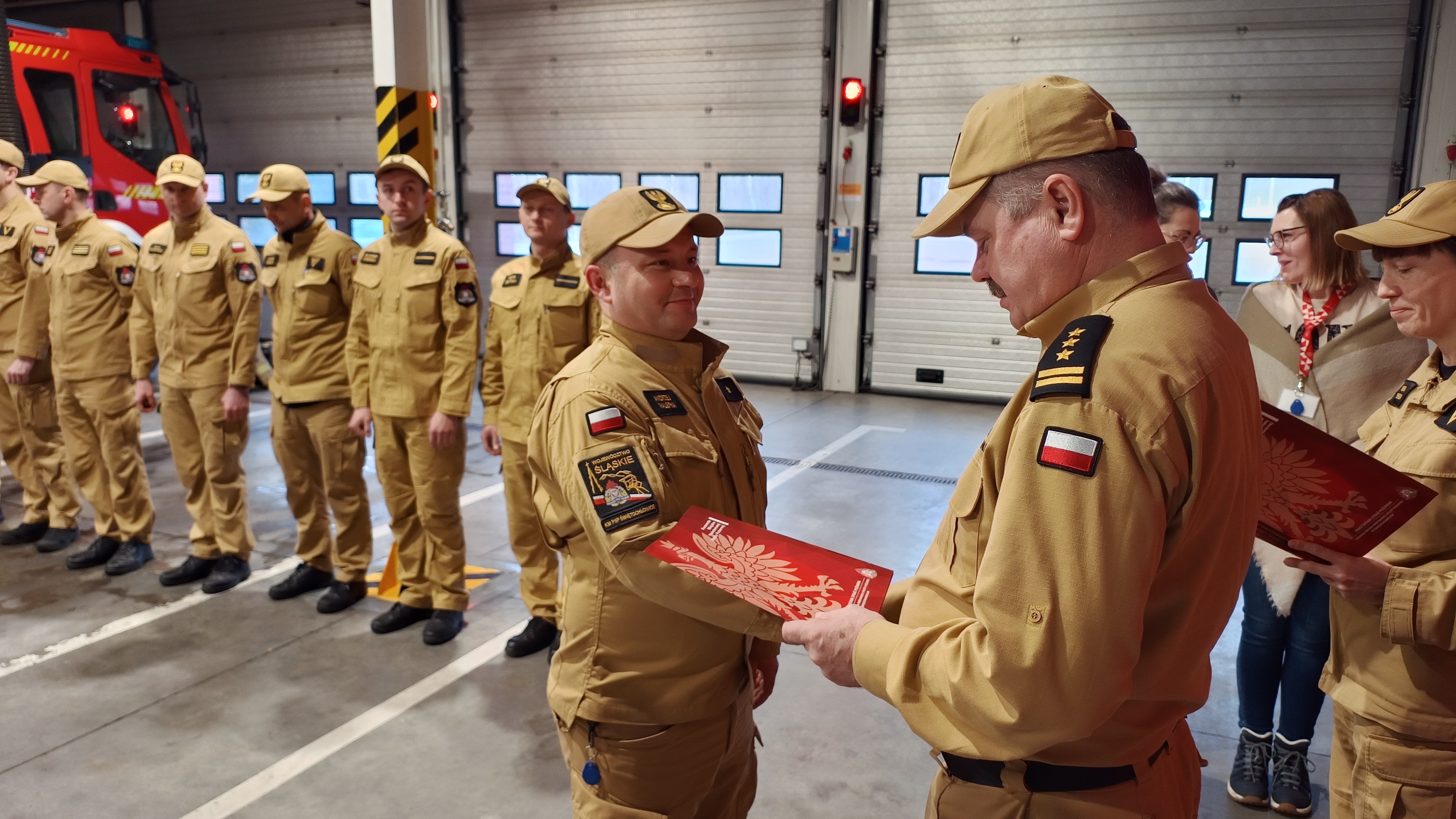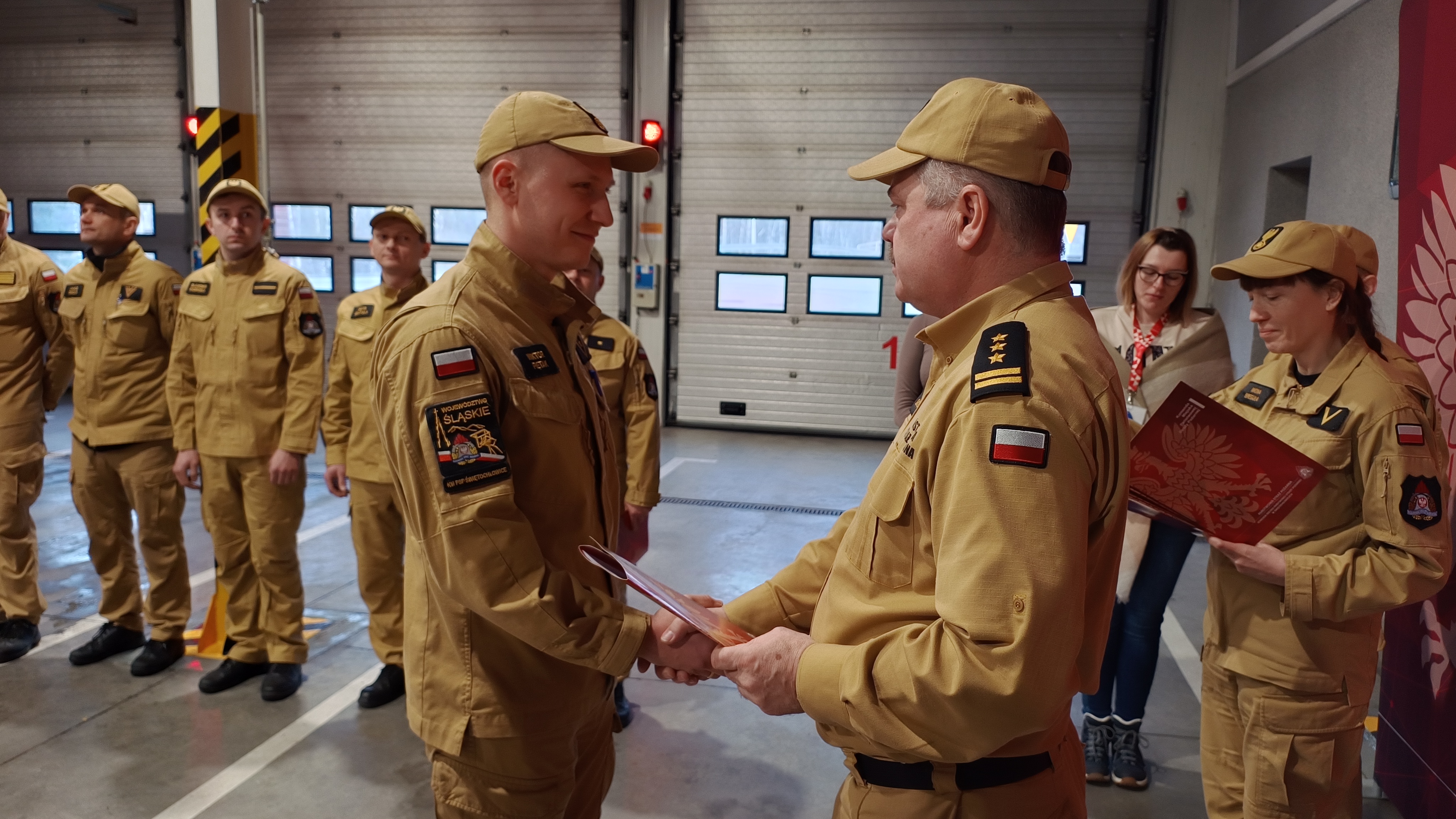 13 lutego 2026 roku w Komendzie Miejskiej Państwowej Straży Pożarnej w Świętochłowicach miała miejsce uroczysta zmiana służby, w trakcie której wręczono strażakom awanse na wyższe stanowiska oraz podziękowanie dla pracownika służby cywilnej.