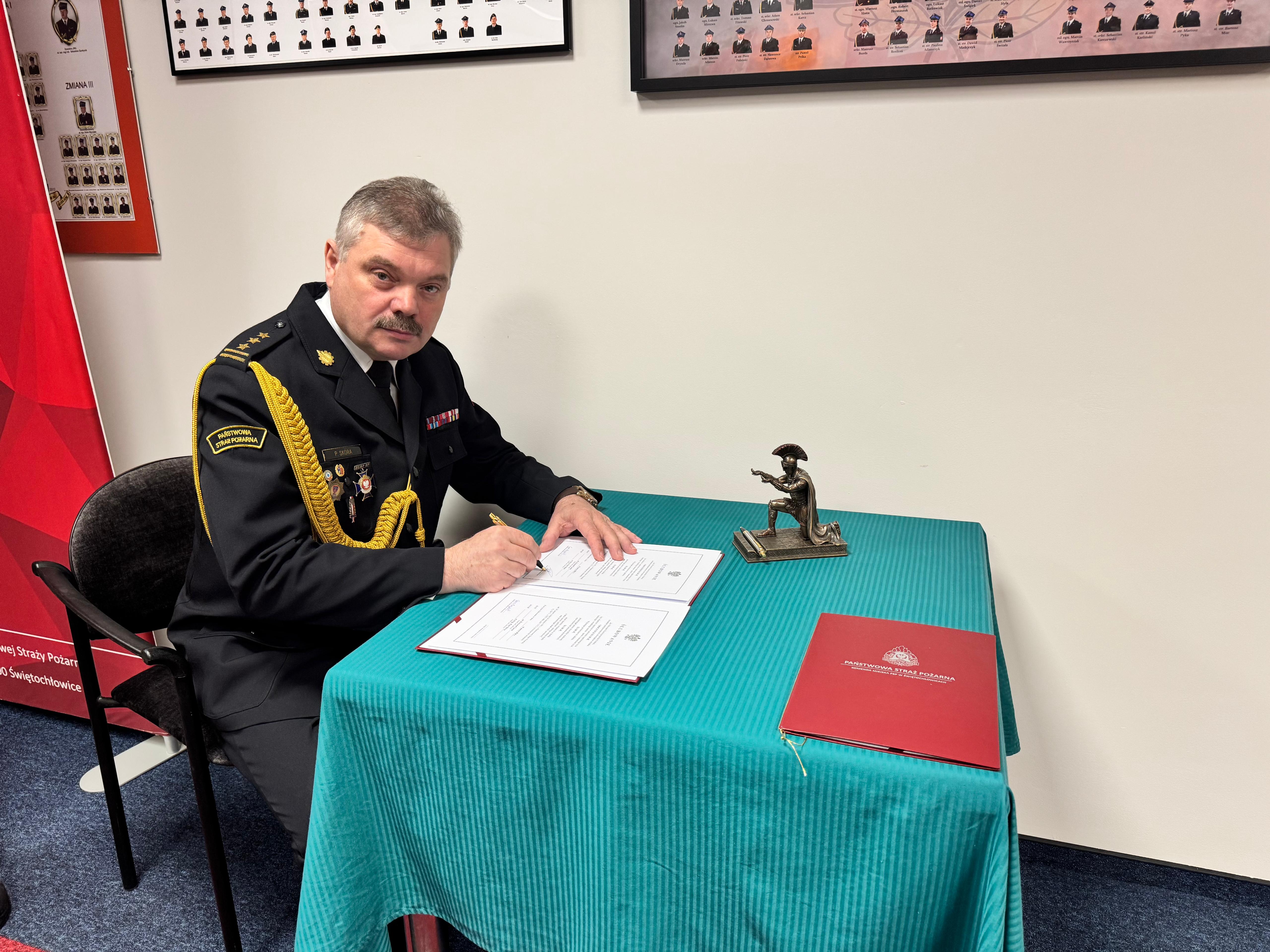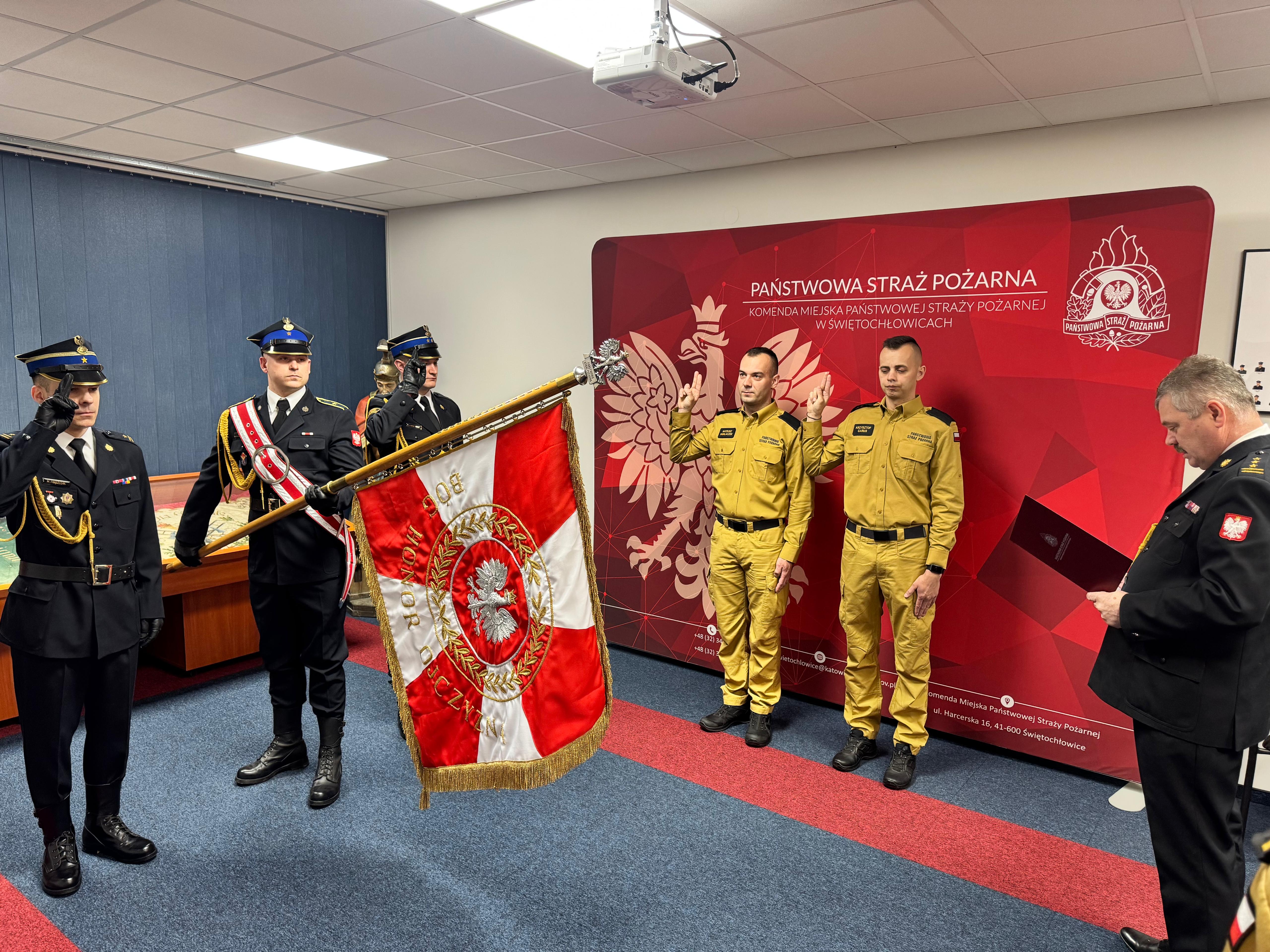 19 marca 2026 roku w Komendzie Miejskiej Państwowej Straży Pożarnej w Świętochłowicach odbyło się uroczyste ślubowanie, które złożyli nowoprzyjęci funkcjonariusze straży pożarnej. Ślubowanie przyjął Komendant Miejski PSP w Świętochłowicach - st. bryg. Piotr Skóra.