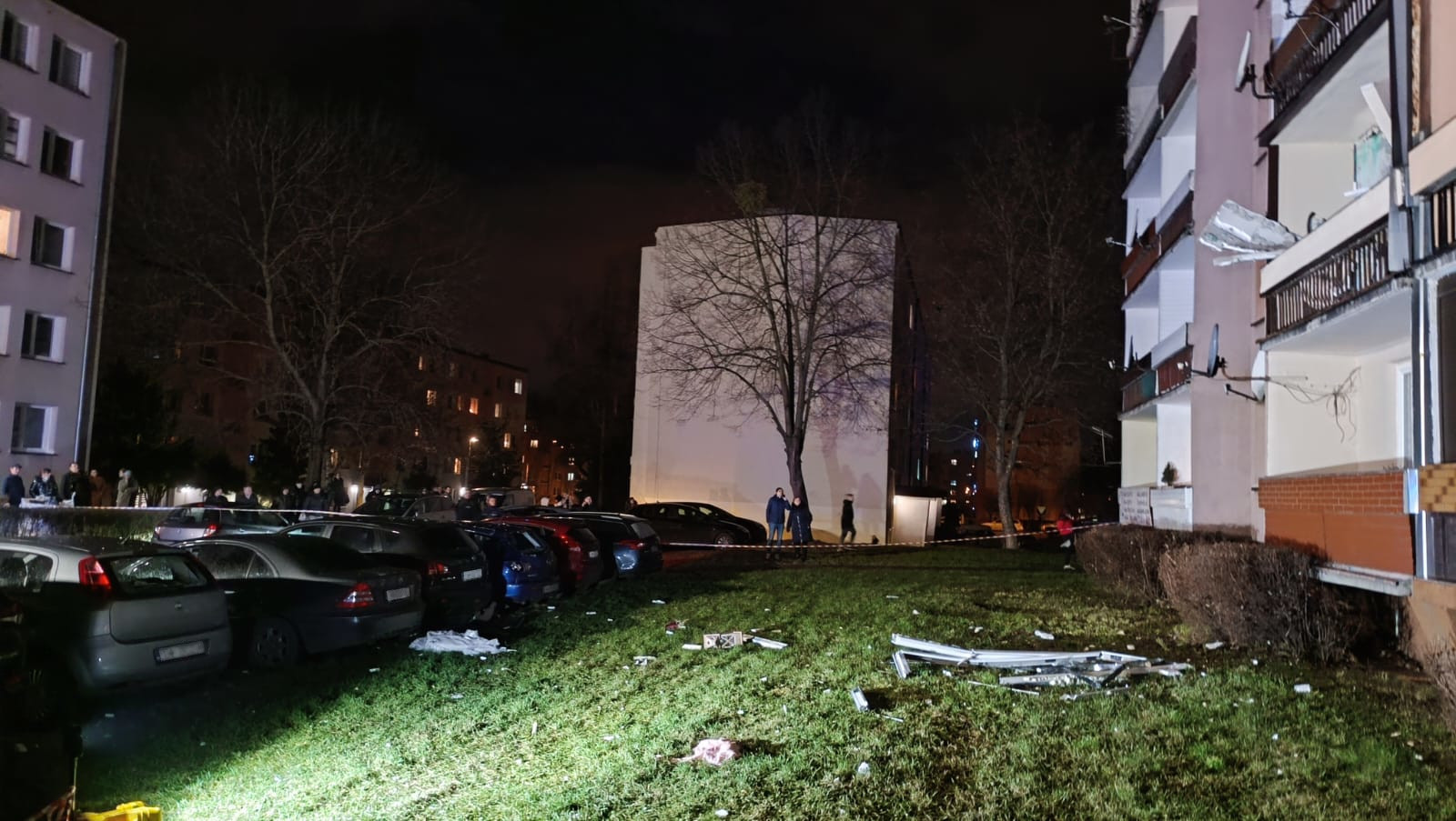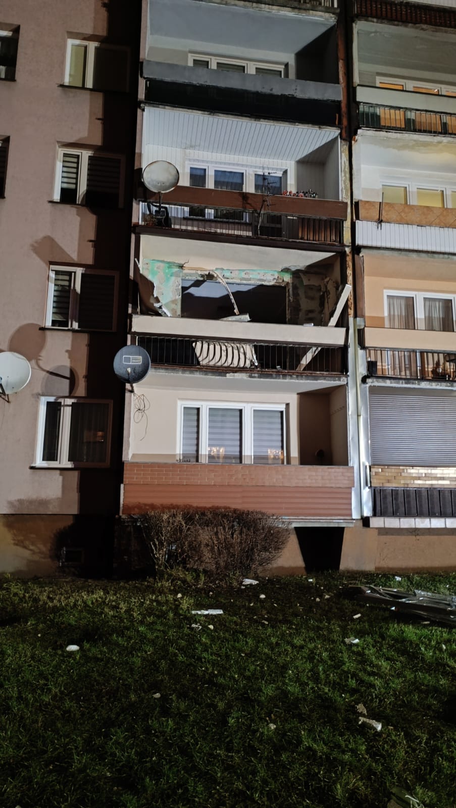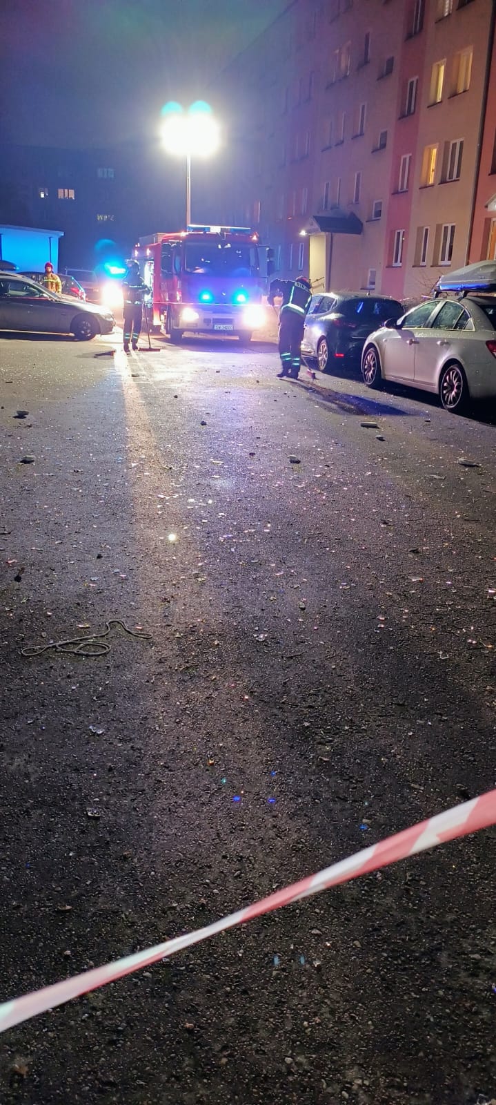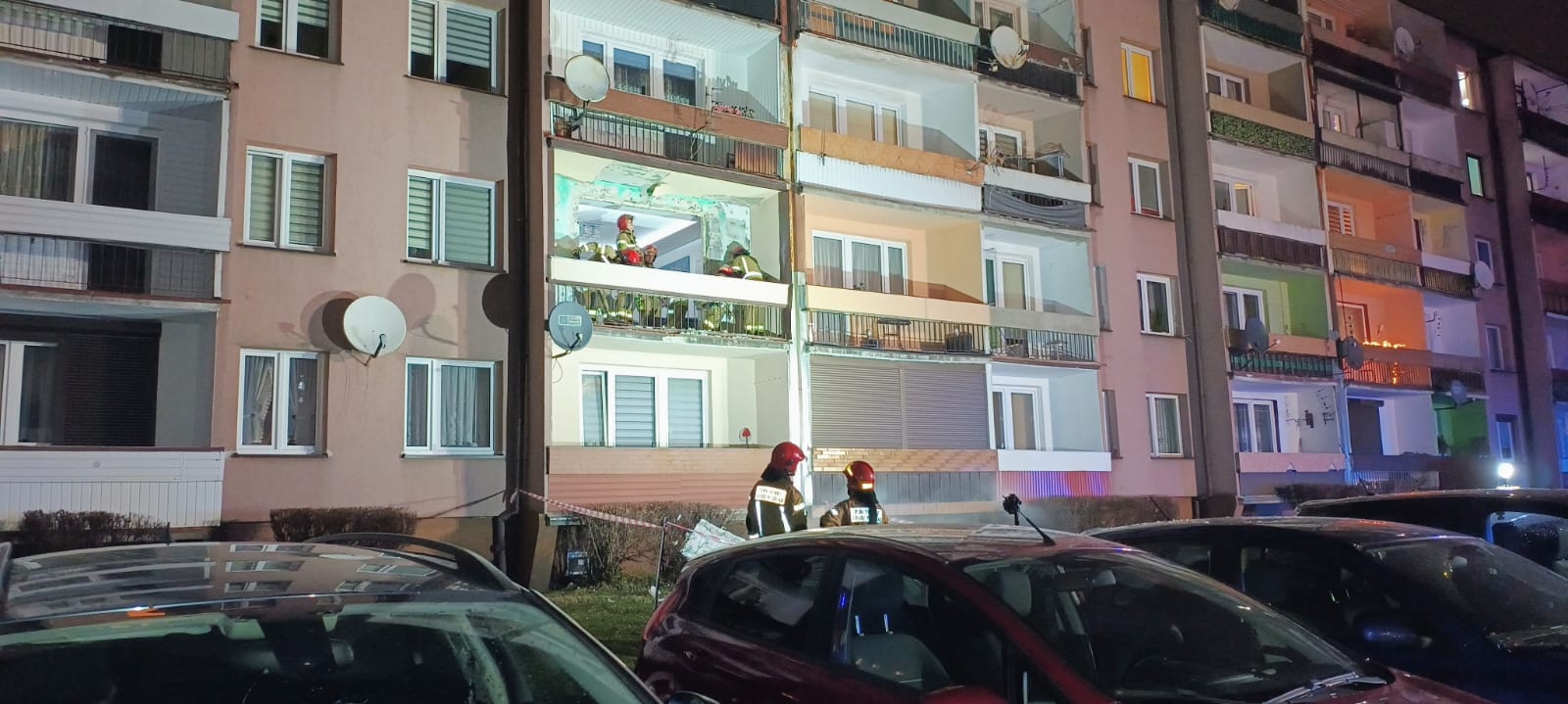 Wybuch gazu spowodował uszkodzenie okna i drzwi balkonowych. Odłamki szkła i futryn okien uszkodziły zaparkowane przy budynku samochody.