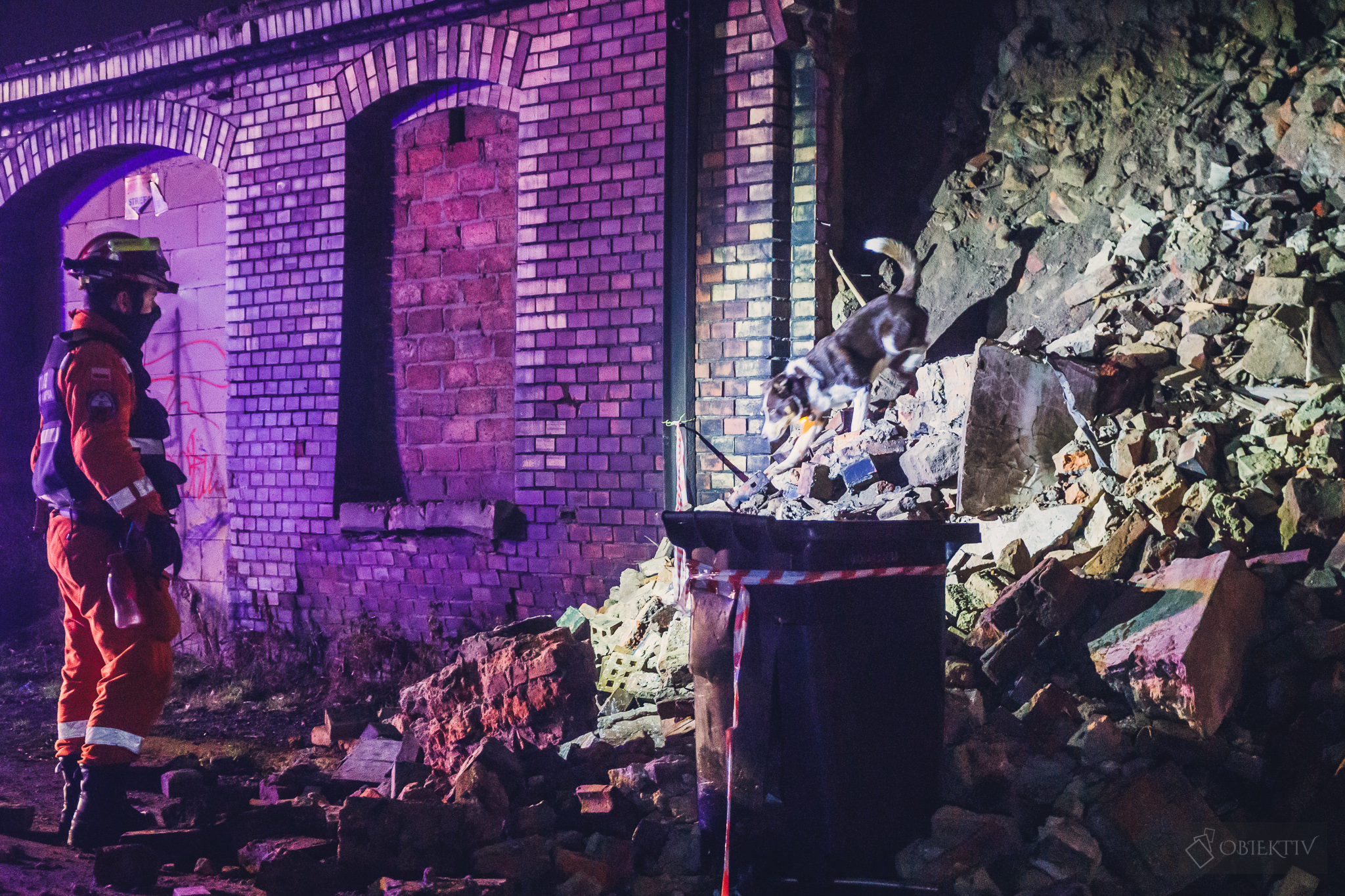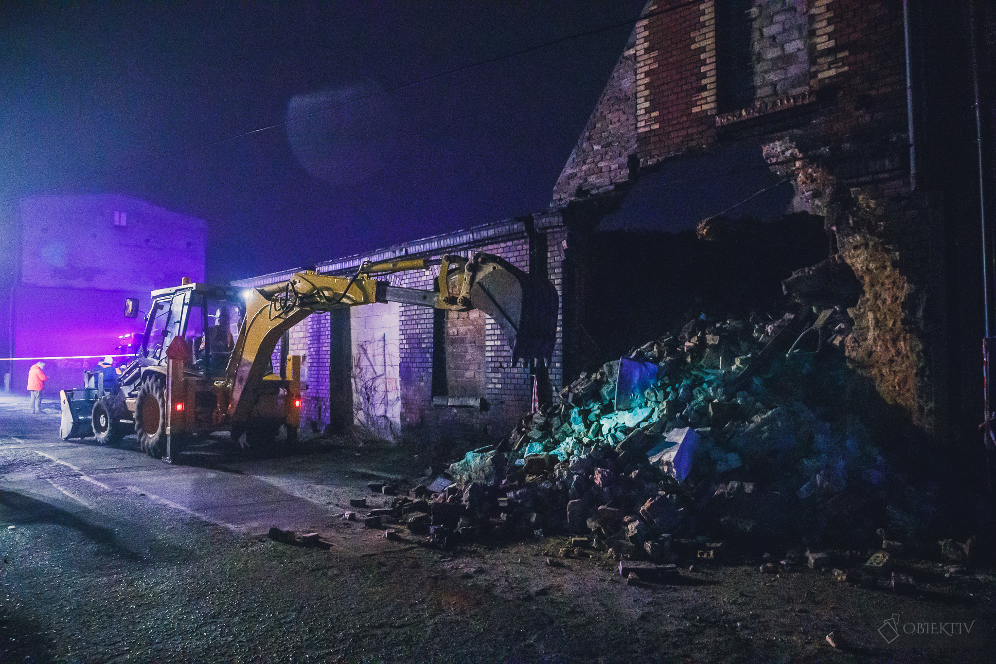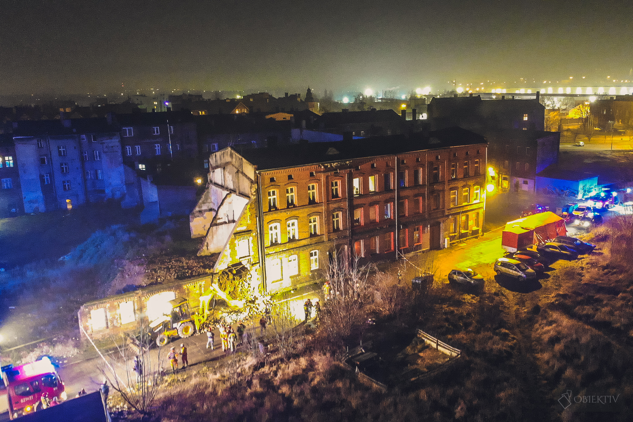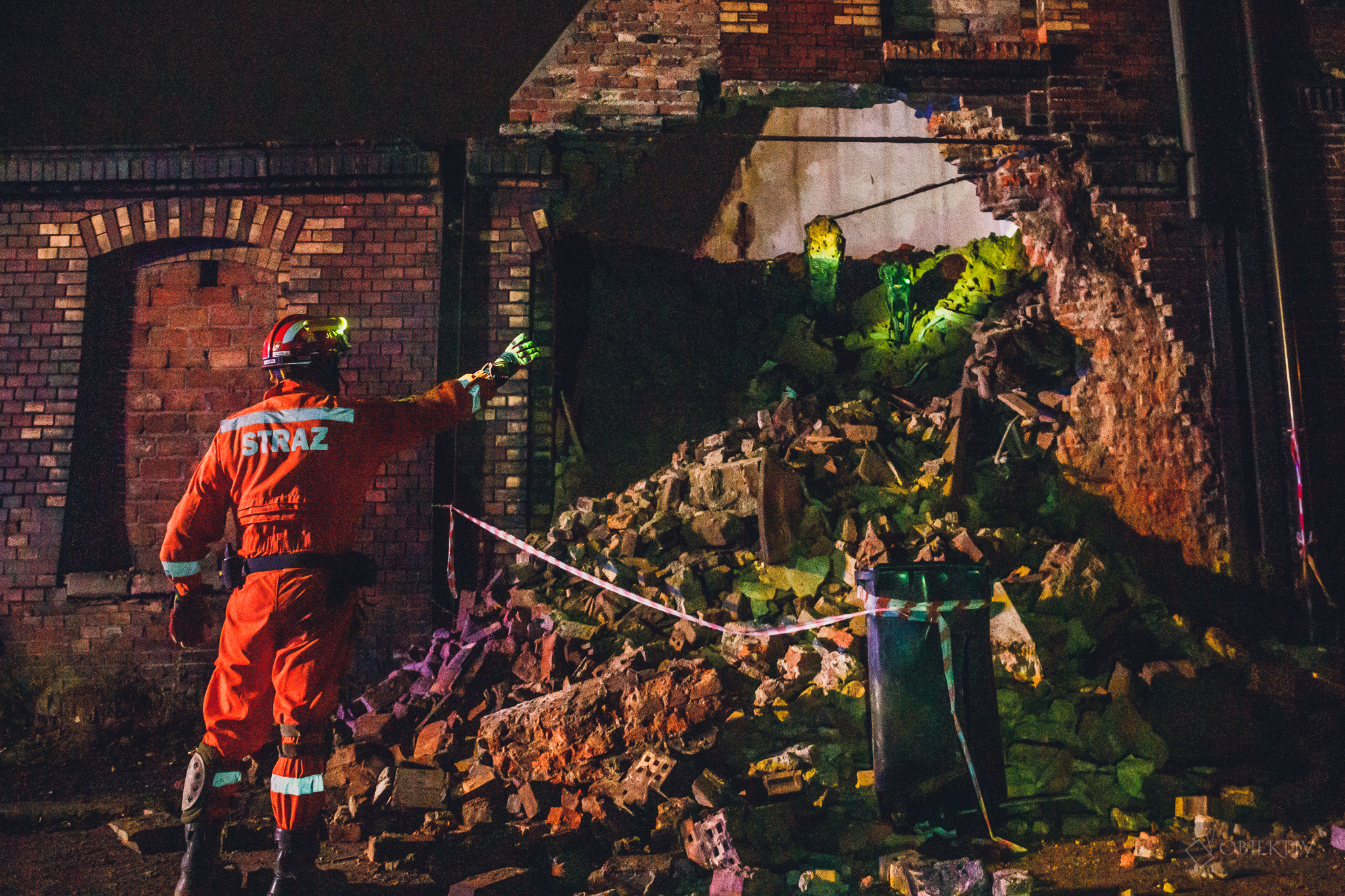 02.01.2020 roku o godzinie 21:23 Stanowisko Kierowania Komendanta Miejskiego Państwowej Straży Pożarnej w Świętochłowicach otrzymało zgłoszenie, że zawaliła się jedna ze ścian budynku przeznaczonego do rozbiórki.