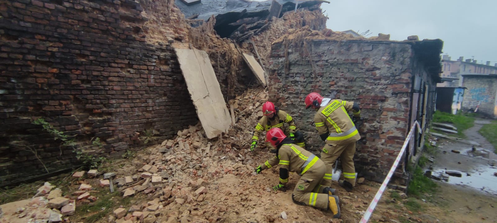 Zawalenie się ściany nieużytkowanego budynku gospodarczego przy ul. Chorzowskiej