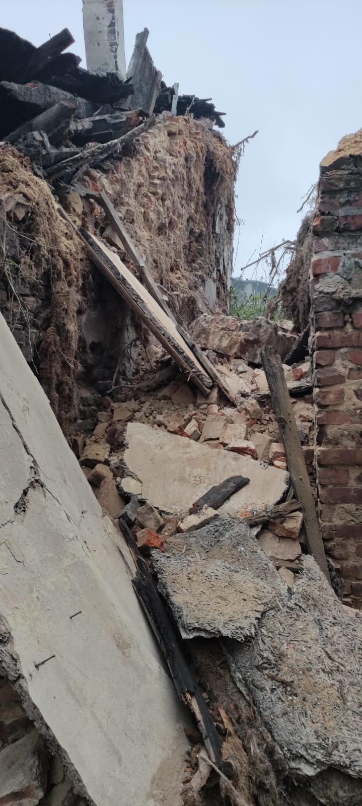 W wyniku zawalenia się ściany, pomiędzy tym budynkiem, a znajdującymi się w sąsiedztwie komórkami gospodarczymi powstało gruzowisko o powierzchni 10 metrów kwadratowych i wysokości do 2 m.