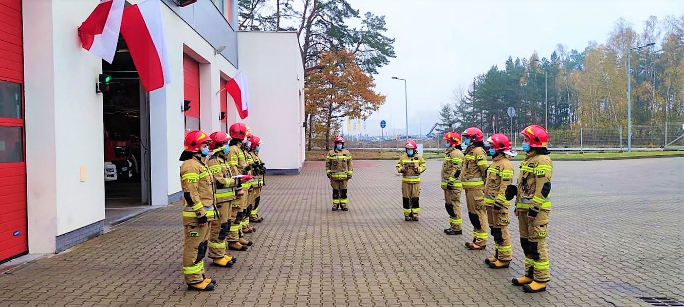 Podniesieniem flagi państwowej oraz odśpiewaniem hymnu państwowego strażacy z Komendy Miejskiej Państwowej Straży Pożarnej w Świnoujściu uczcili to ważne wydarzenie. Odczytany został także okolicznościowy list kierownictwa Komendy Głównej PSP wystosowany z okazji obchodów Narodowego Święta Niepodległości skierowany do funkcjonariuszy i pracowników Państwowej Straży Pożarnej, członków i działaczy Ochotniczych Straży Pożarnych oraz Weteranów, Seniorów Służby Pożarniczej i słuchaczy Szkół Pożarniczych.